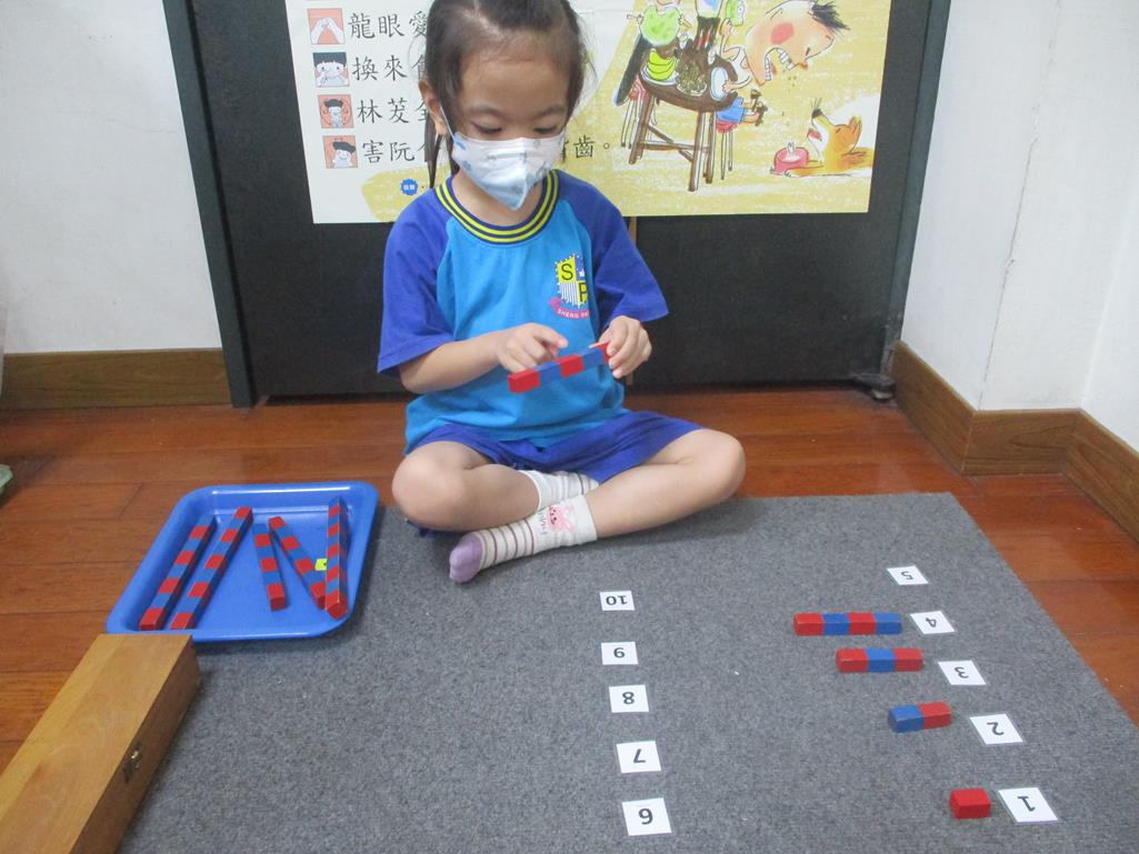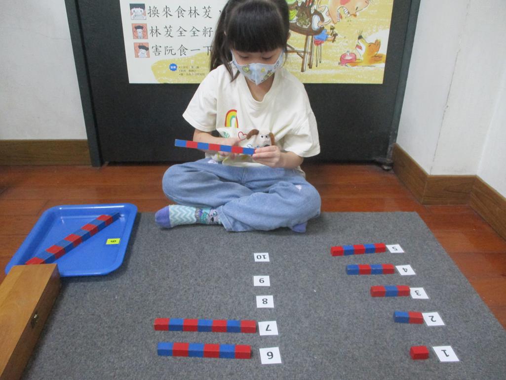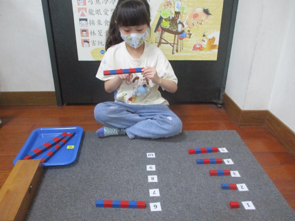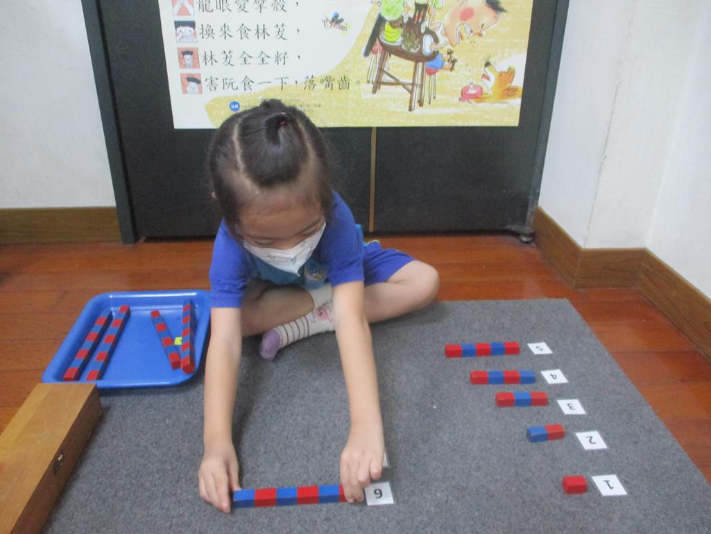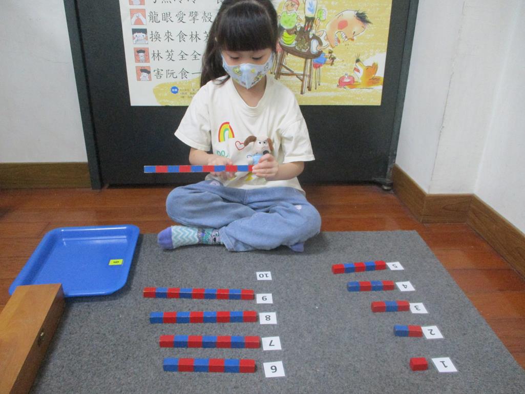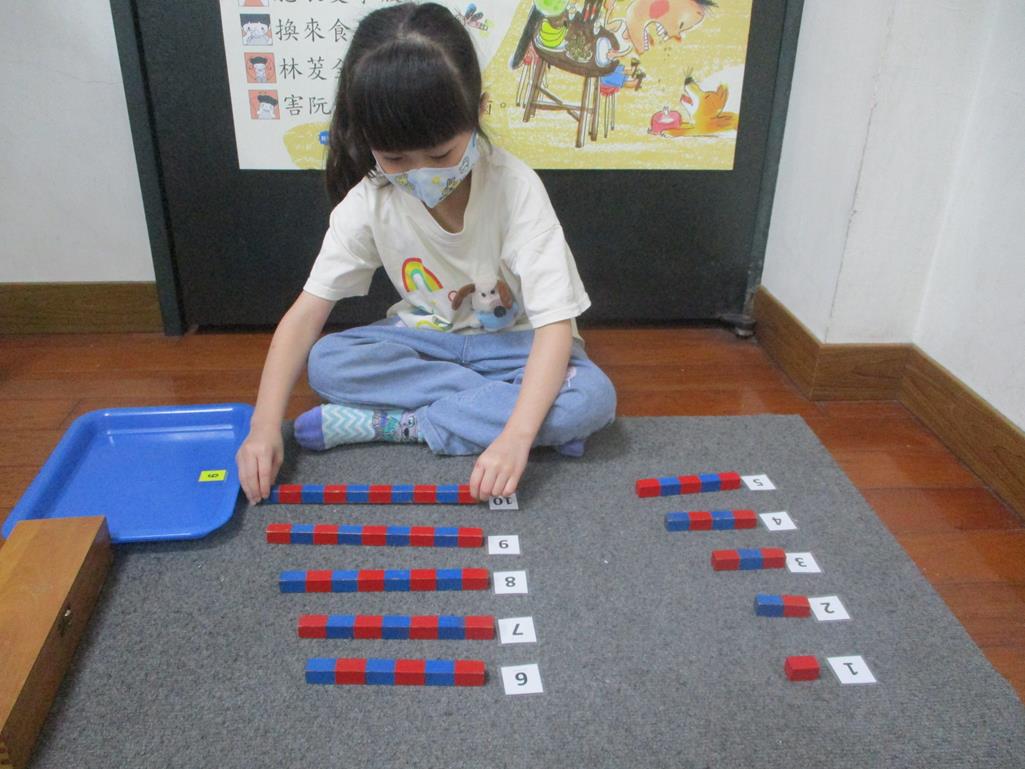 相簿名稱: 茉莉班-蒙特梭利教學(數學教育-數棒+1~10字卡&數棒(紙上作業))
