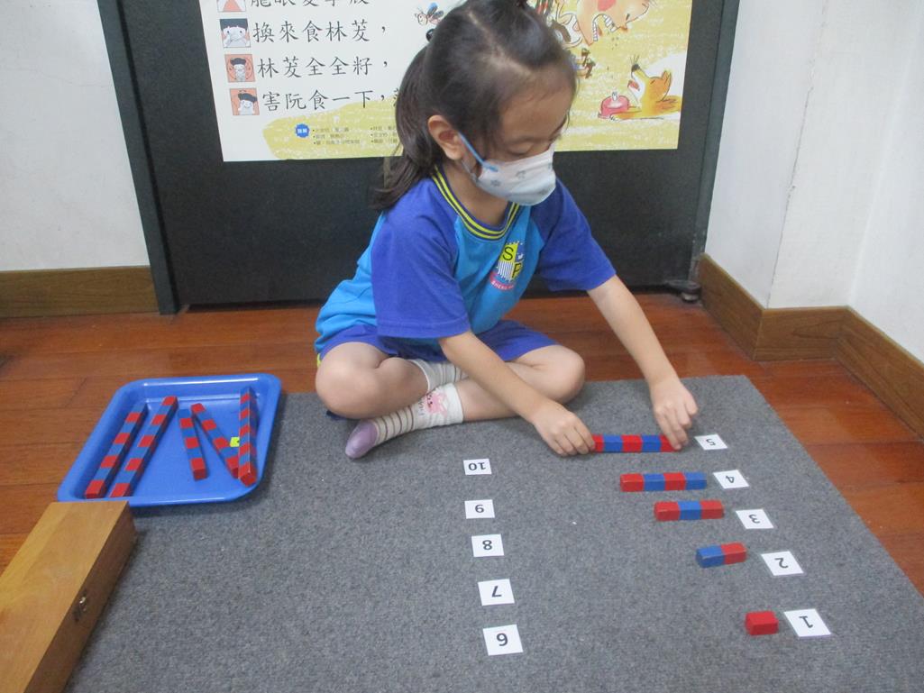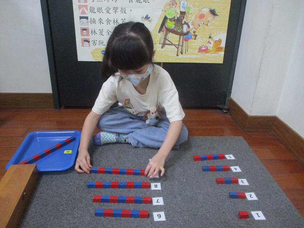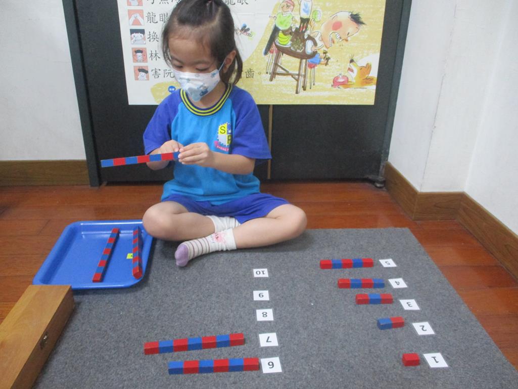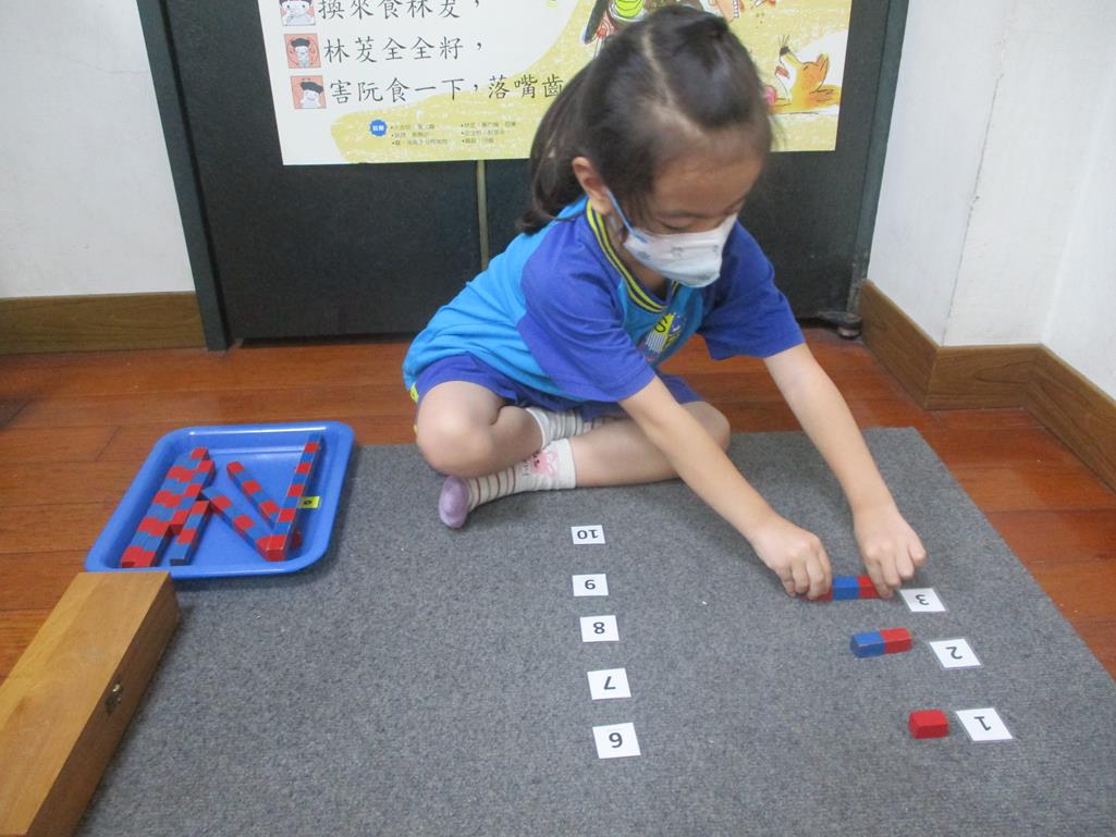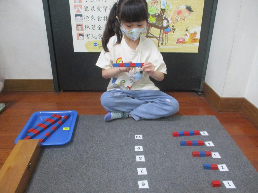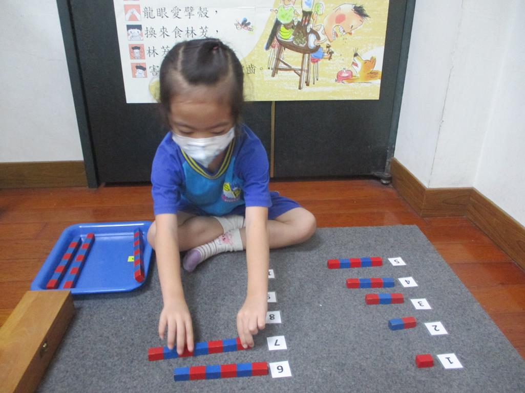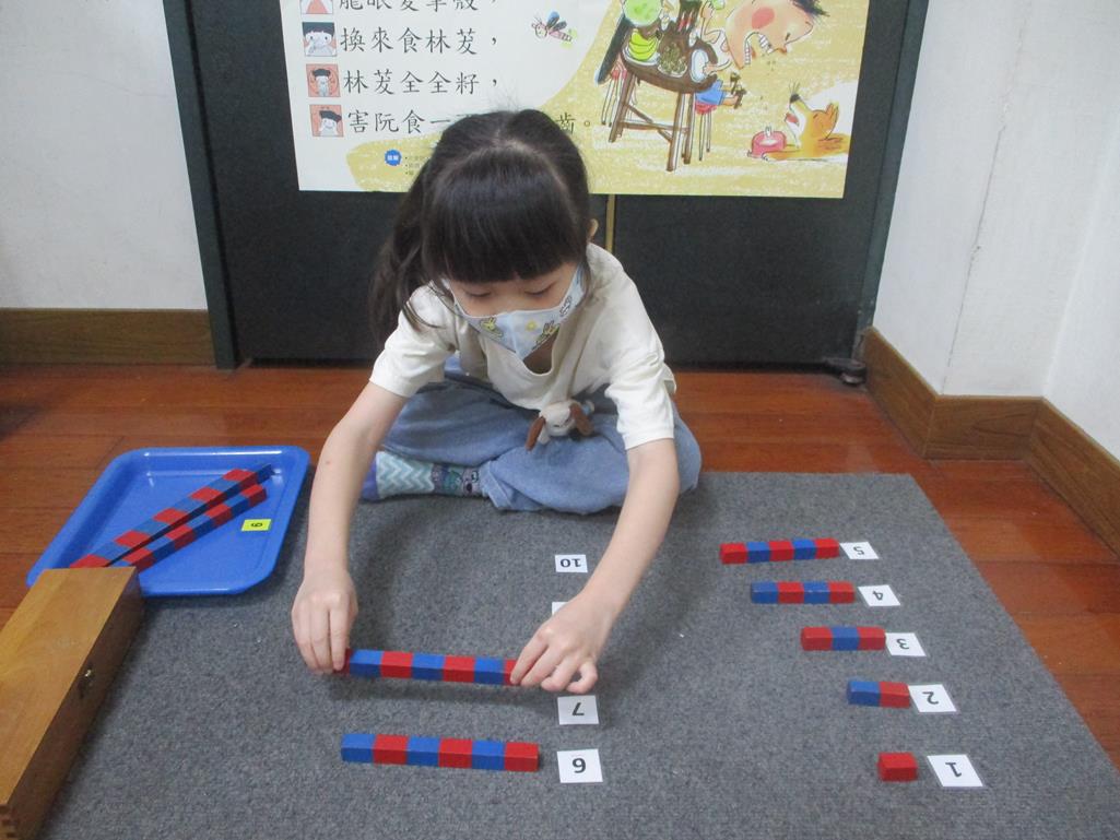 相簿名稱: 茉莉班-蒙特梭利教學(數學教育-數棒+1~10字卡&數棒(紙上作業))