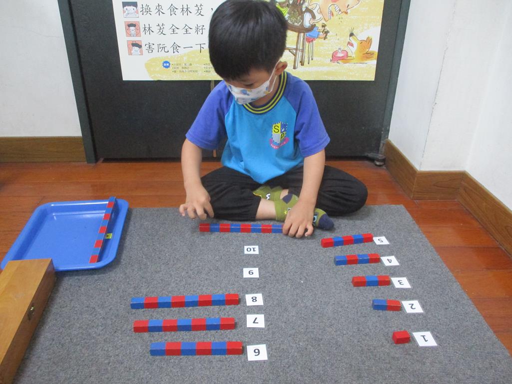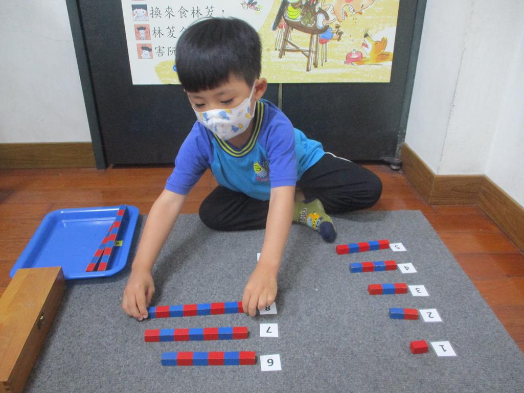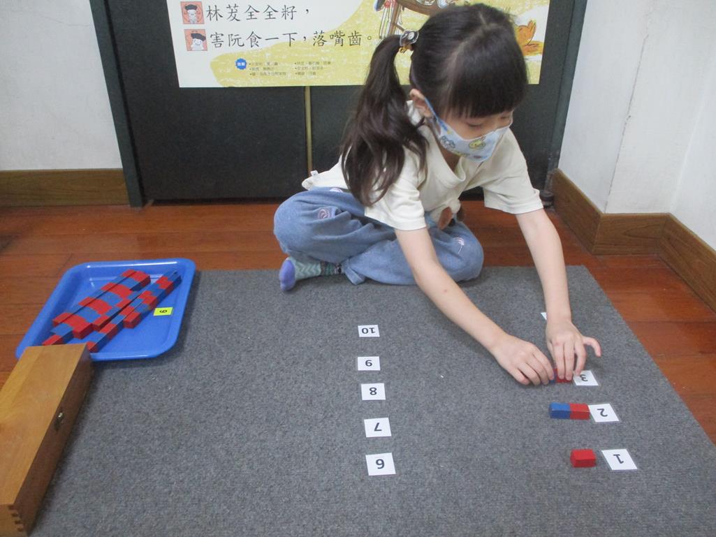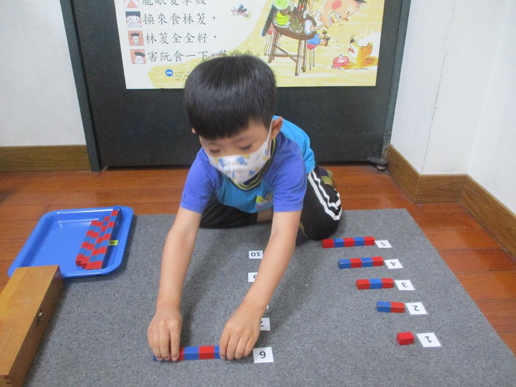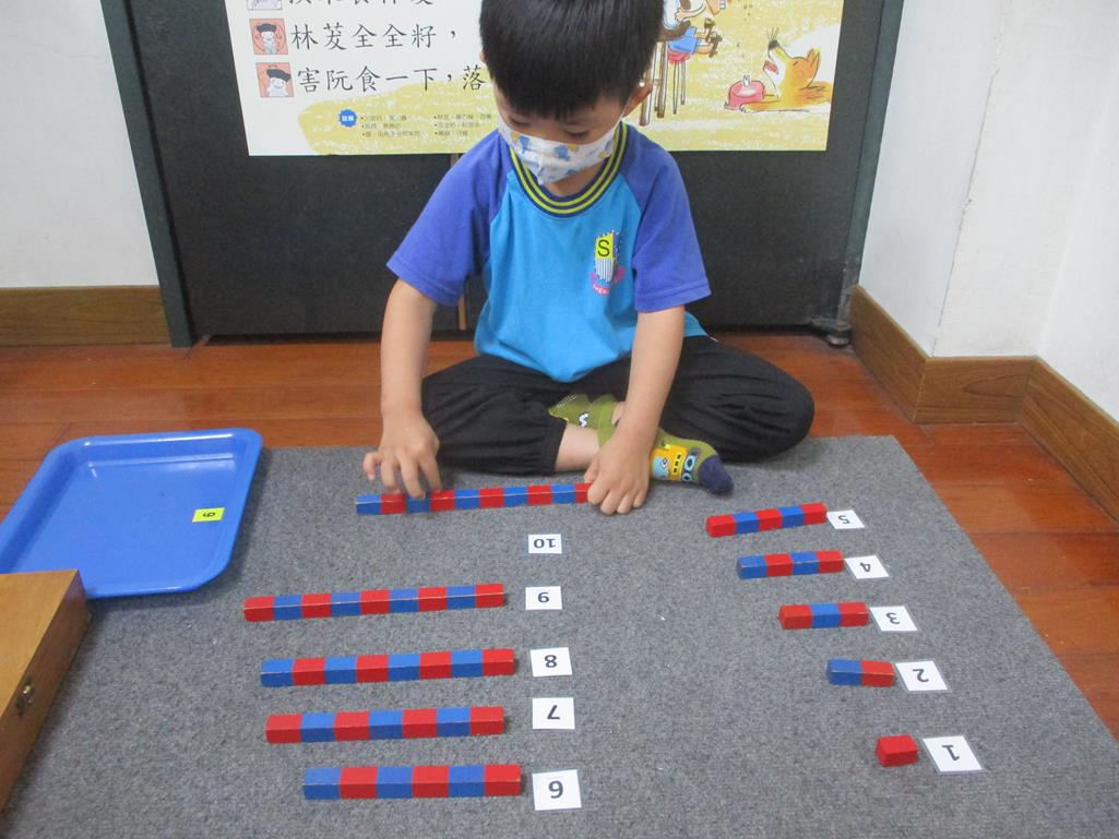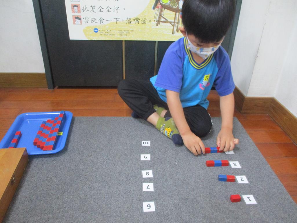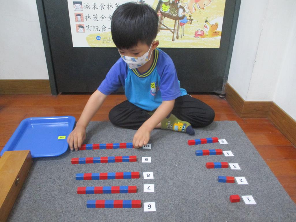 相簿名稱: 茉莉班-蒙特梭利教學(數學教育-數棒+1~10字卡&數棒(紙上作業))