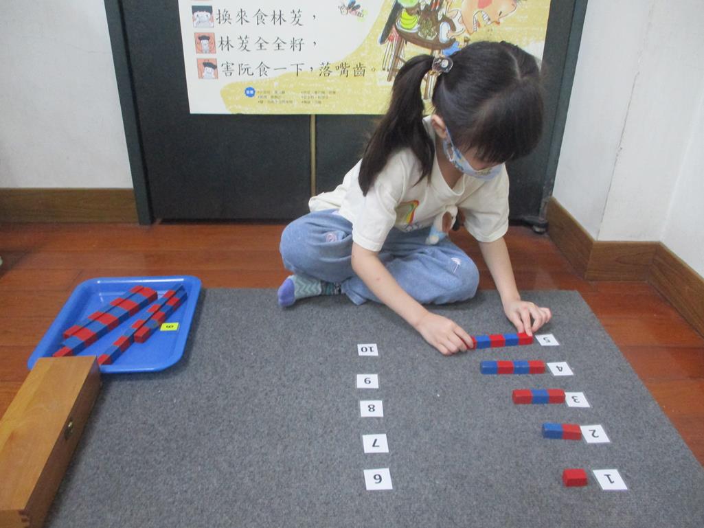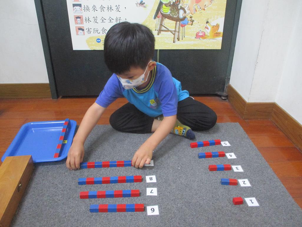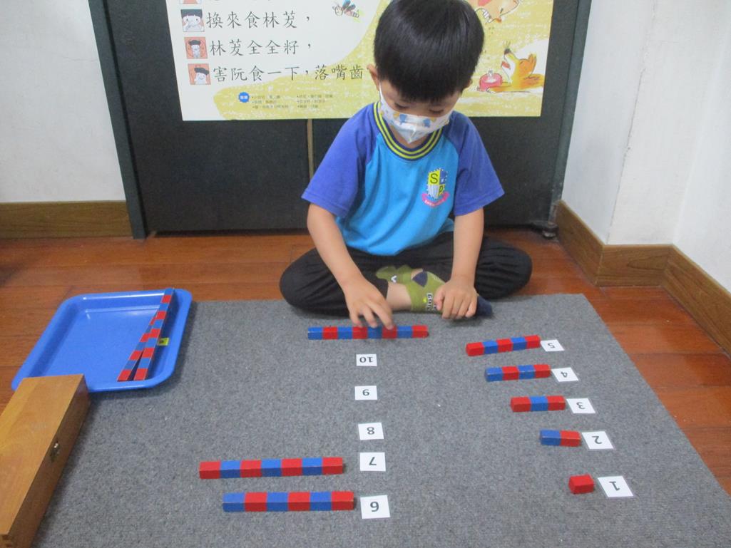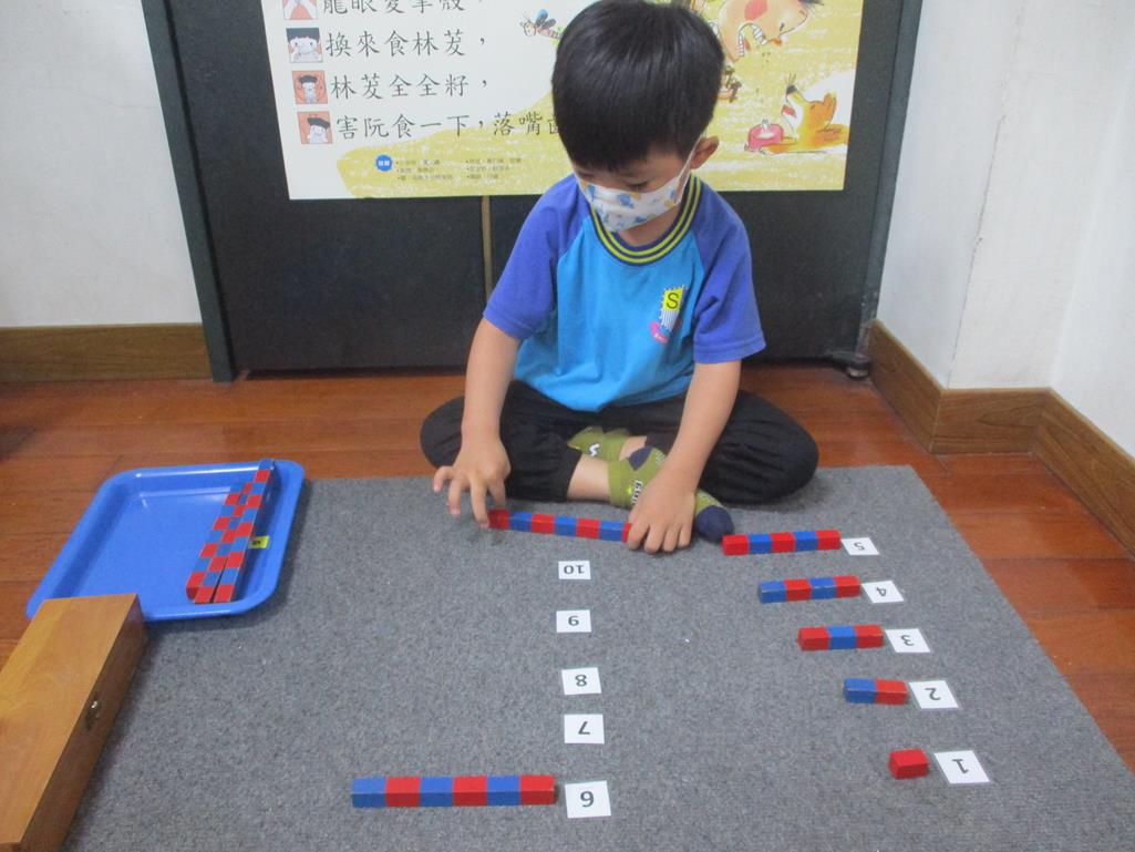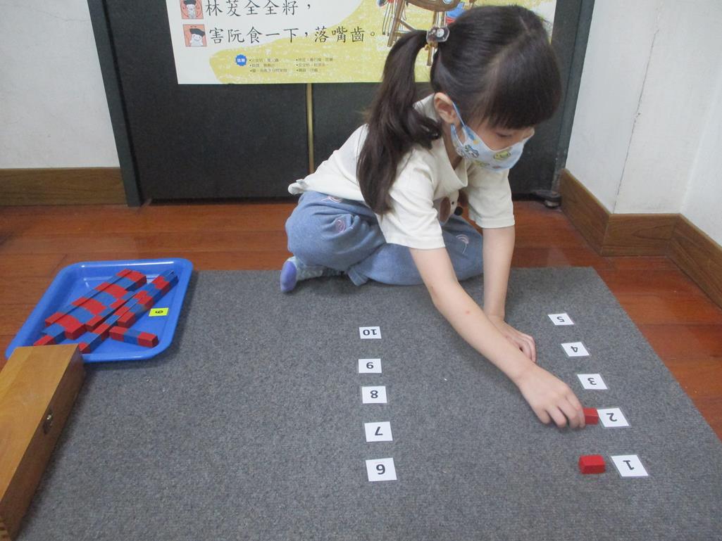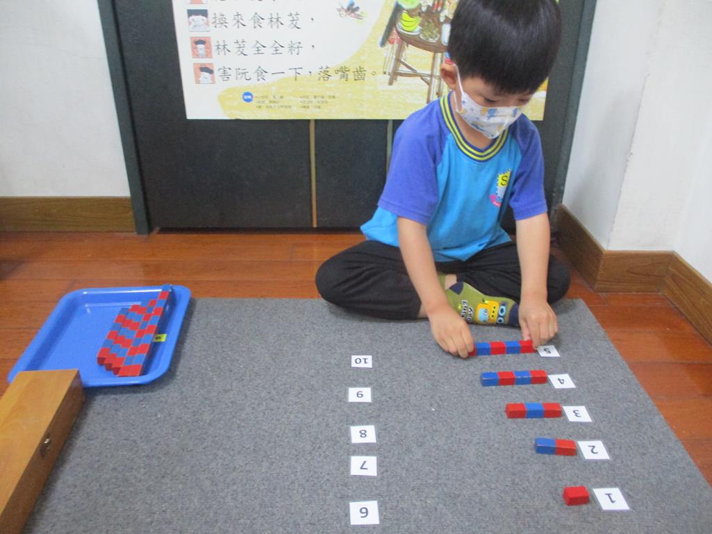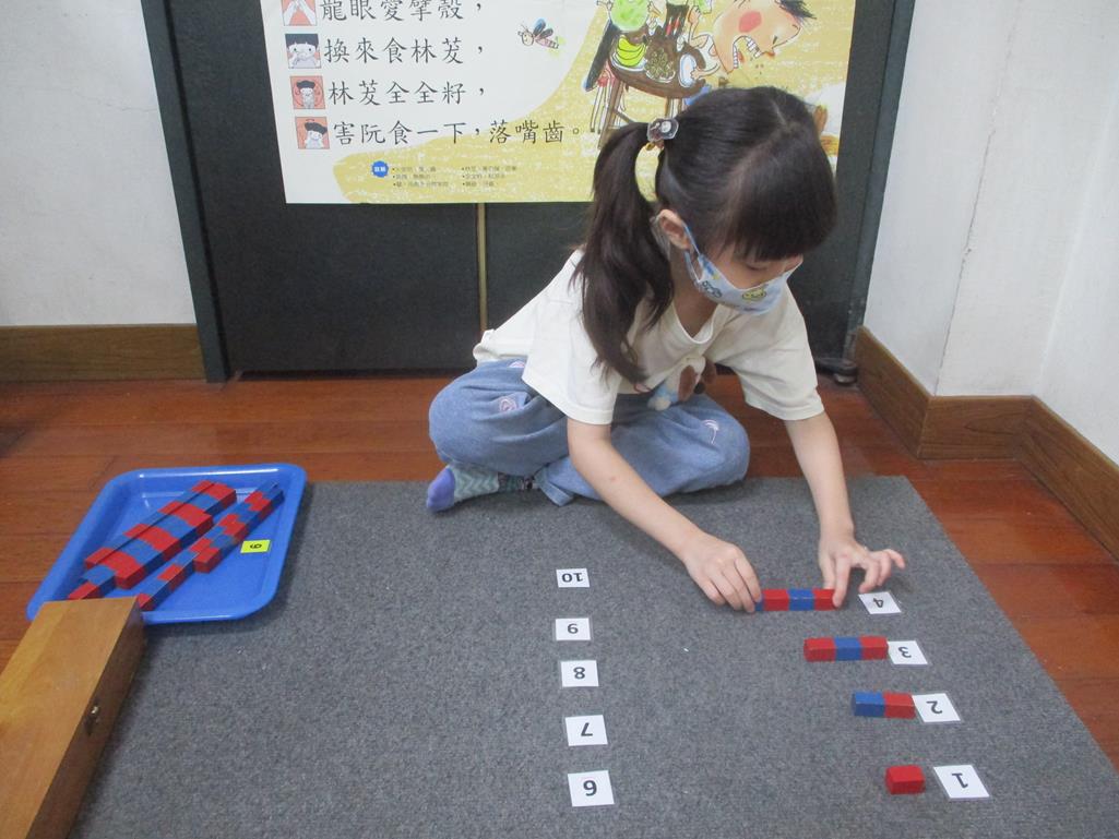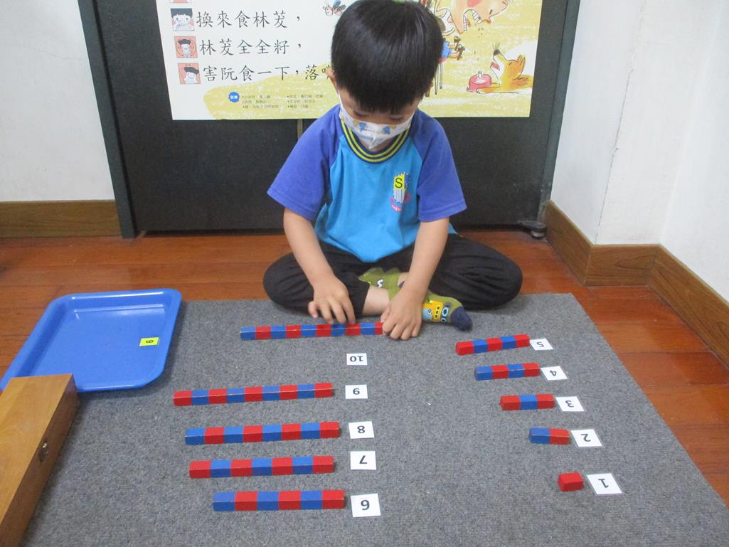 相簿名稱: 茉莉班-蒙特梭利教學(數學教育-數棒+1~10字卡&數棒(紙上作業))