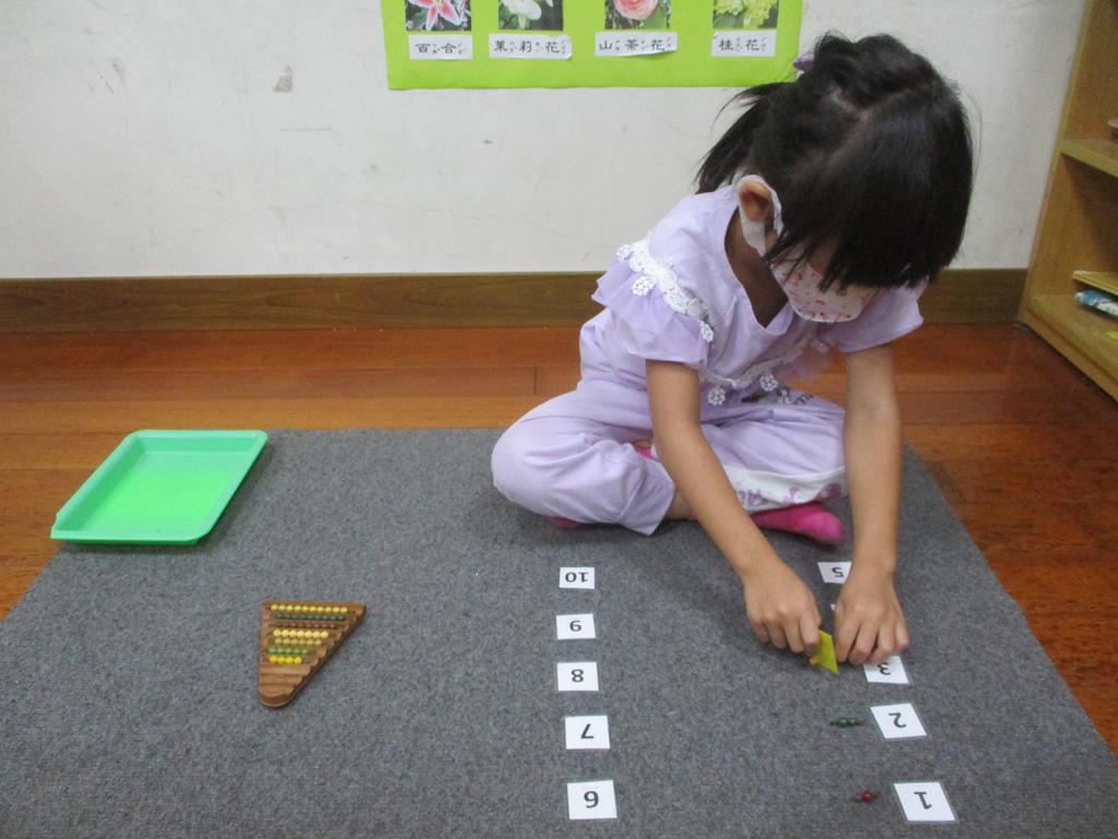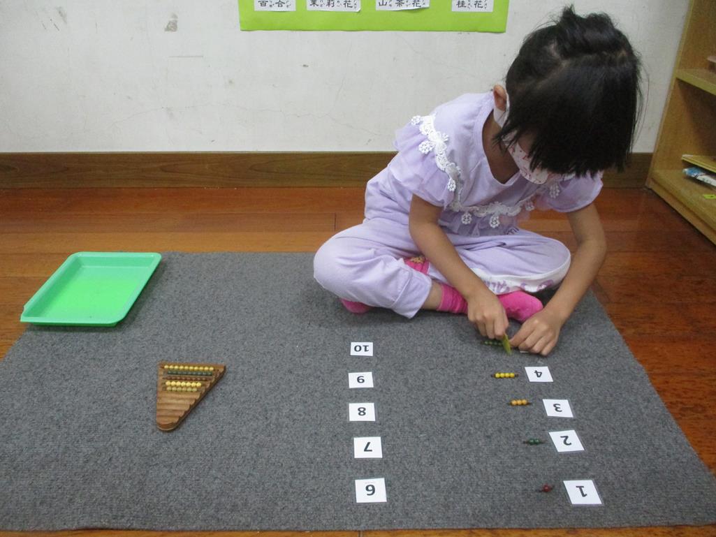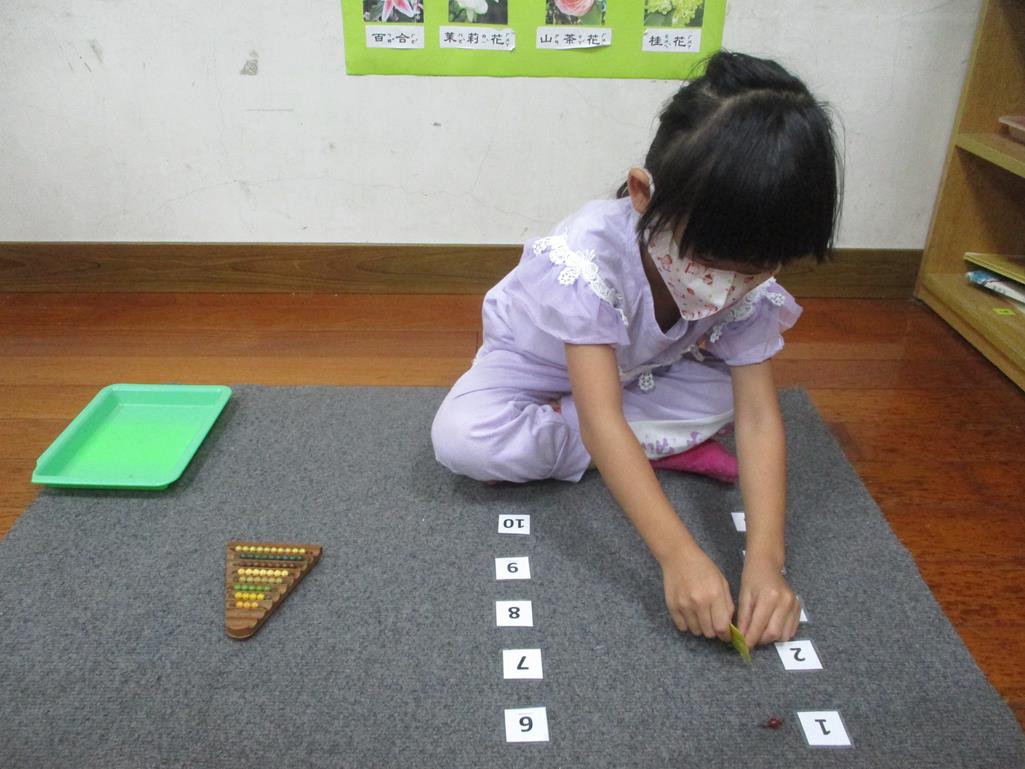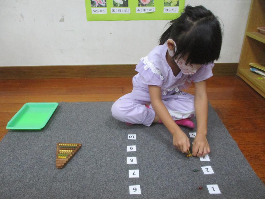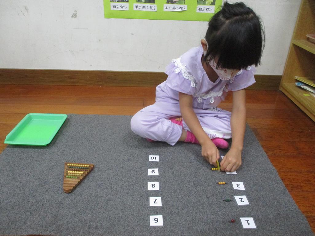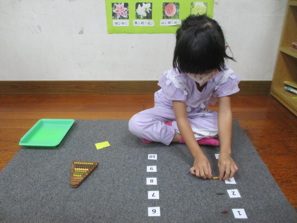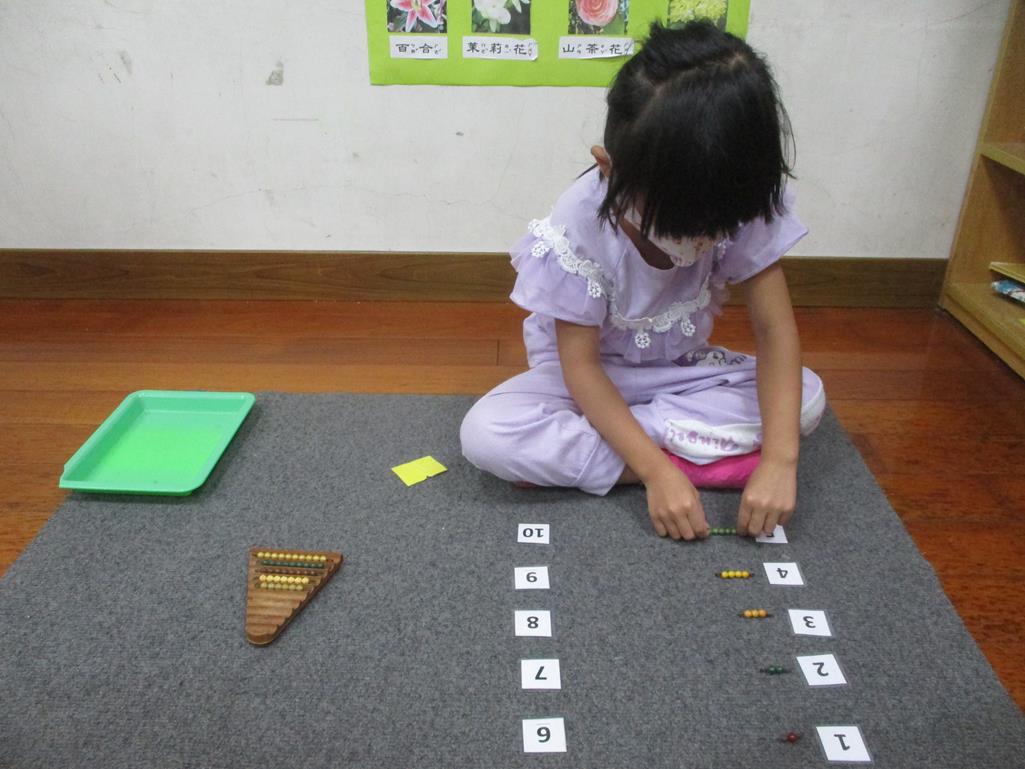相簿名稱: 茉莉班-蒙特梭利教學(數學教育-彩色串珠1~10)