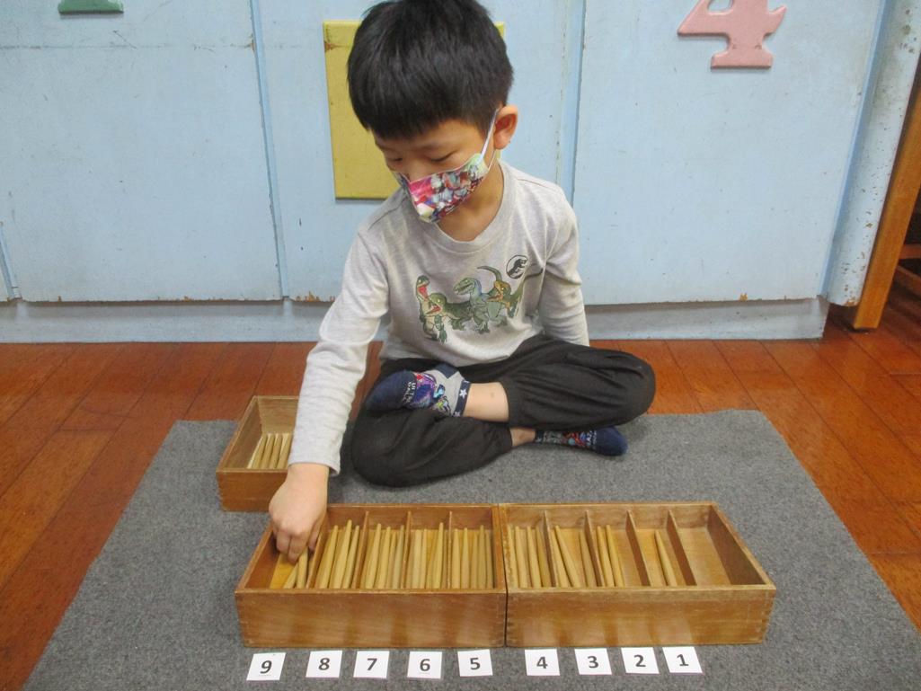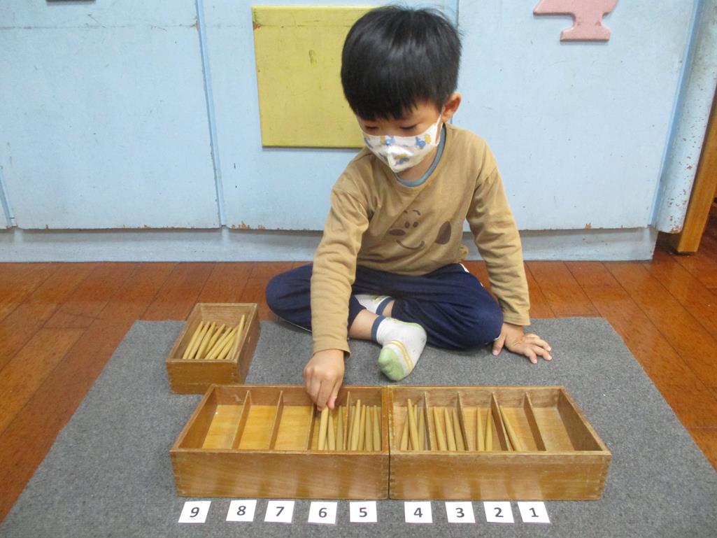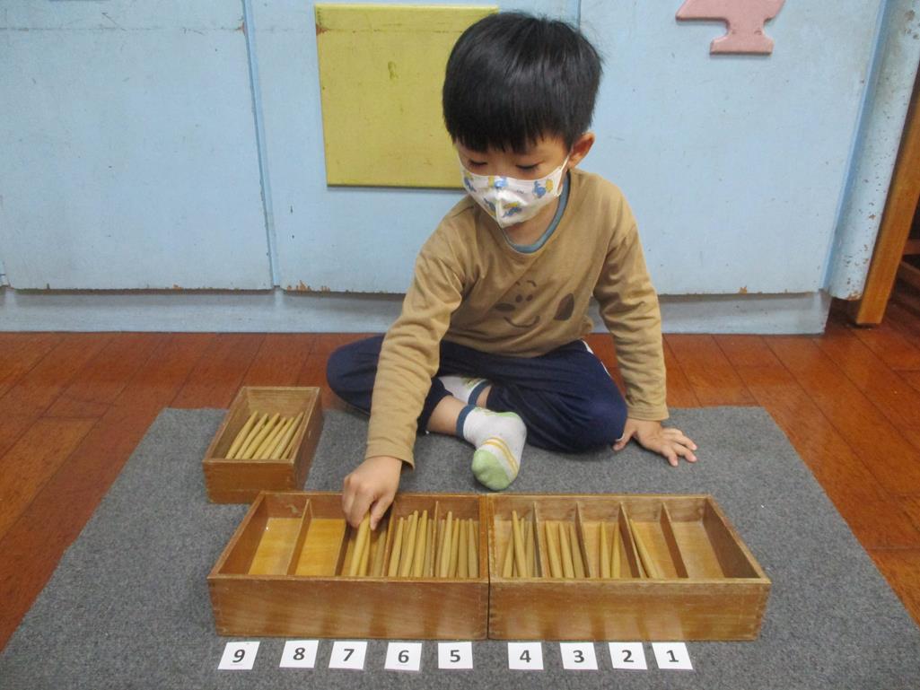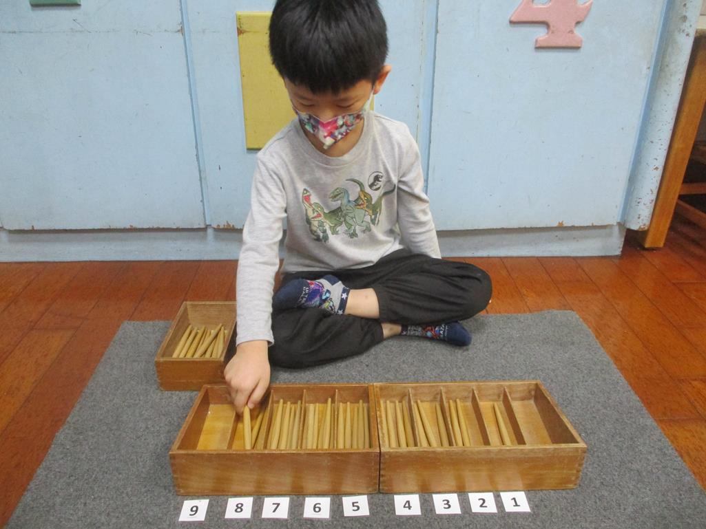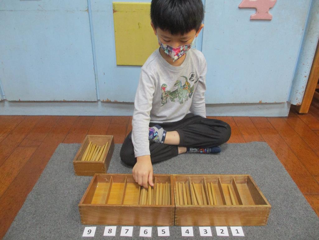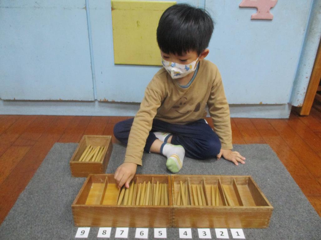 相簿名稱: 茉莉班-蒙特梭利教學(數學教育-紡錘棒箱 0~9)