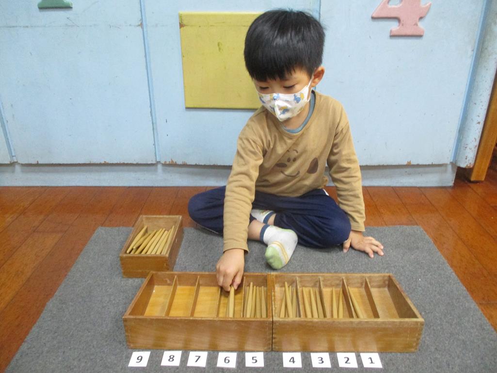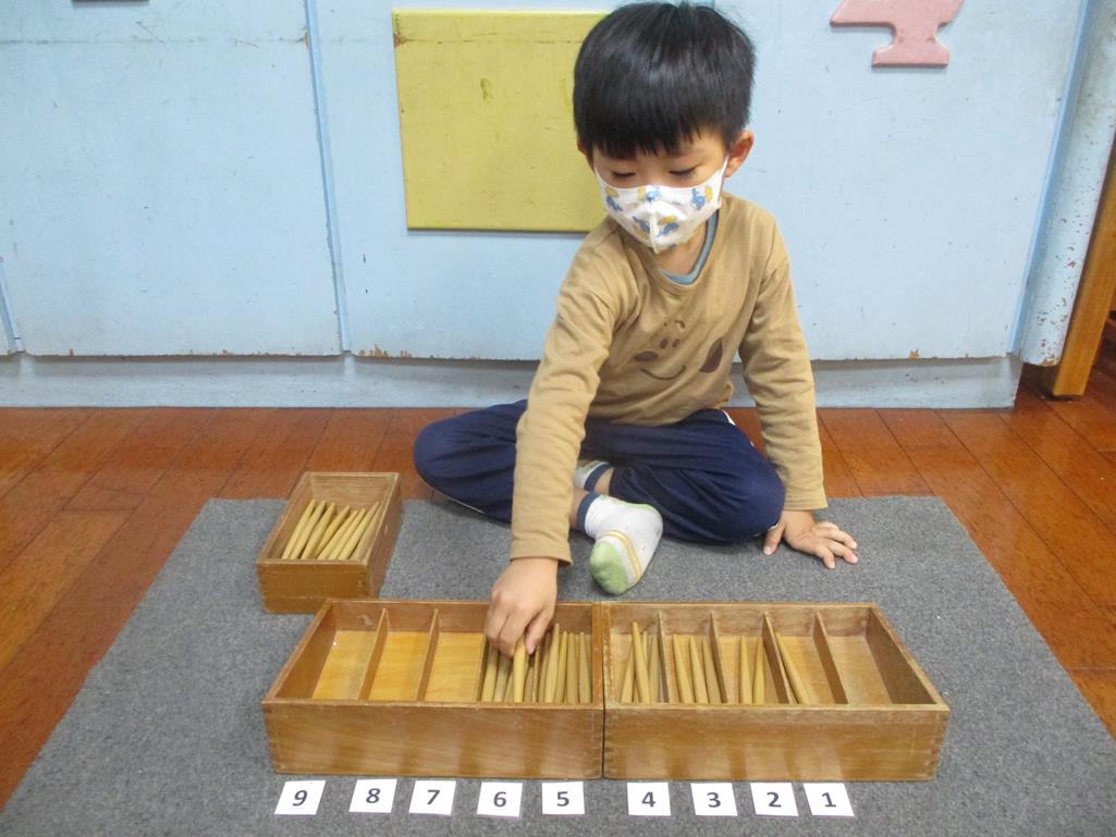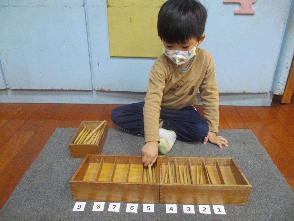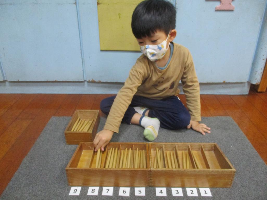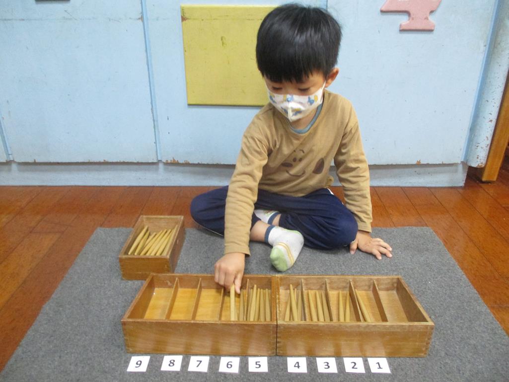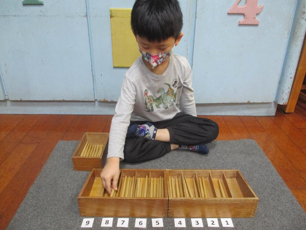 相簿名稱: 茉莉班-蒙特梭利教學(數學教育-紡錘棒箱 0~9)