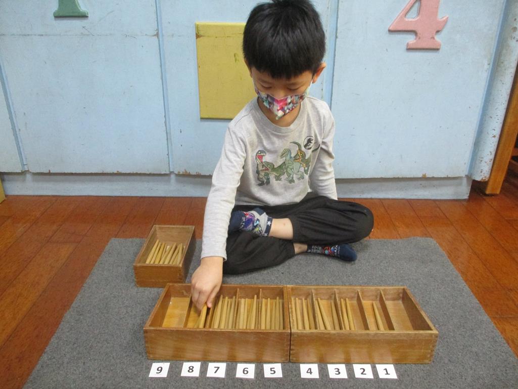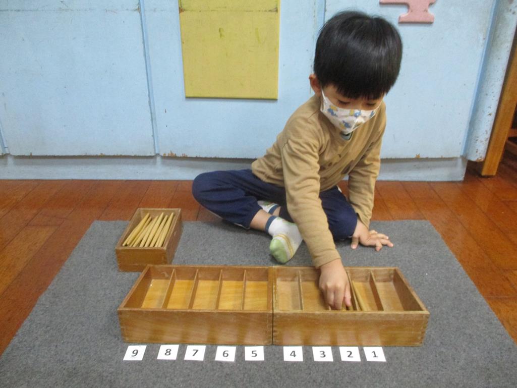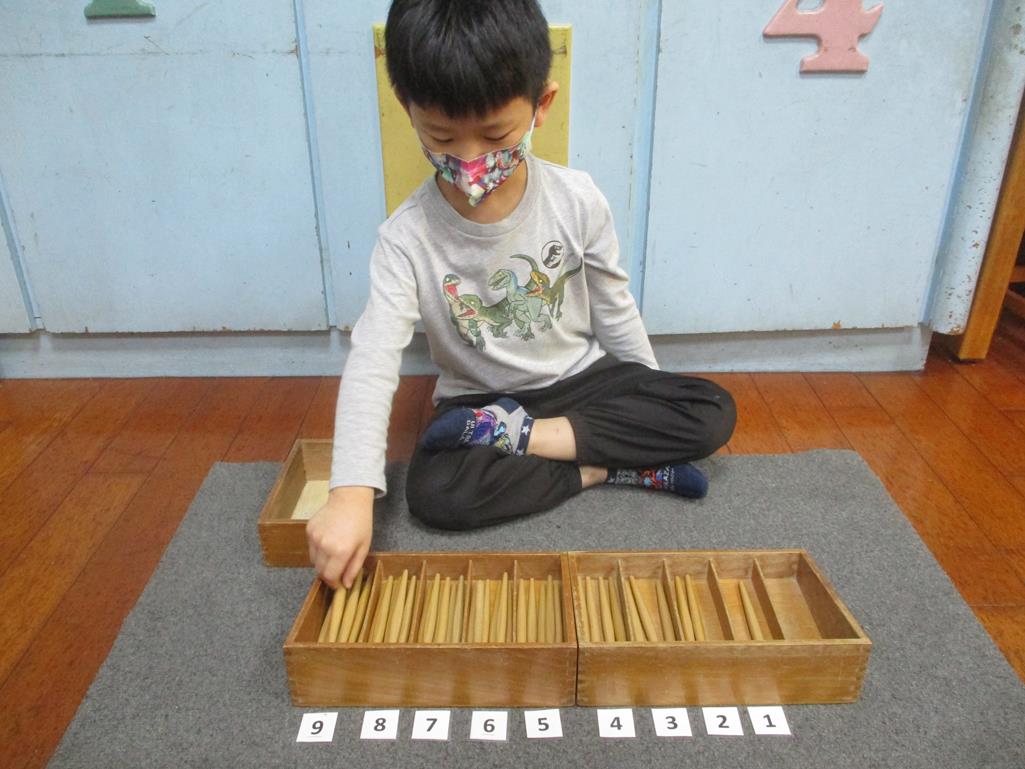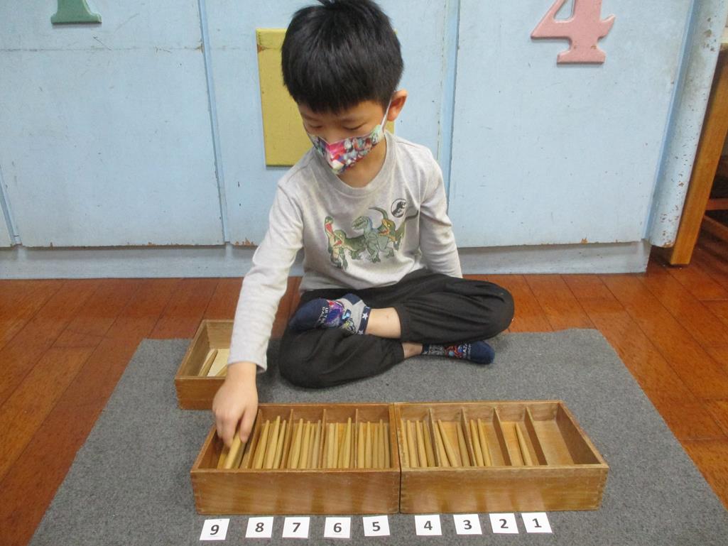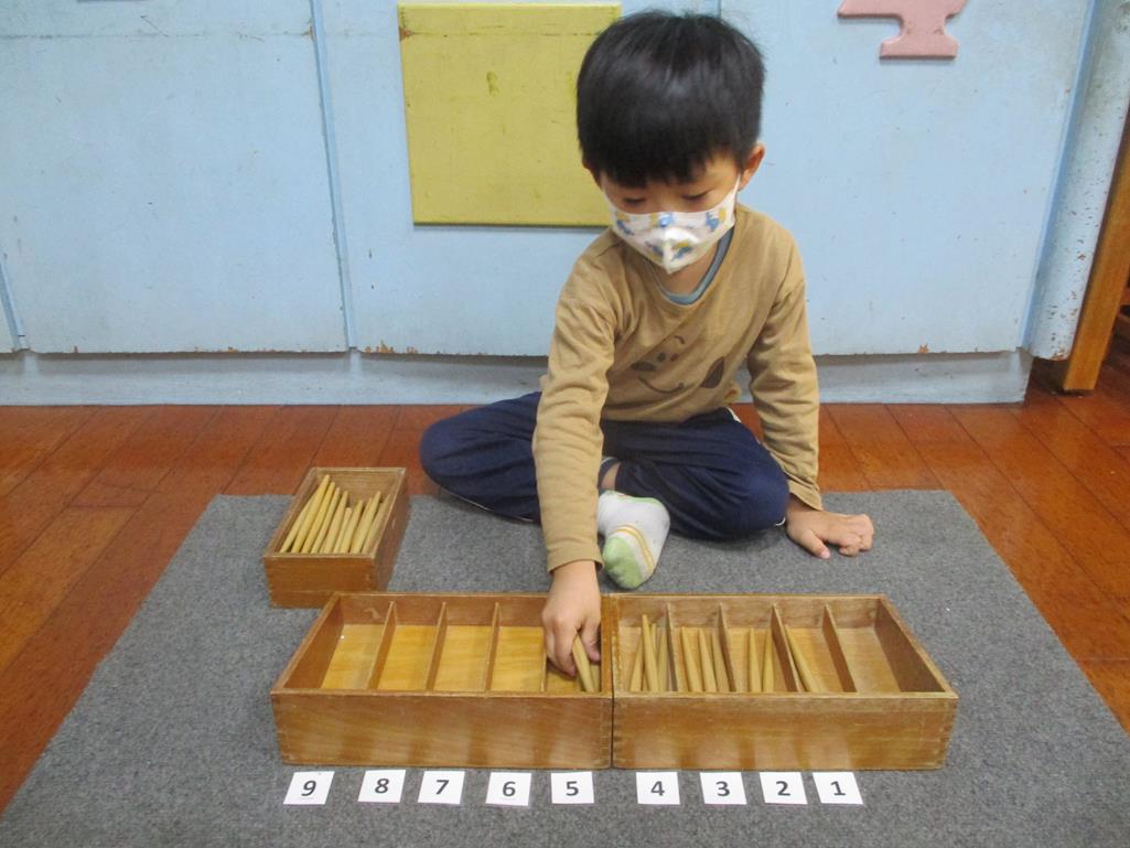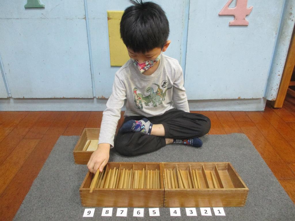 相簿名稱: 茉莉班-蒙特梭利教學(數學教育-紡錘棒箱 0~9)