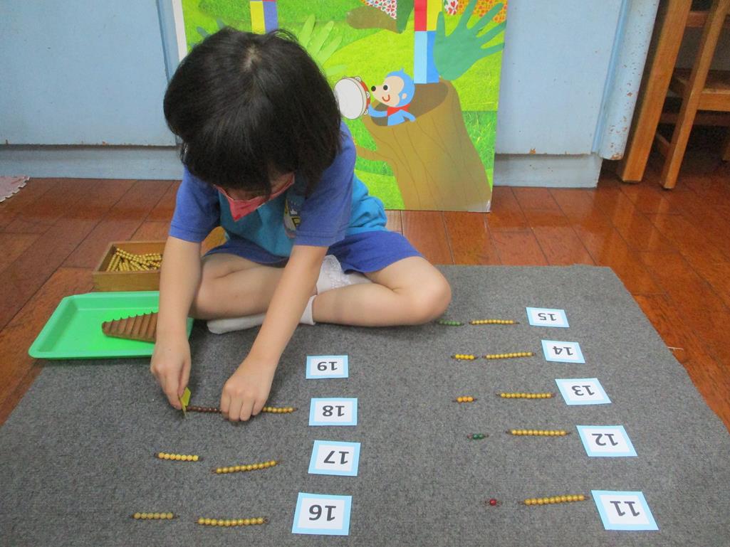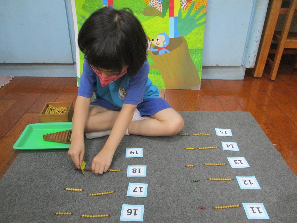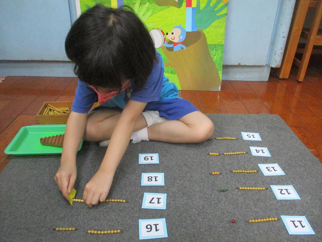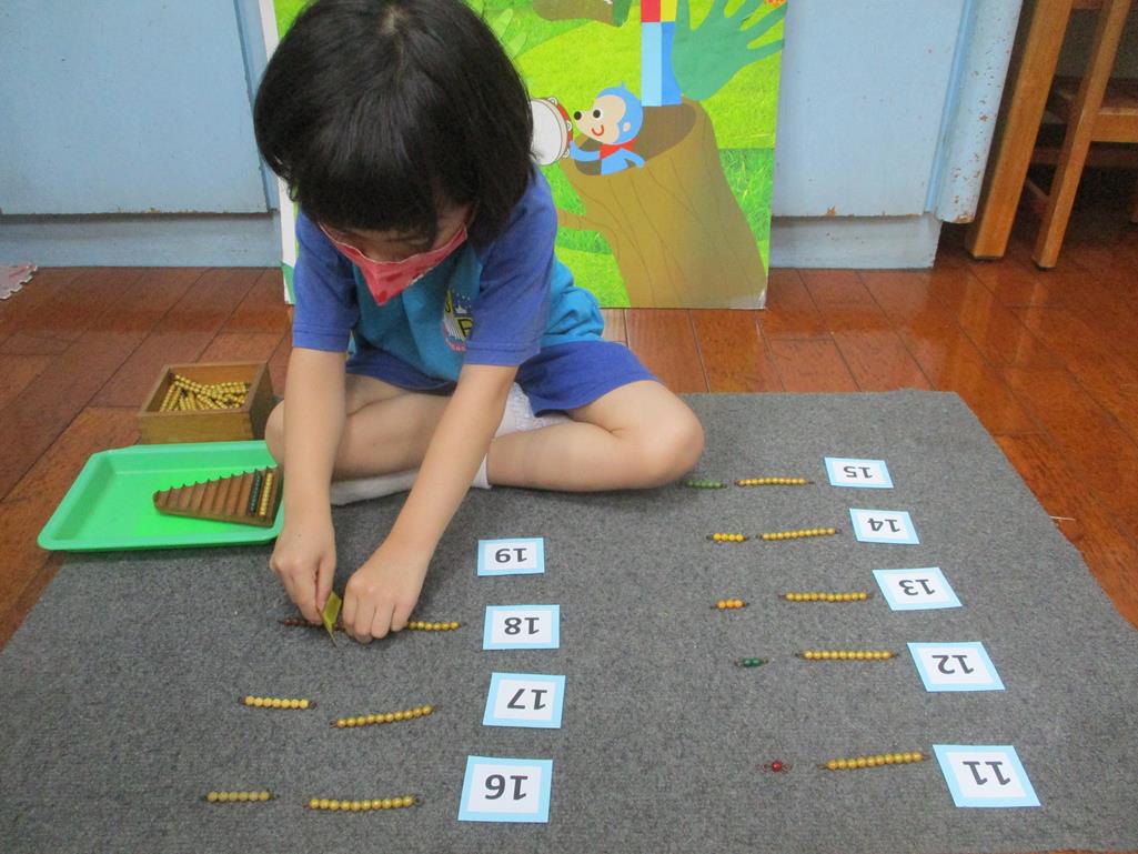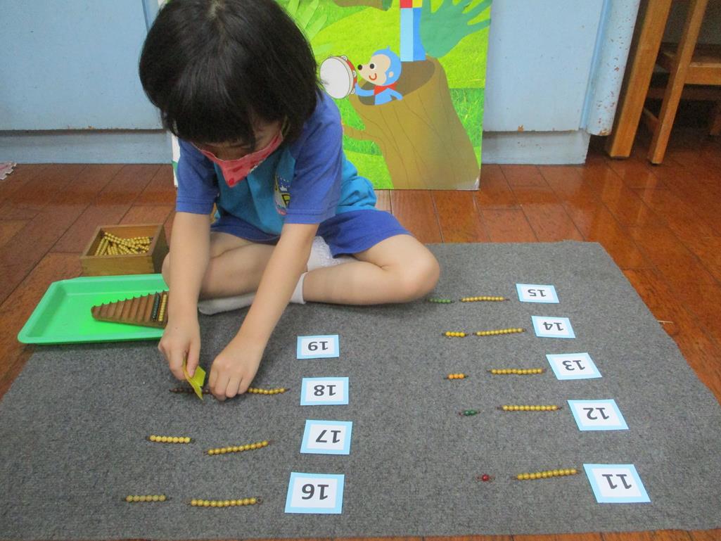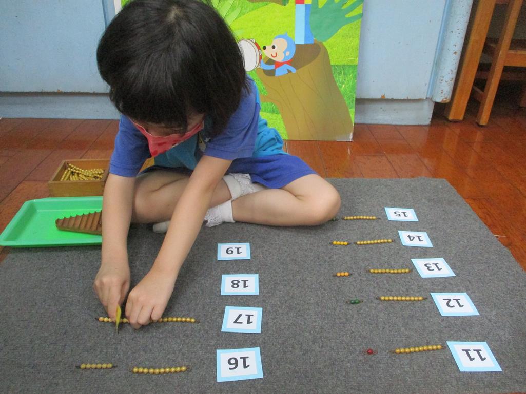 相簿名稱: 茉莉班-蒙特梭利教學(數學教育-彩色串珠11~19+字卡)