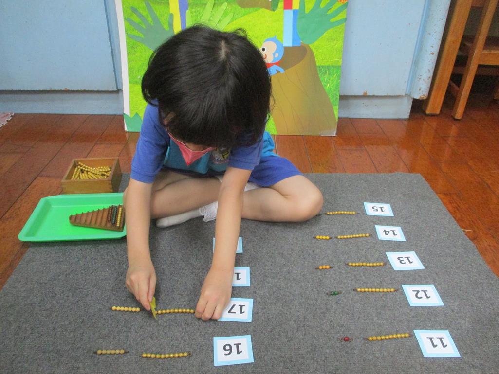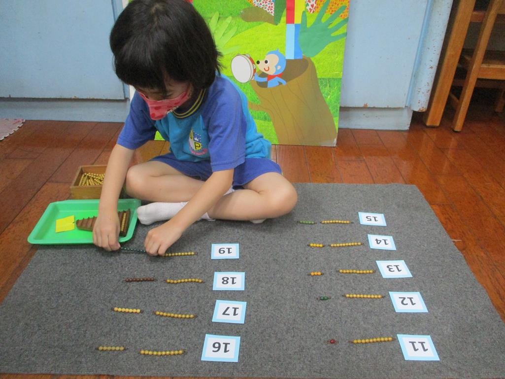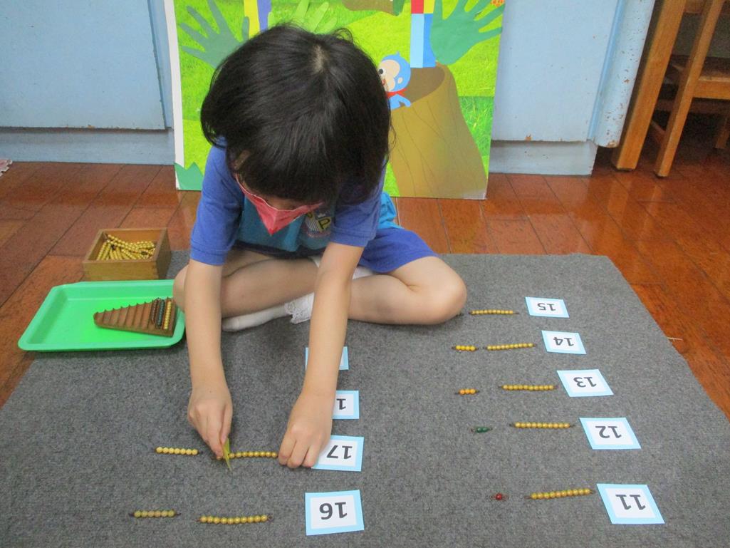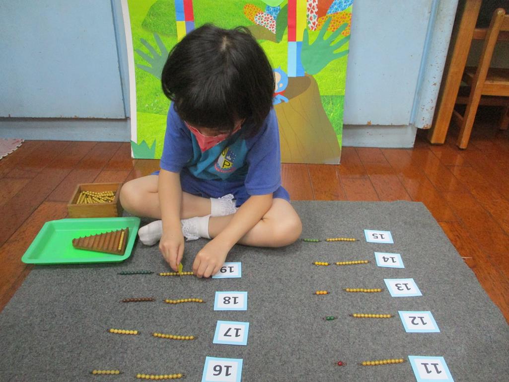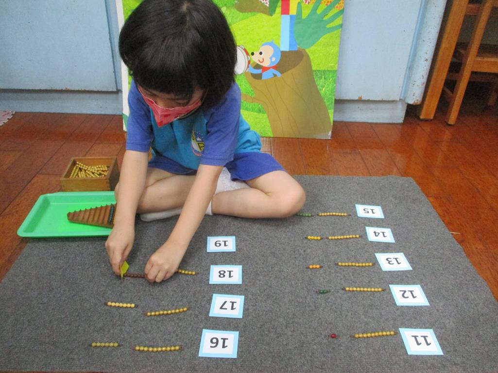 相簿名稱: 茉莉班-蒙特梭利教學(數學教育-彩色串珠11~19+字卡)