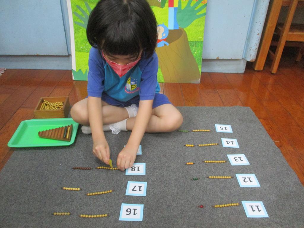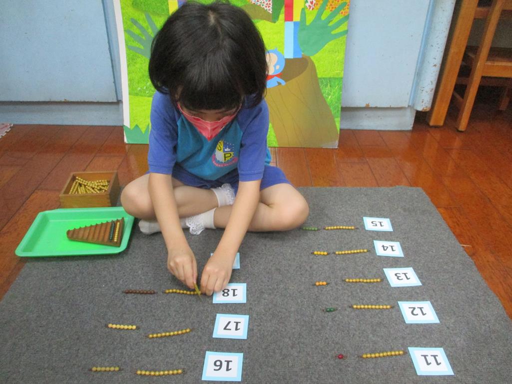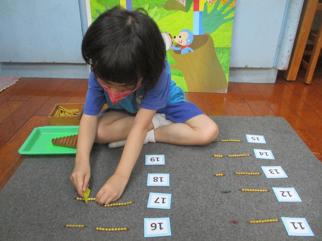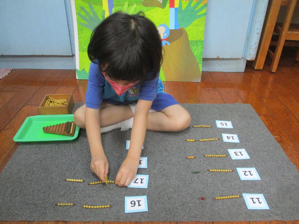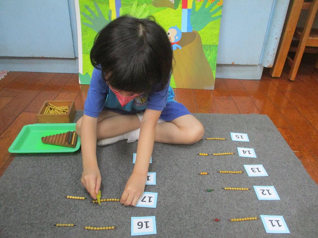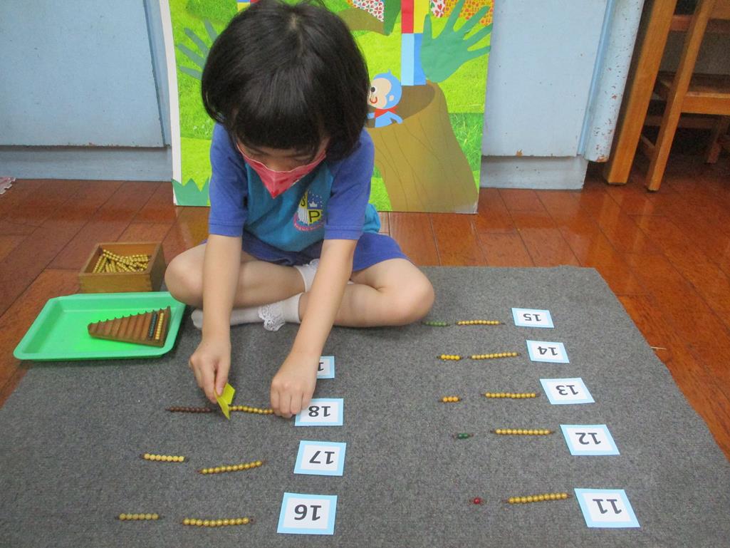 相簿名稱: 茉莉班-蒙特梭利教學(數學教育-彩色串珠11~19+字卡)