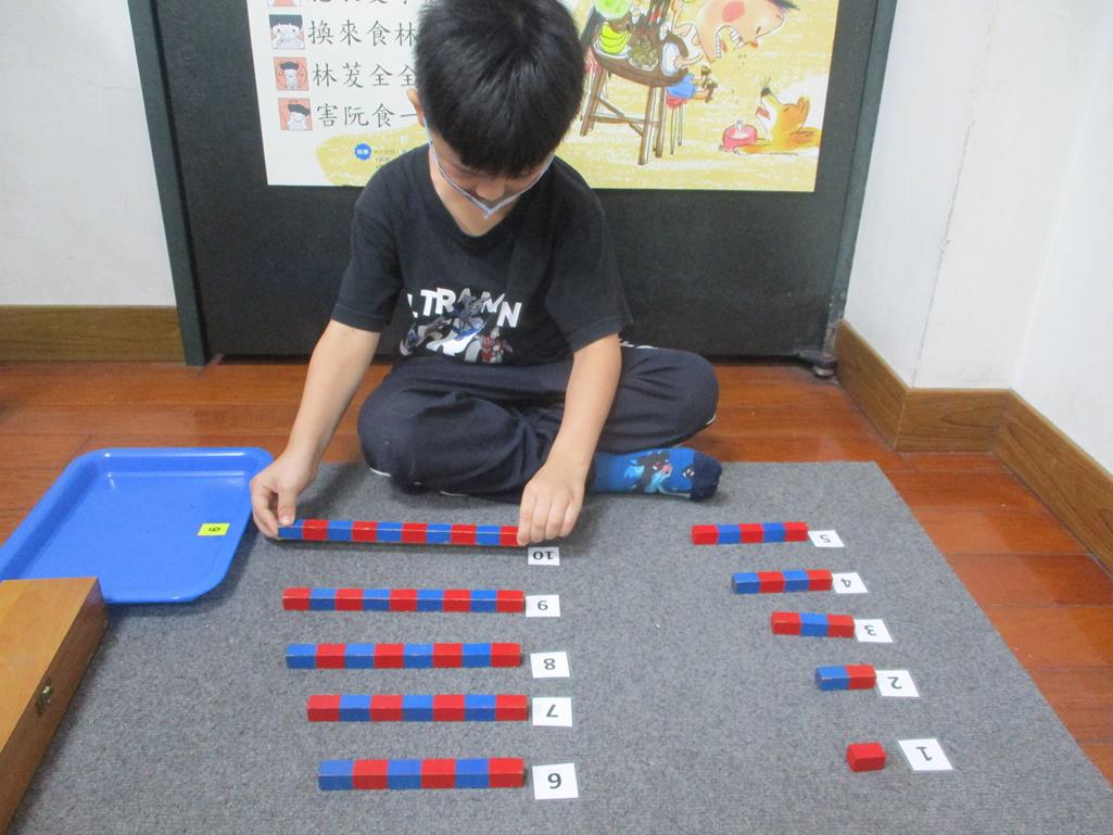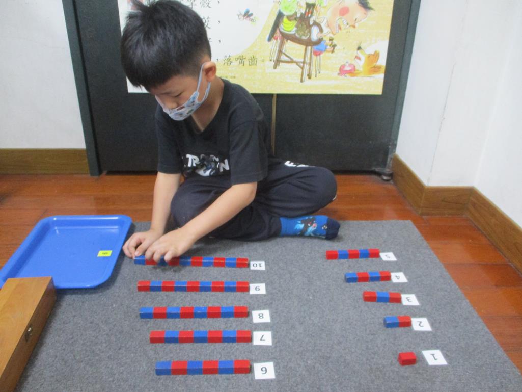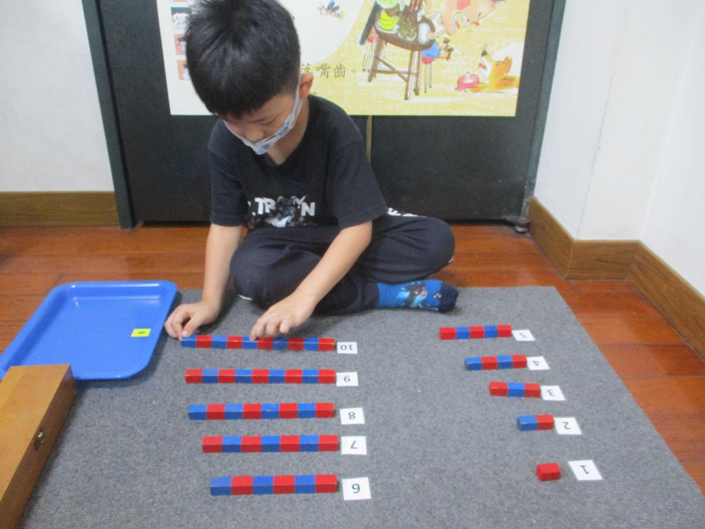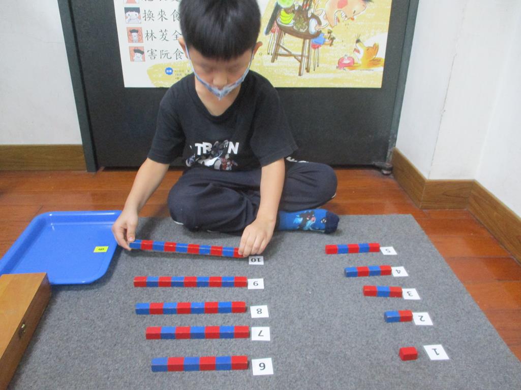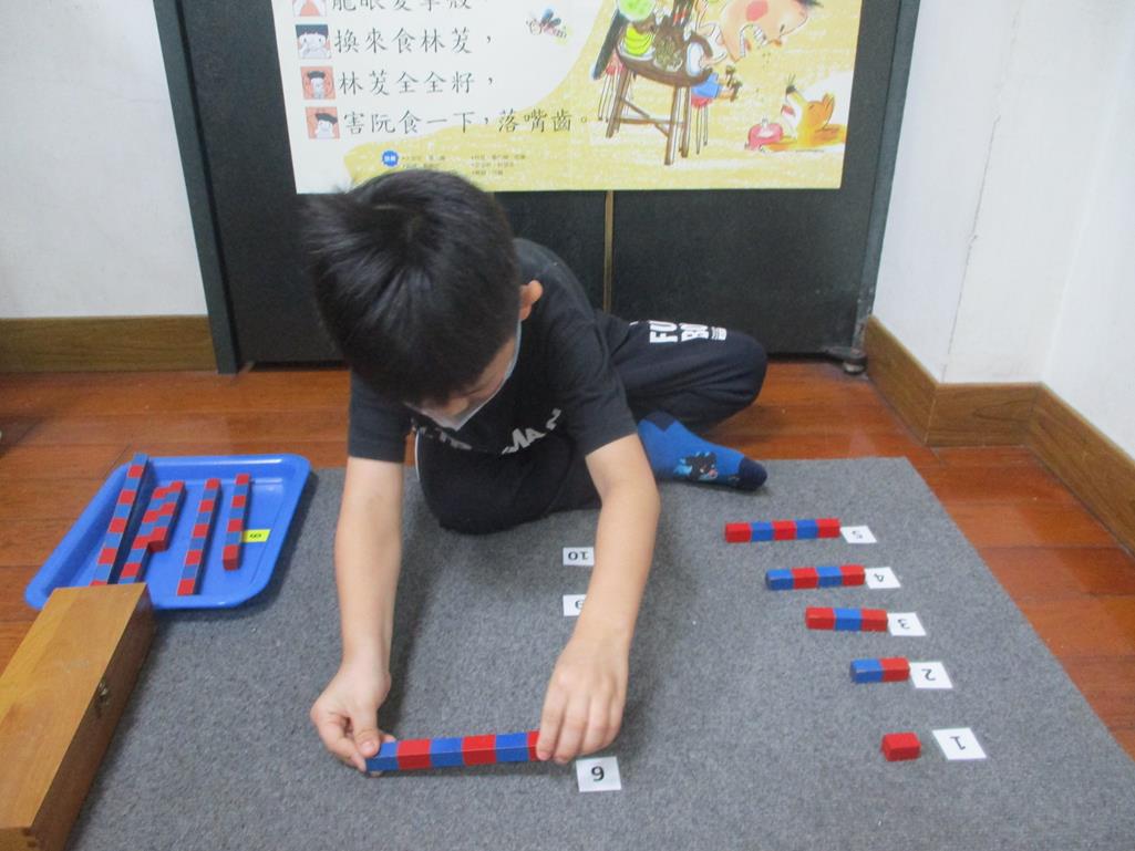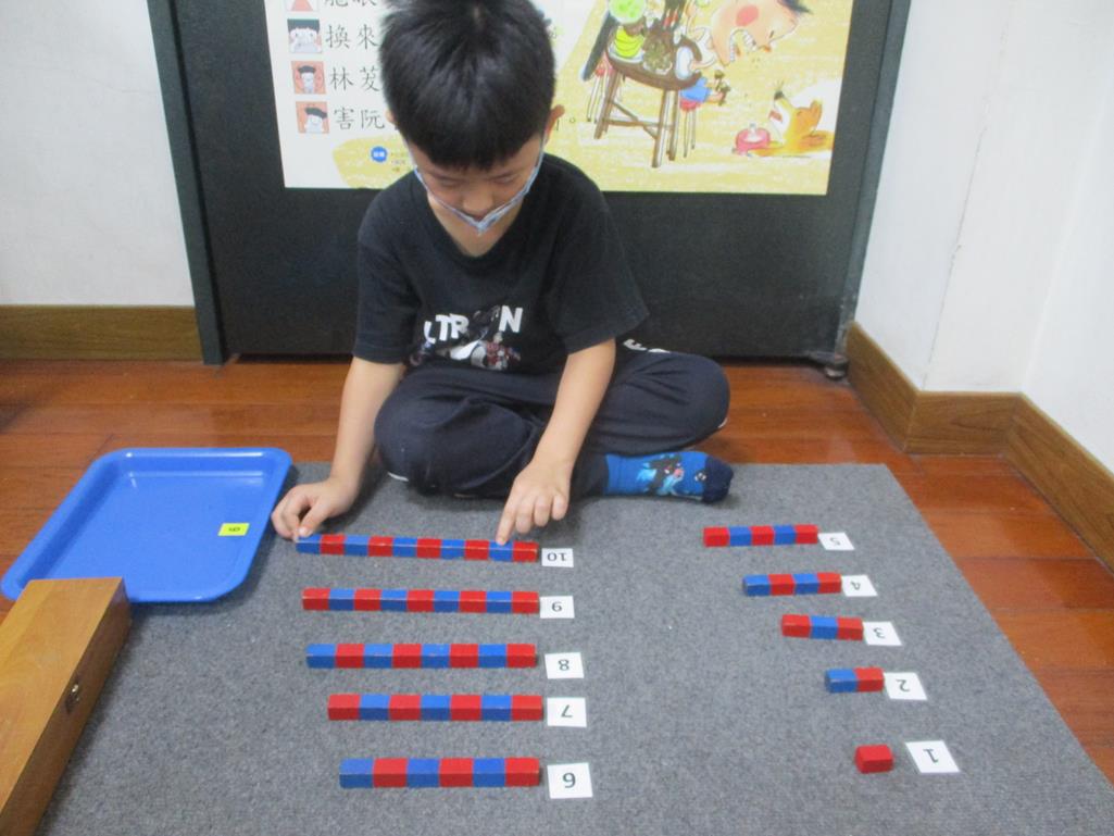 相簿名稱: 茉莉班-蒙特梭利教學(數學教育-數棒+1~10字卡&數棒(紙上作業))