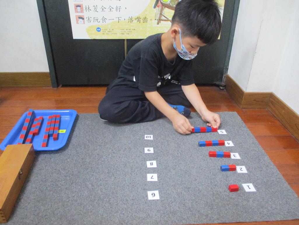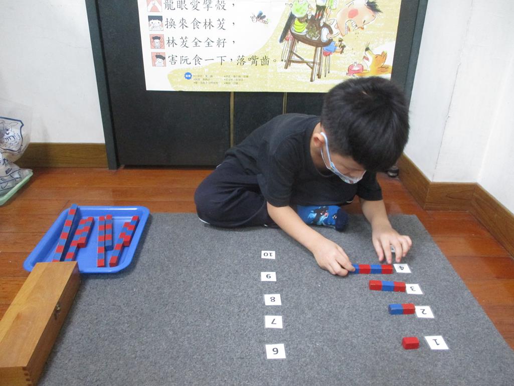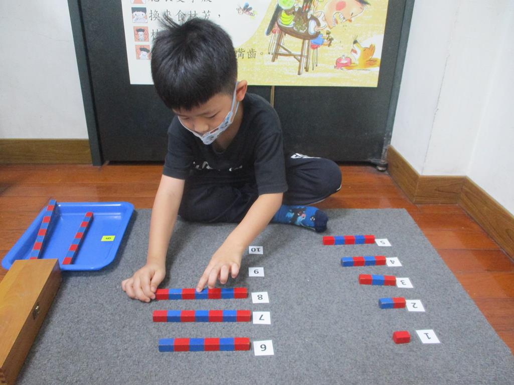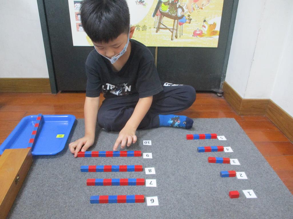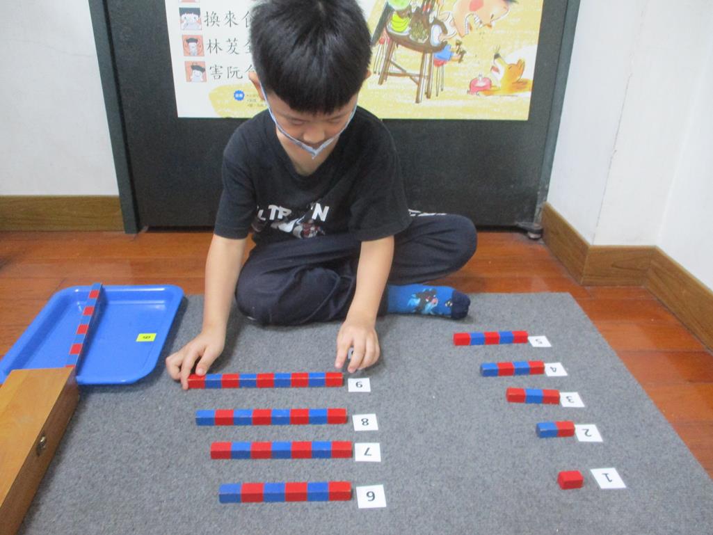 相簿名稱: 茉莉班-蒙特梭利教學(數學教育-數棒+1~10字卡&數棒(紙上作業))