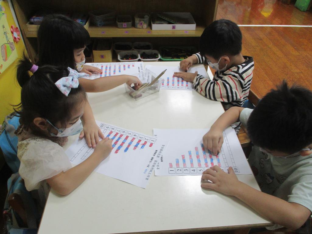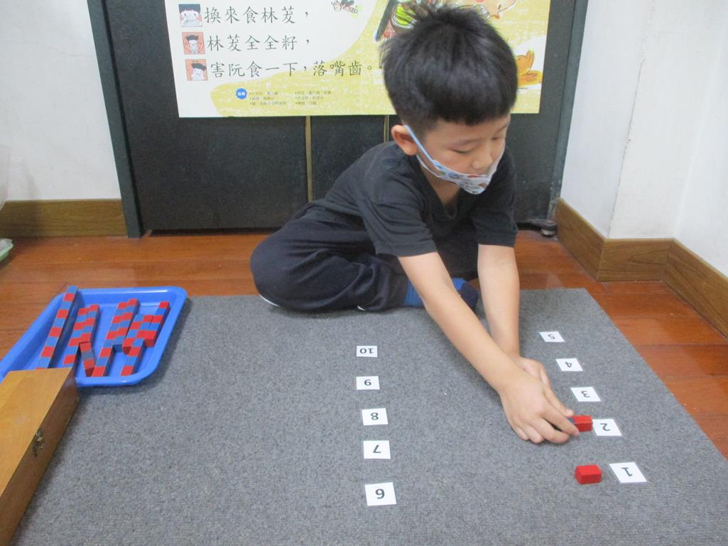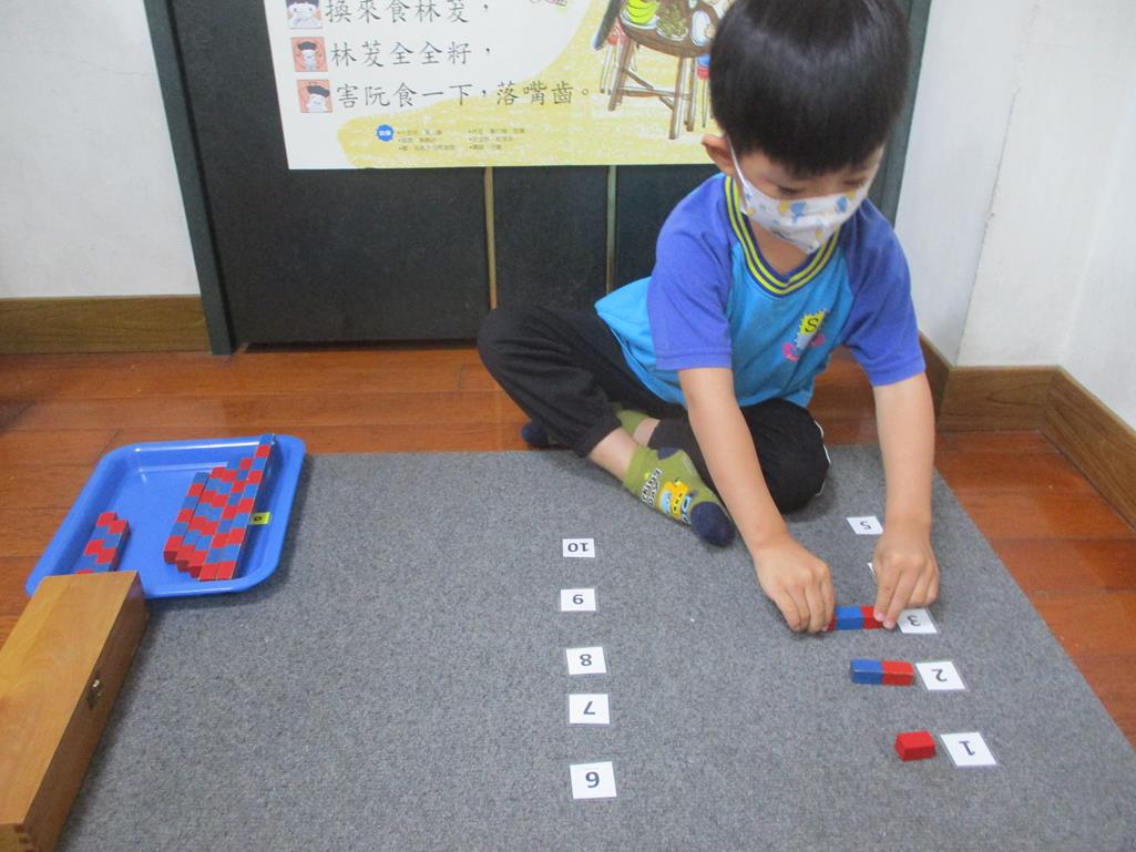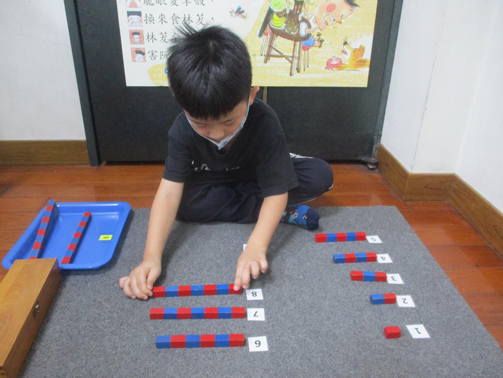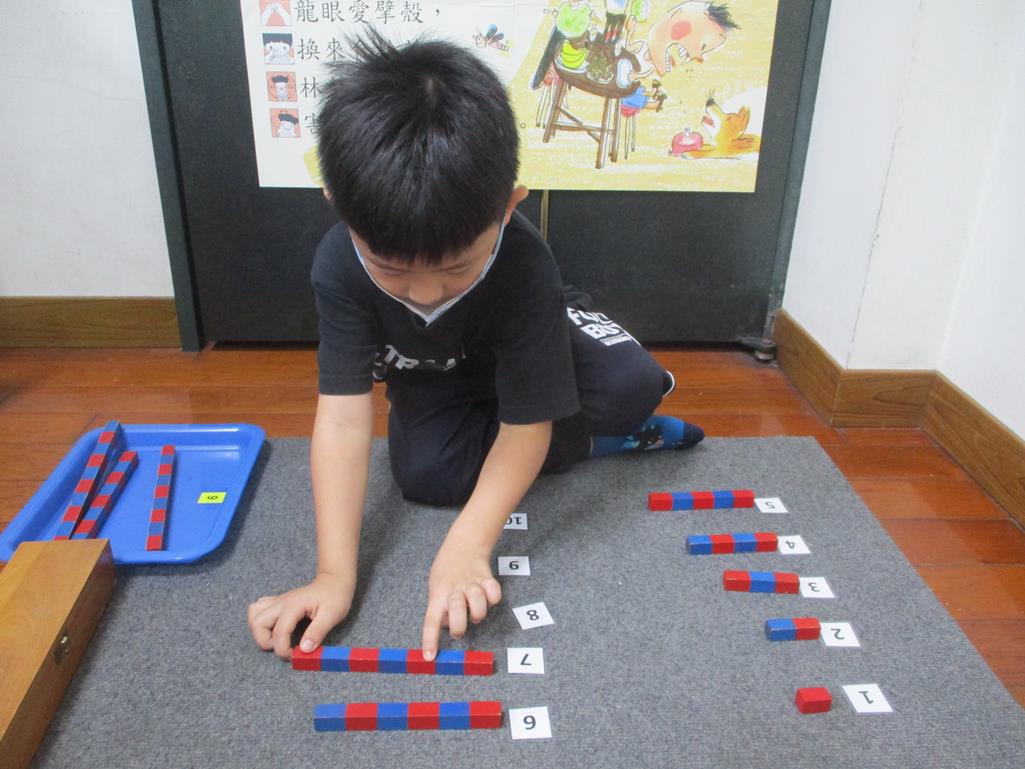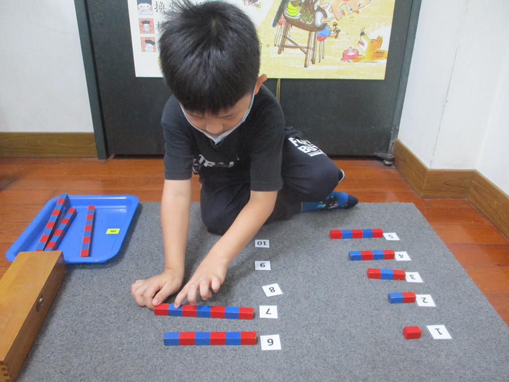 相簿名稱: 茉莉班-蒙特梭利教學(數學教育-數棒+1~10字卡&數棒(紙上作業))