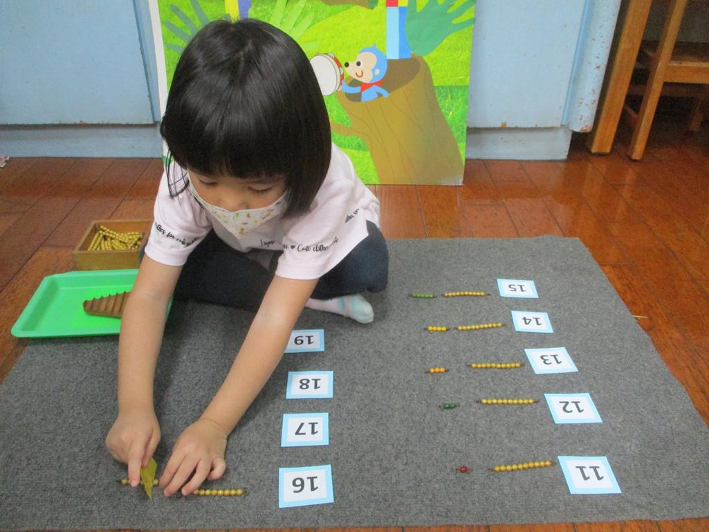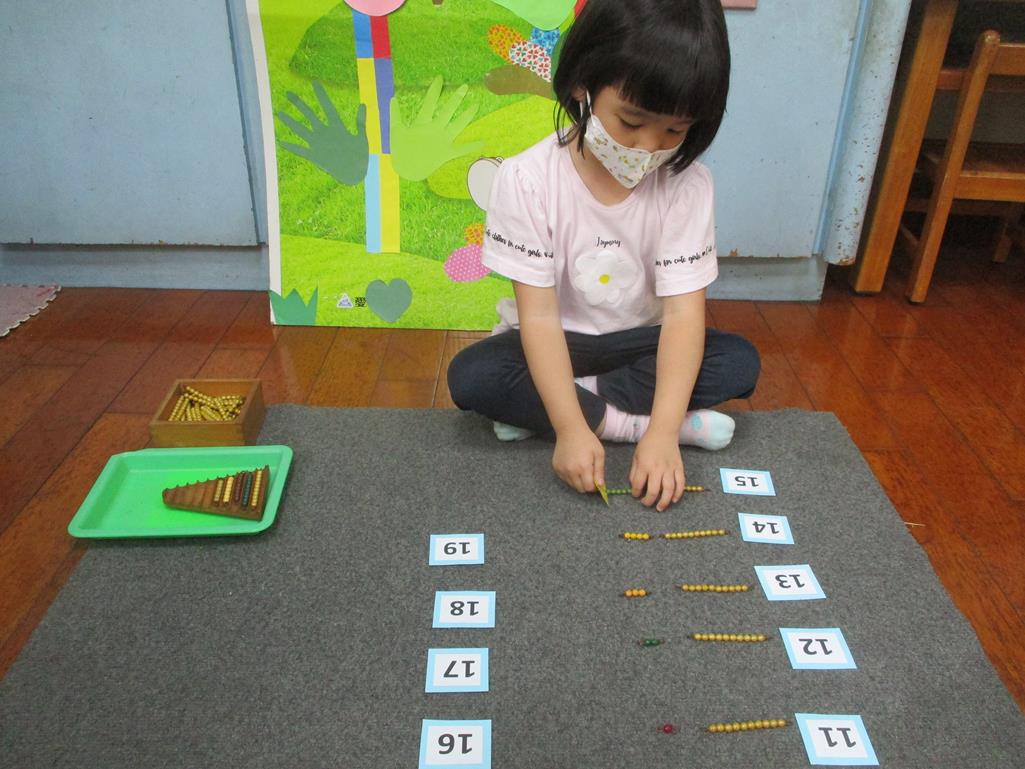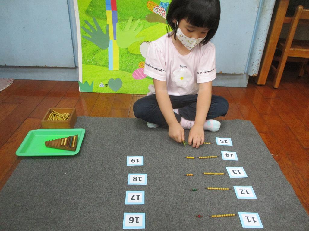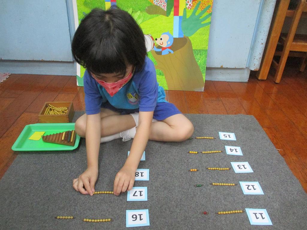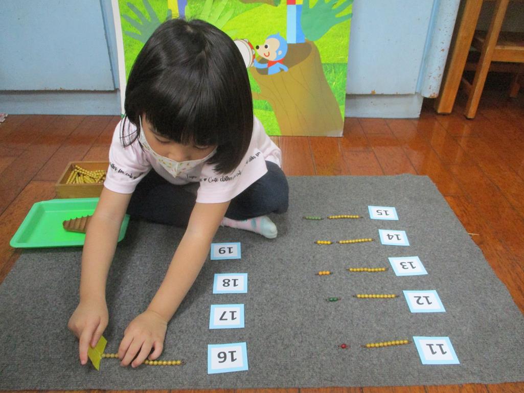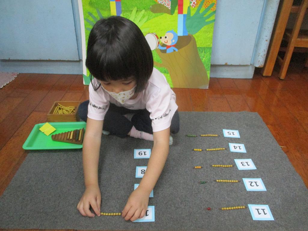 相簿名稱: 茉莉班-蒙特梭利教學(數學教育-彩色串珠11~19+字卡)