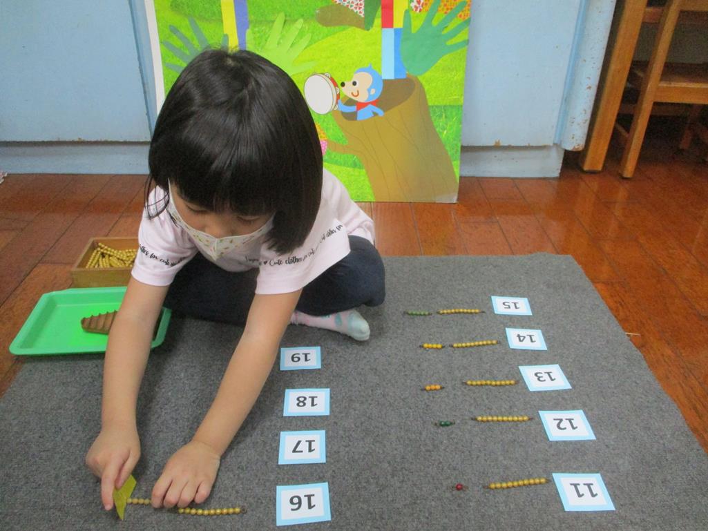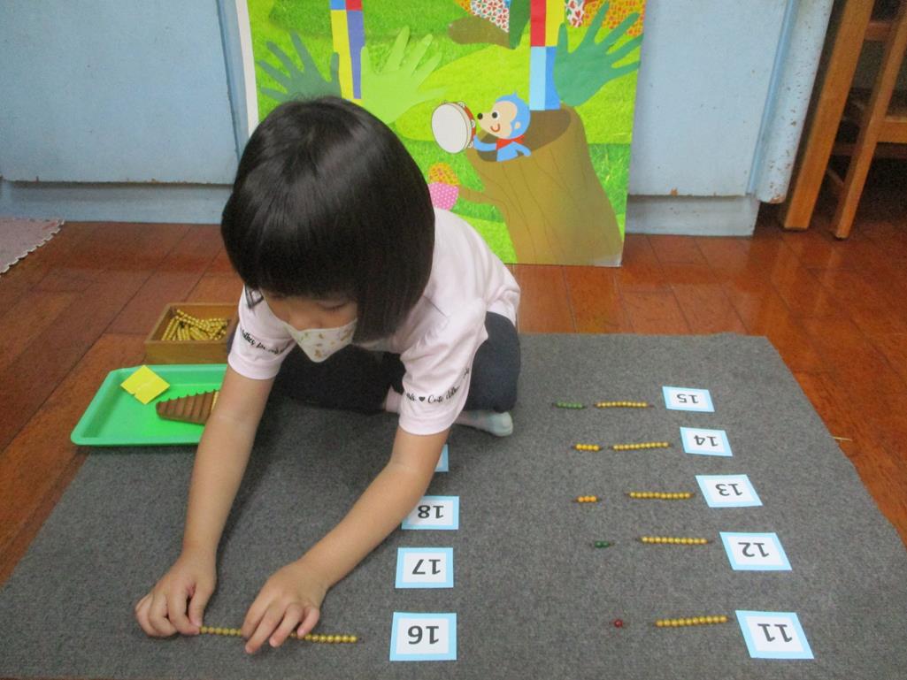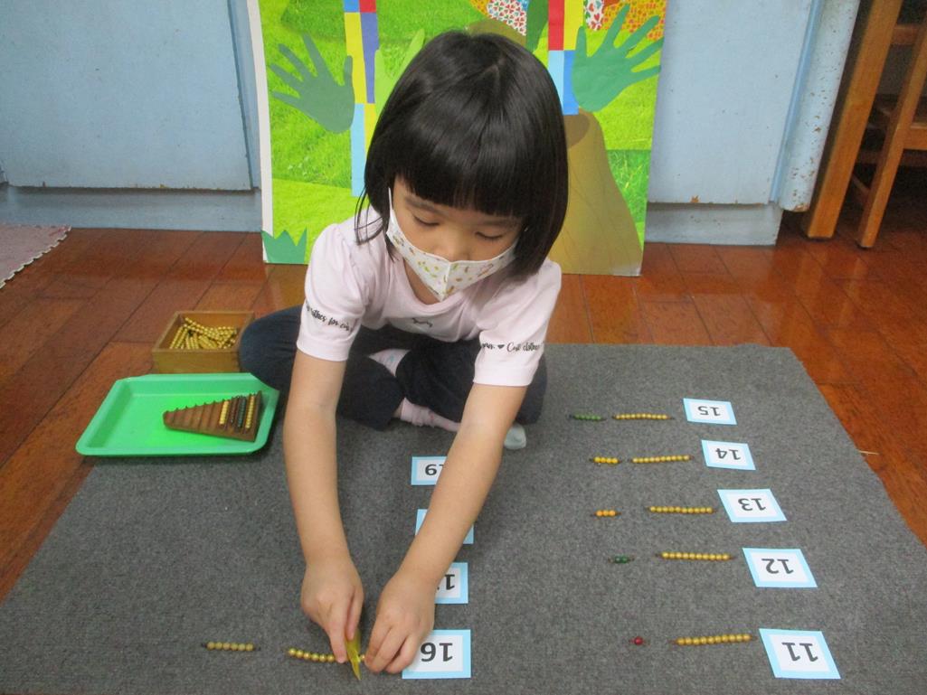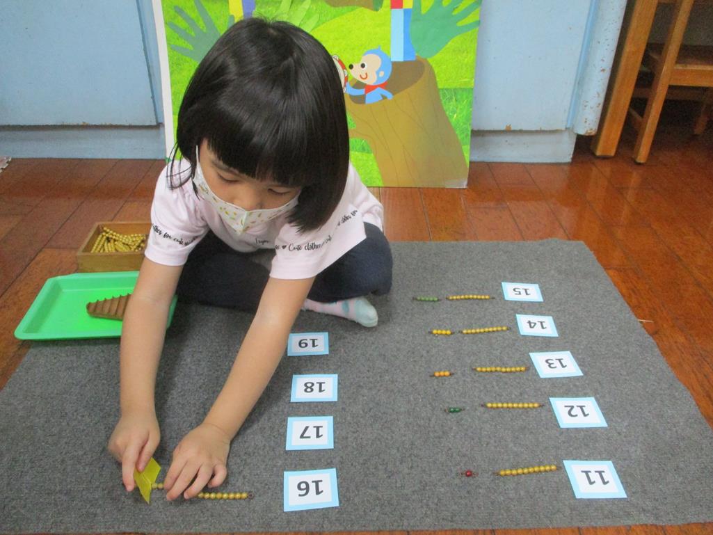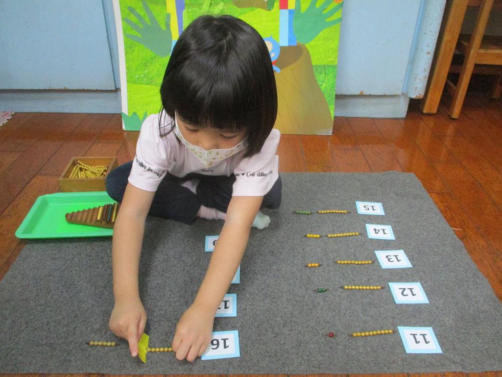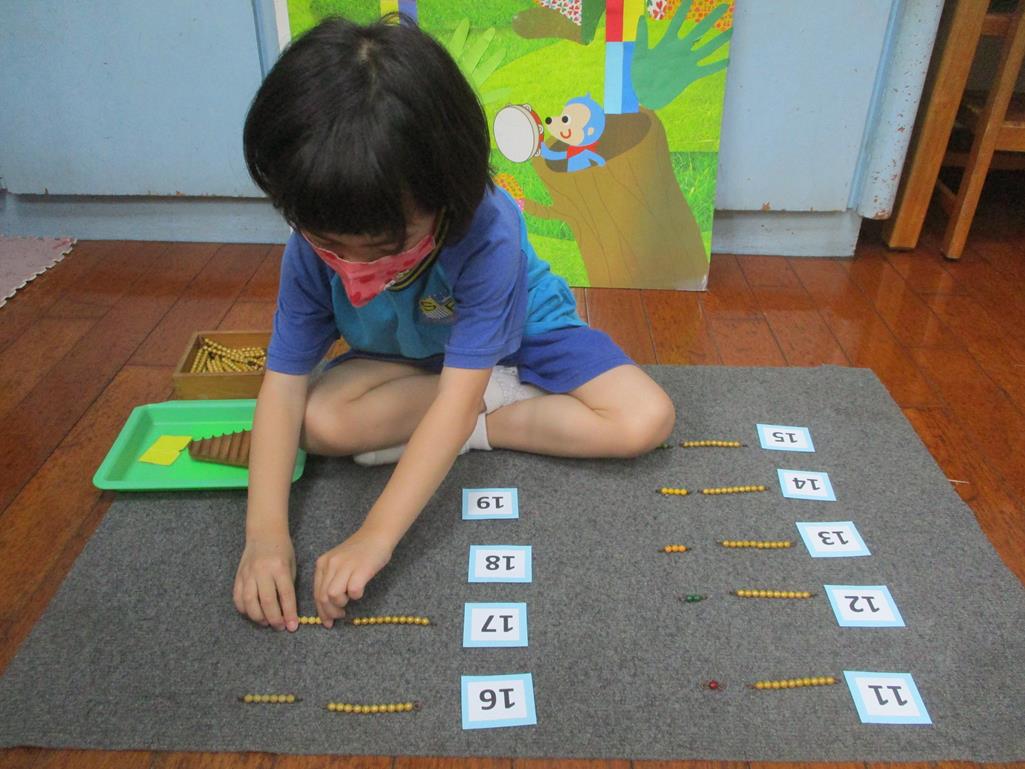 相簿名稱: 茉莉班-蒙特梭利教學(數學教育-彩色串珠11~19+字卡)