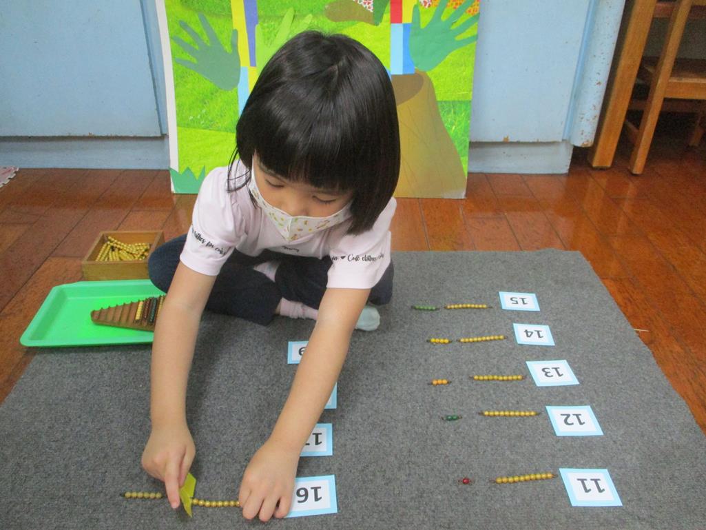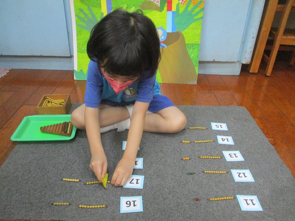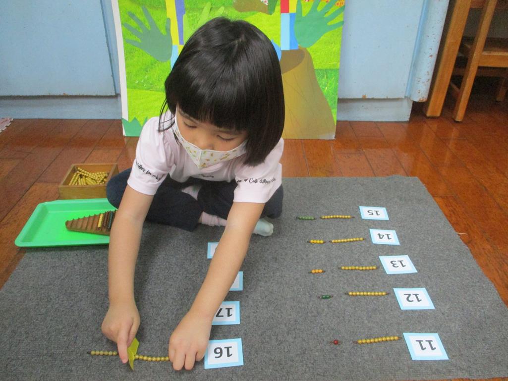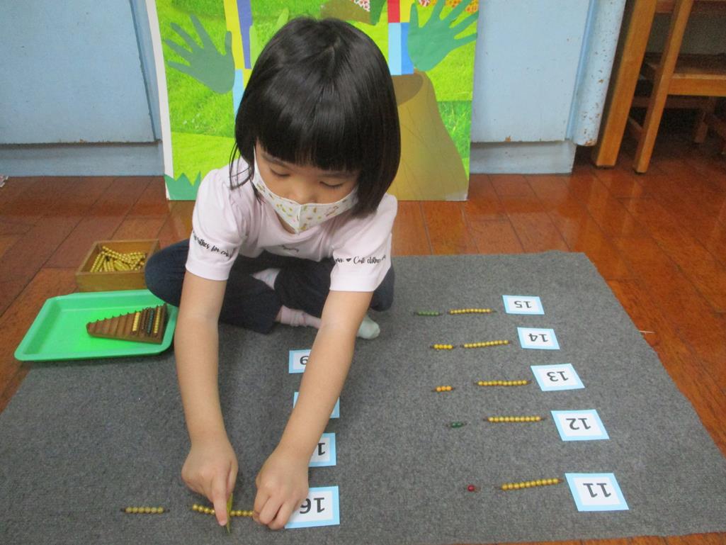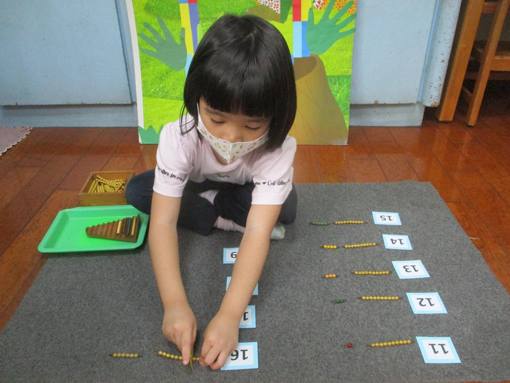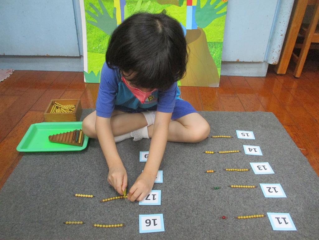 相簿名稱: 茉莉班-蒙特梭利教學(數學教育-彩色串珠11~19+字卡)
