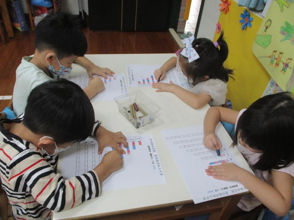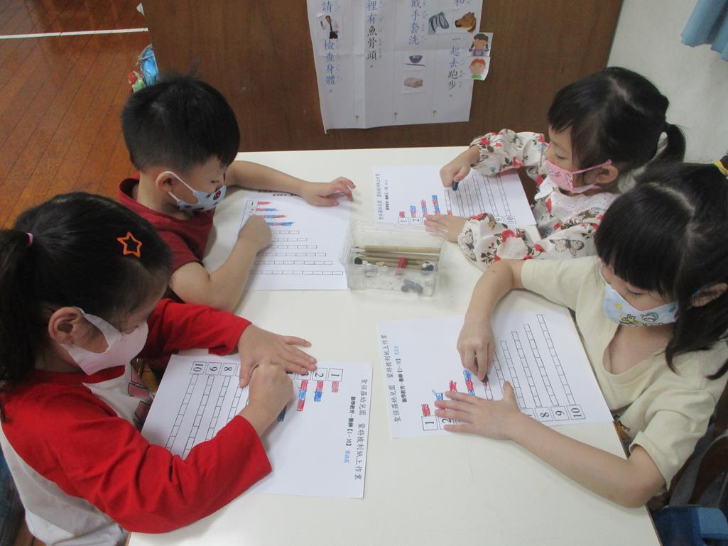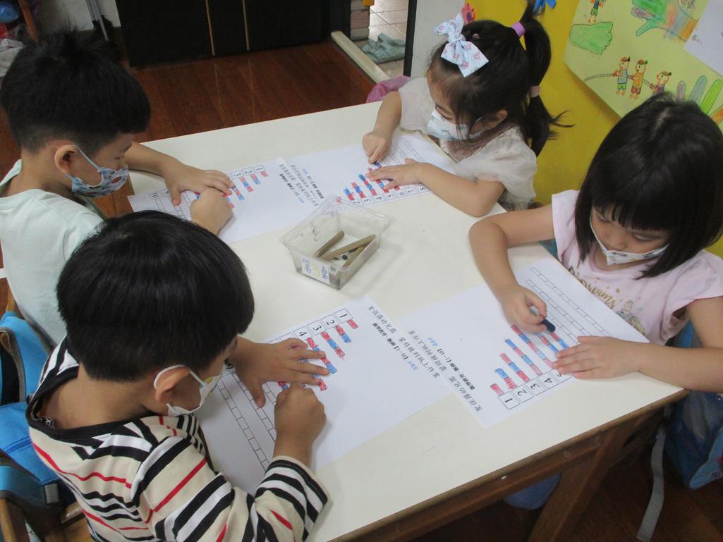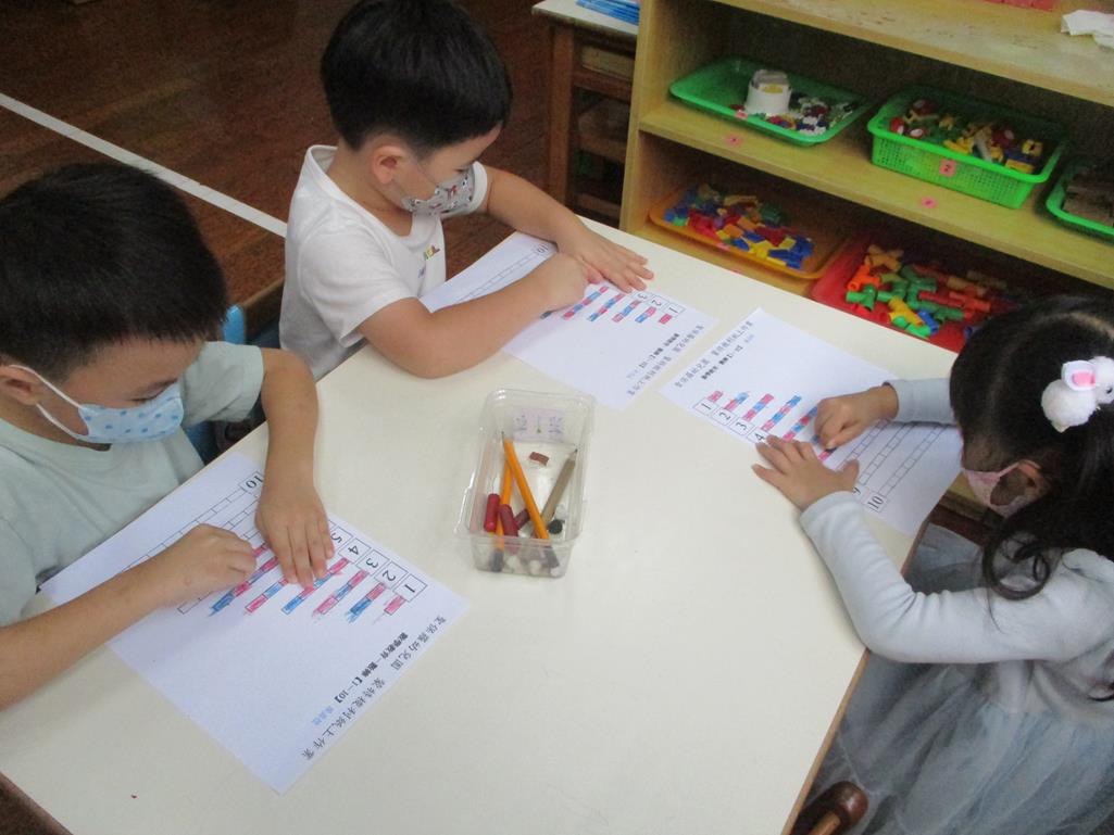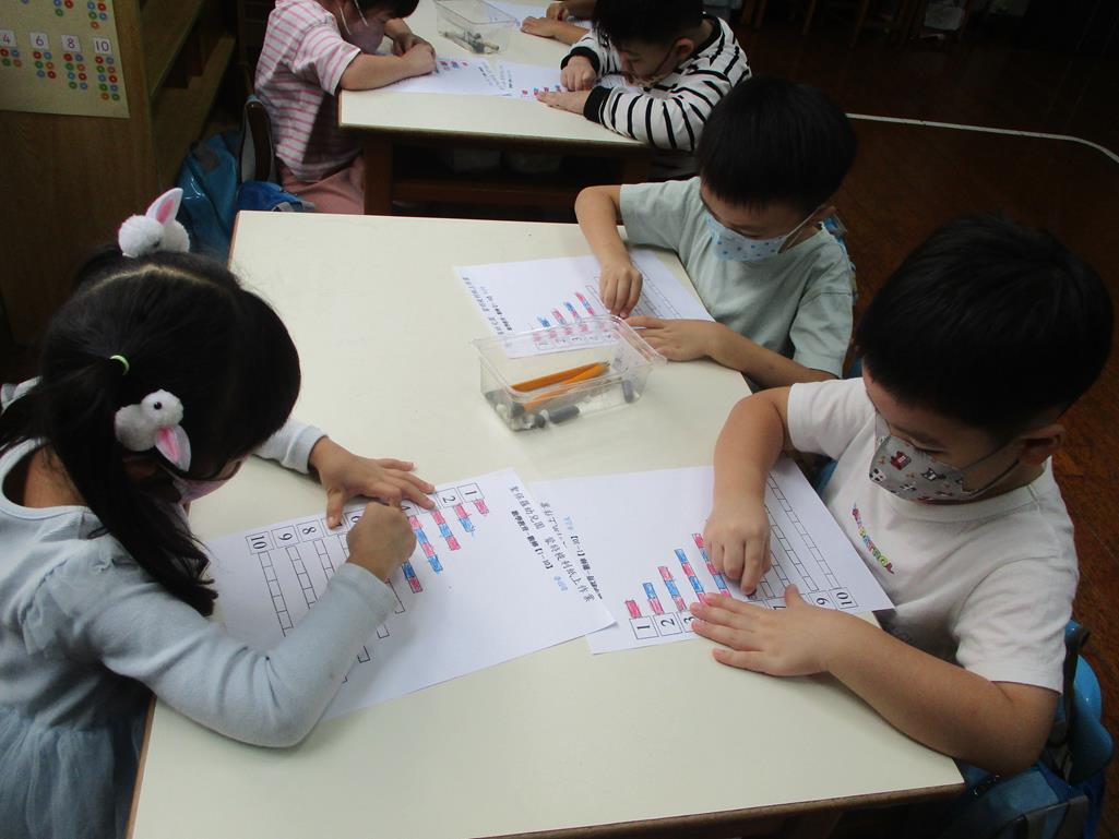 相簿名稱: 茉莉班-蒙特梭利教學(數學教育-數棒+1~10字卡&數棒(紙上作業))