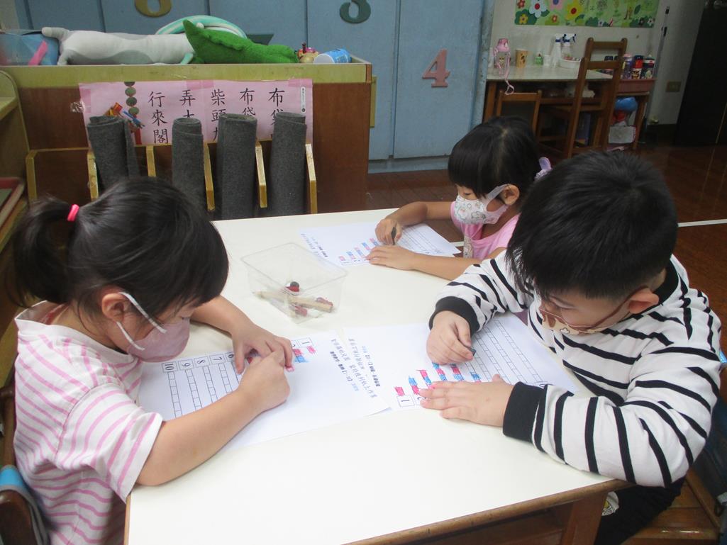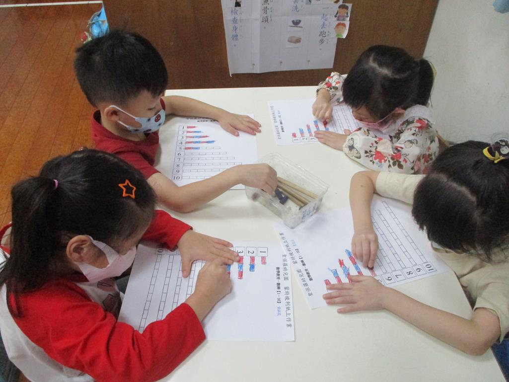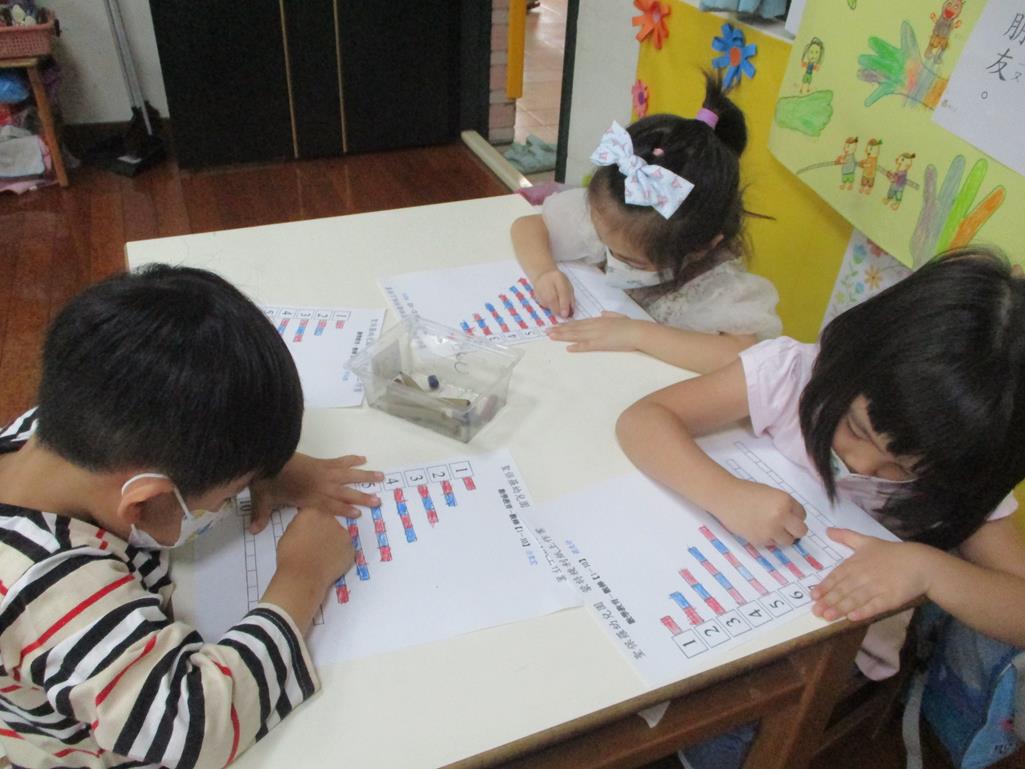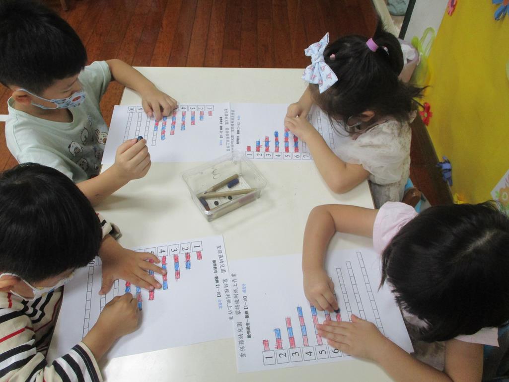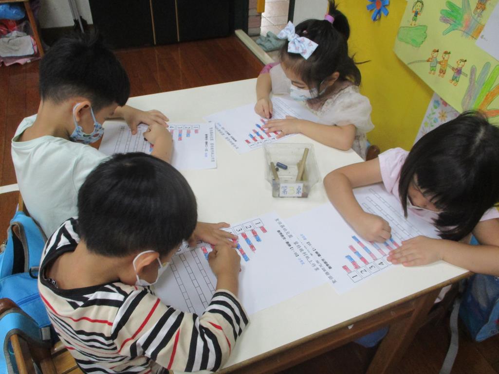 相簿名稱: 茉莉班-蒙特梭利教學(數學教育-數棒+1~10字卡&數棒(紙上作業))