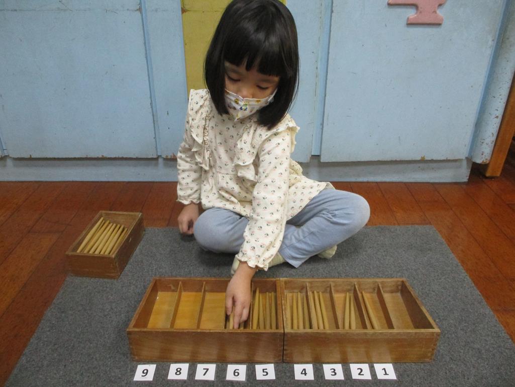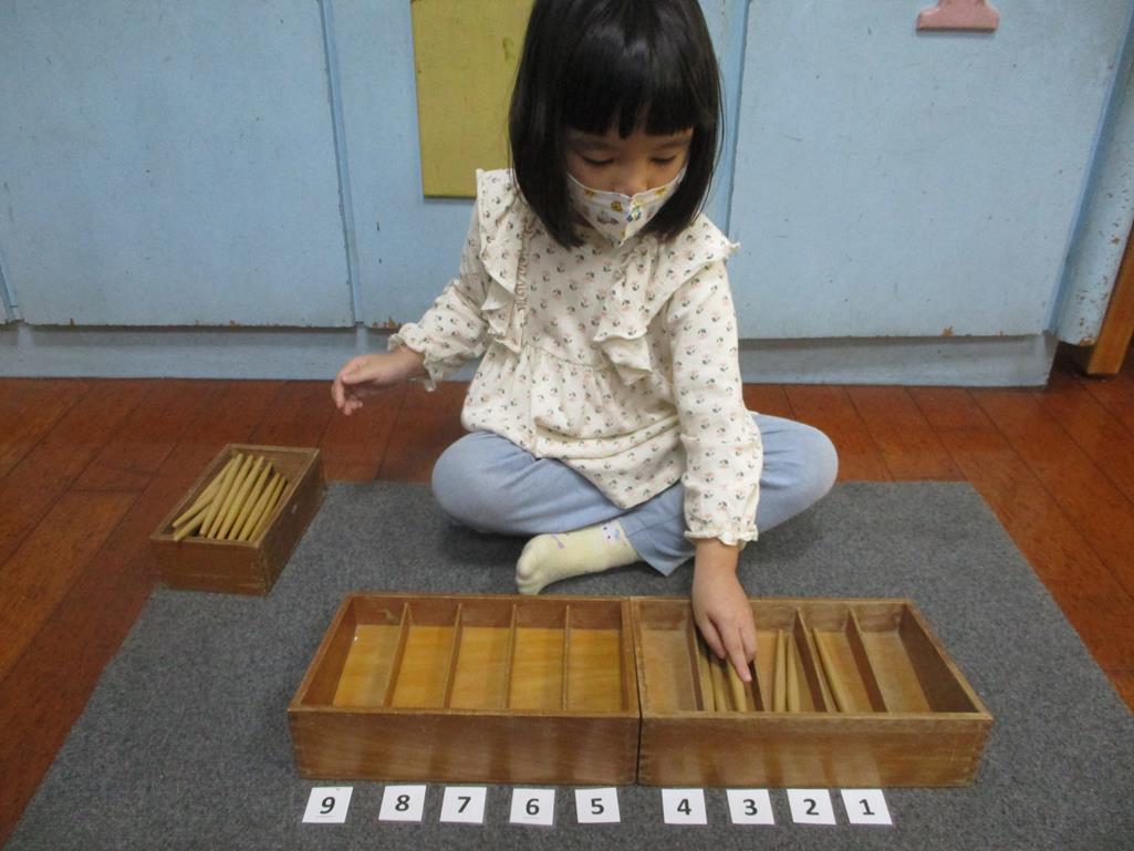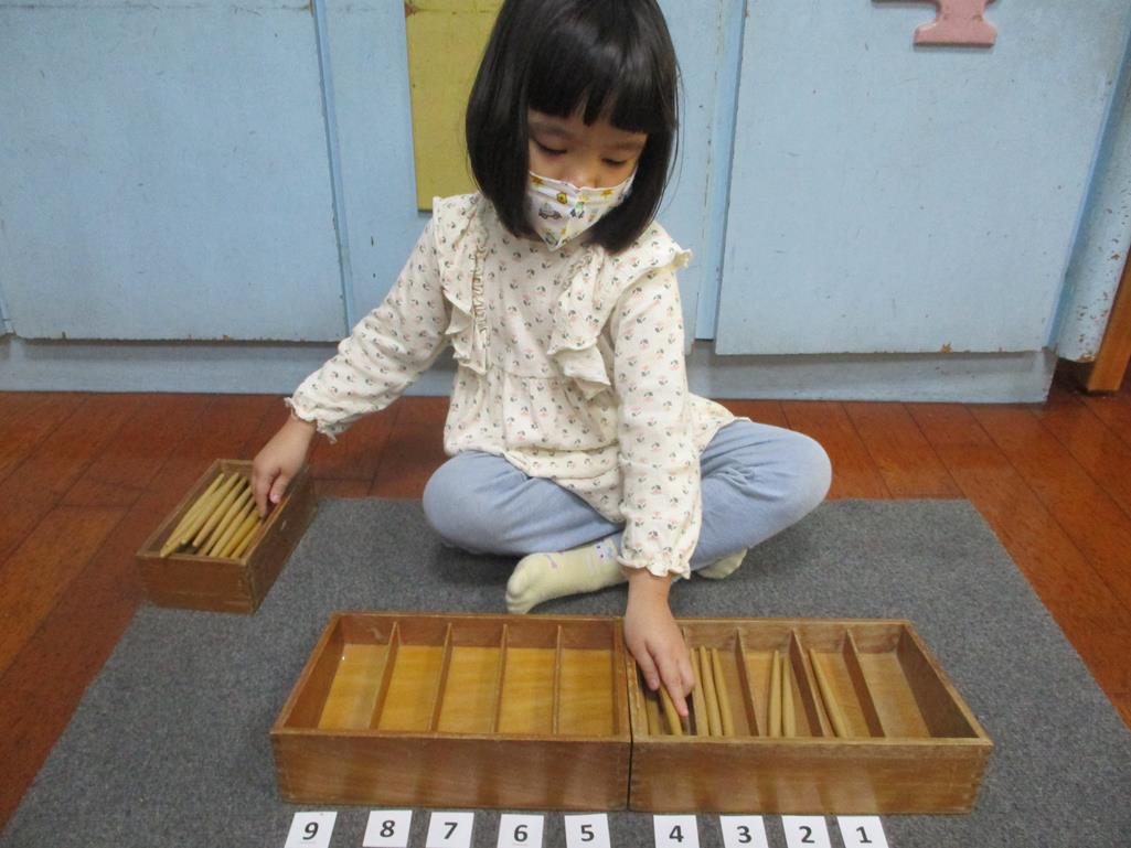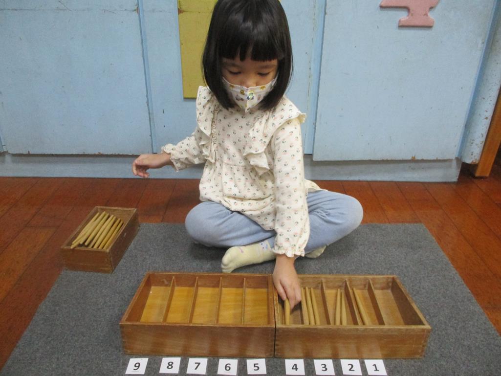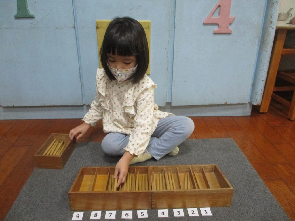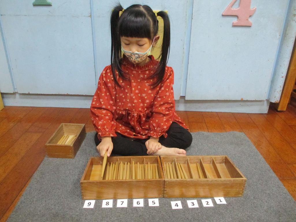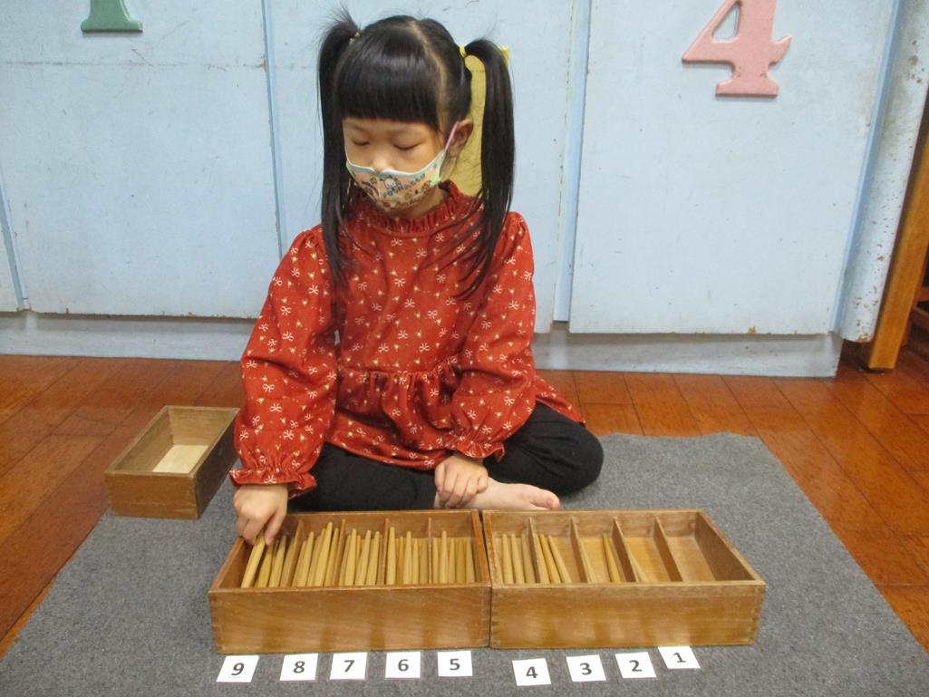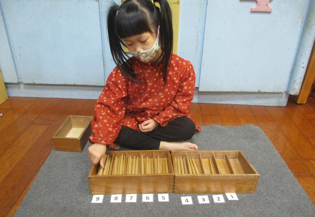 相簿名稱: 茉莉班-蒙特梭利教學(數學教育-紡錘棒箱 0~9)