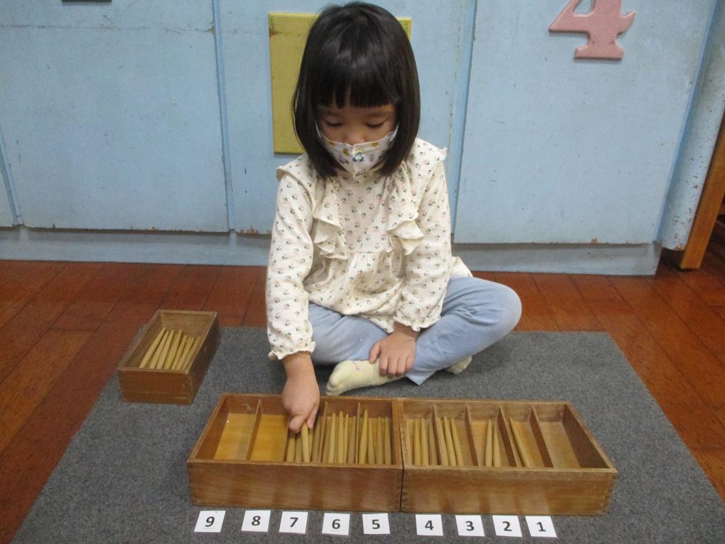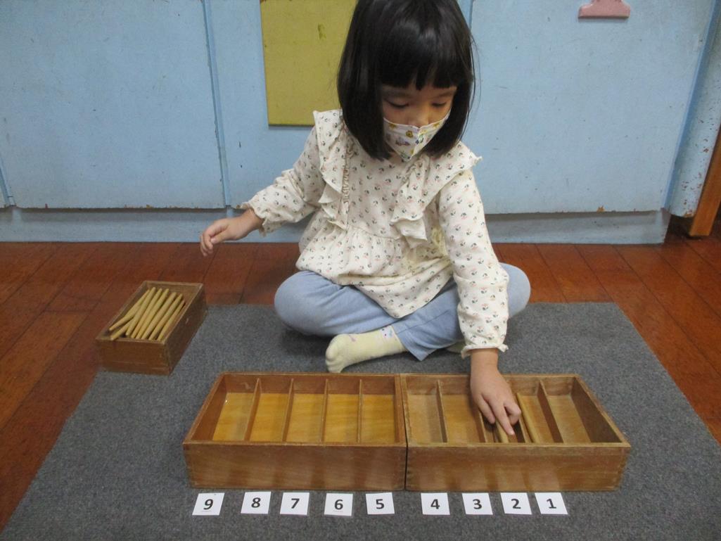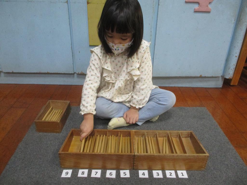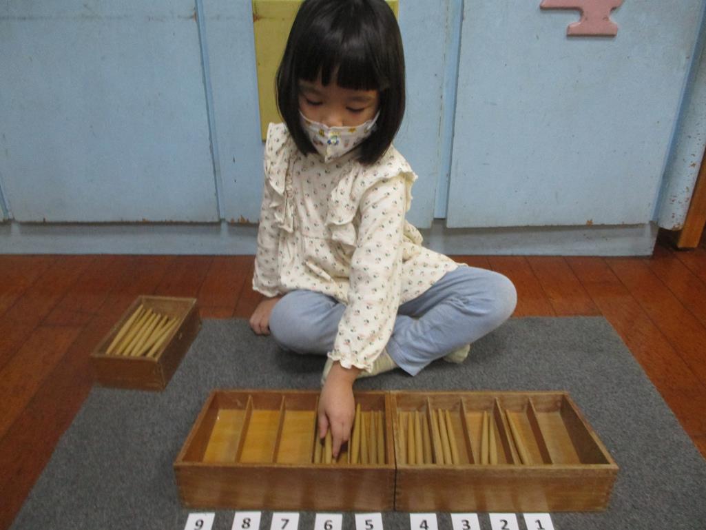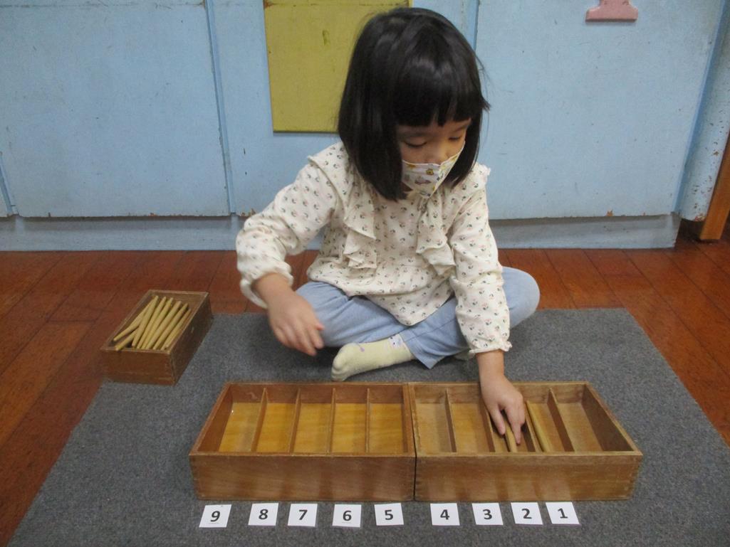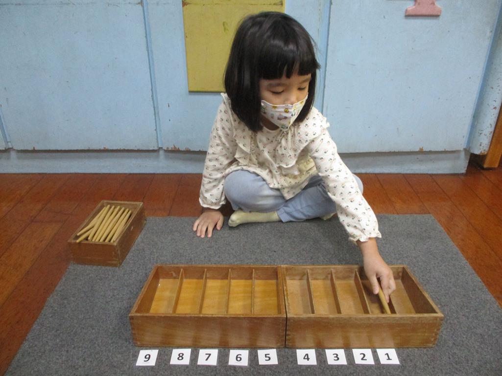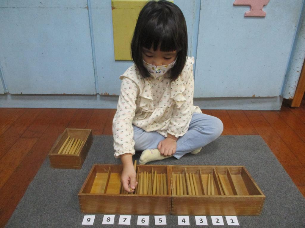 相簿名稱: 茉莉班-蒙特梭利教學(數學教育-紡錘棒箱 0~9)