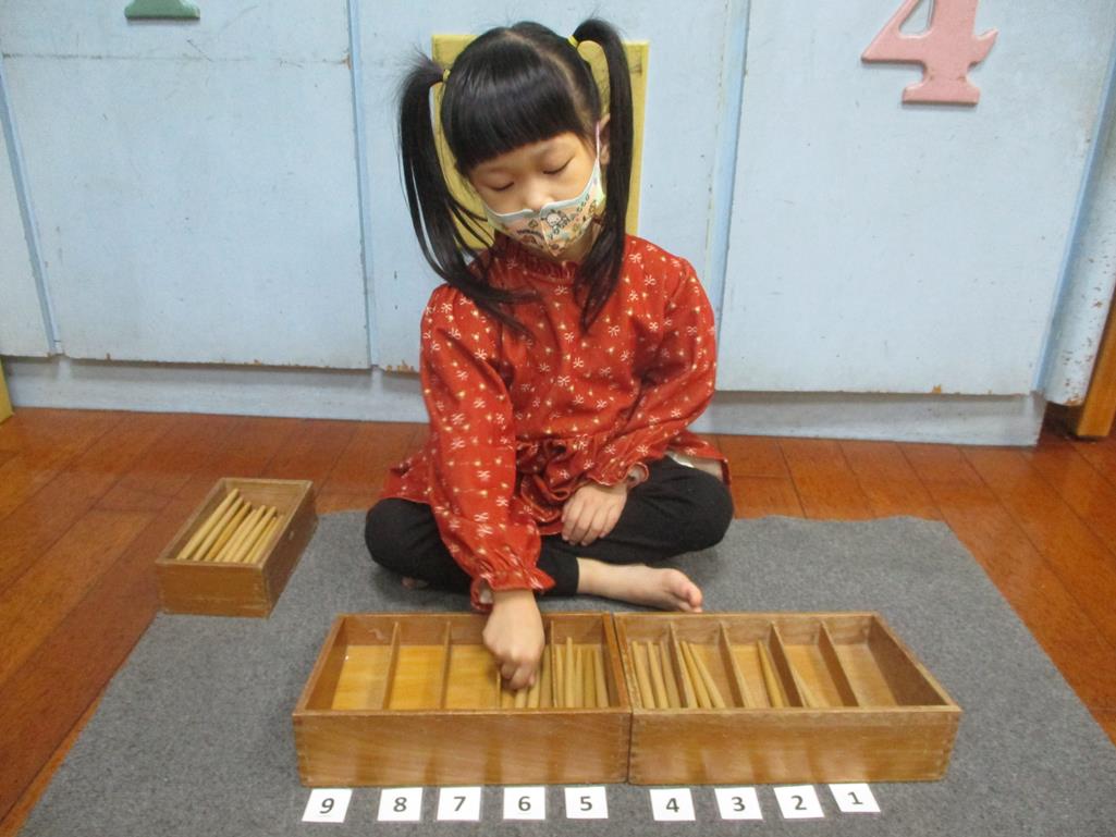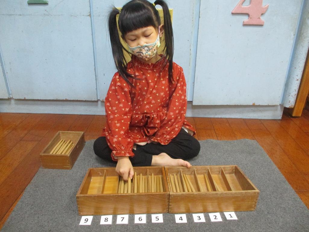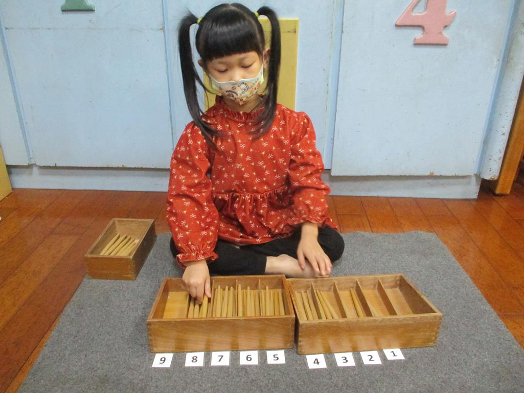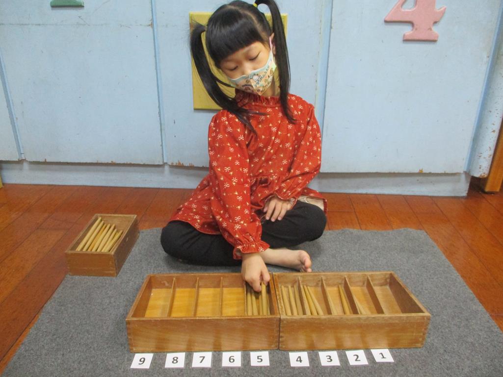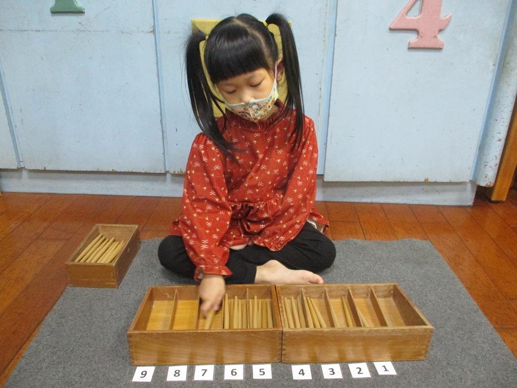 相簿名稱: 茉莉班-蒙特梭利教學(數學教育-紡錘棒箱 0~9)