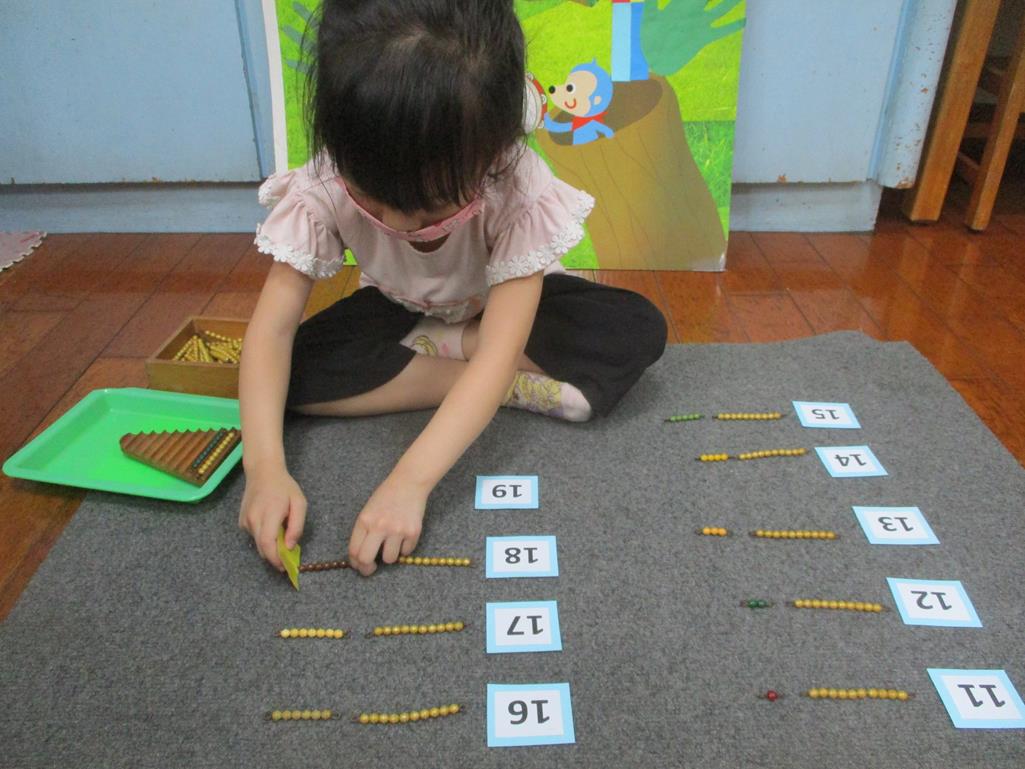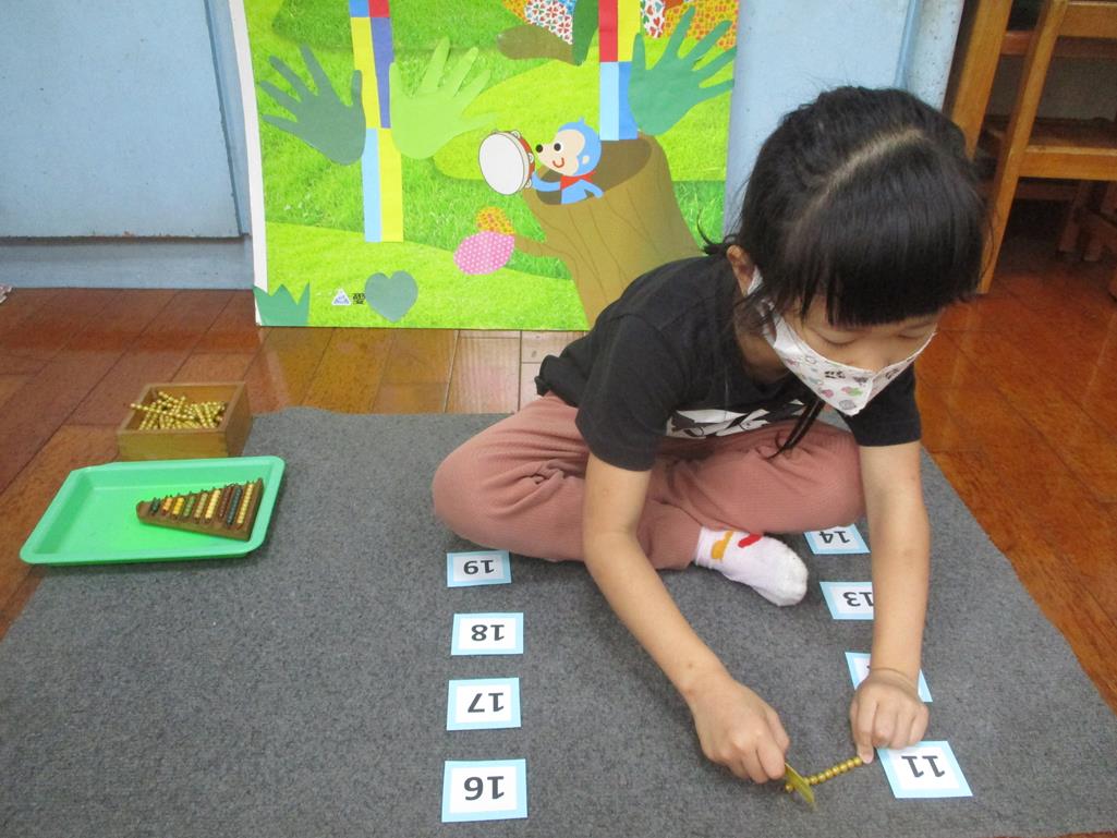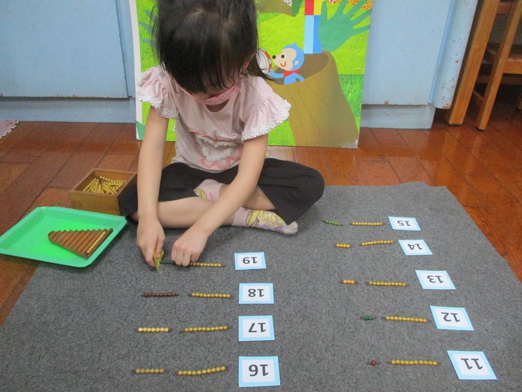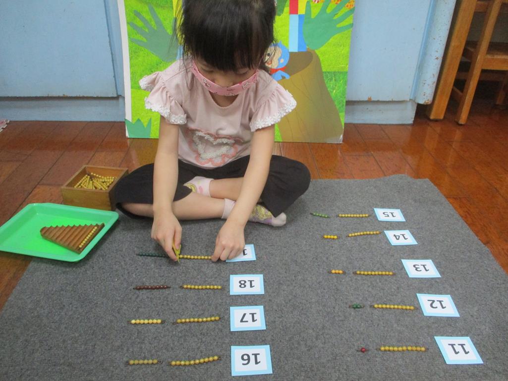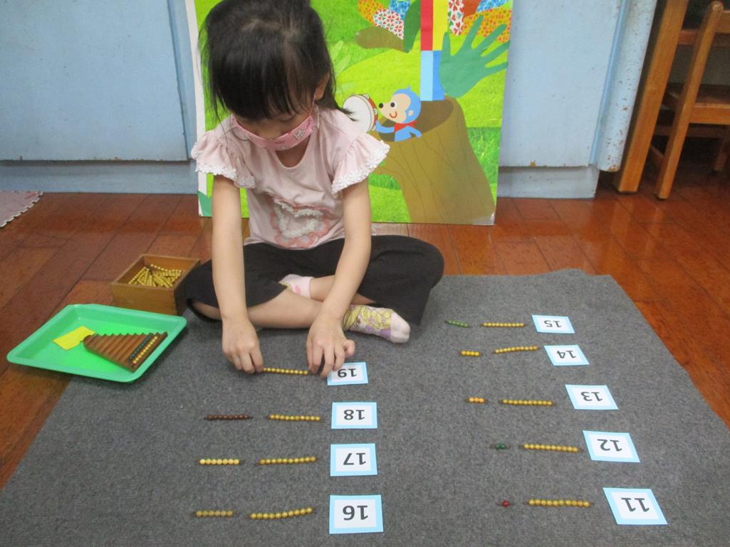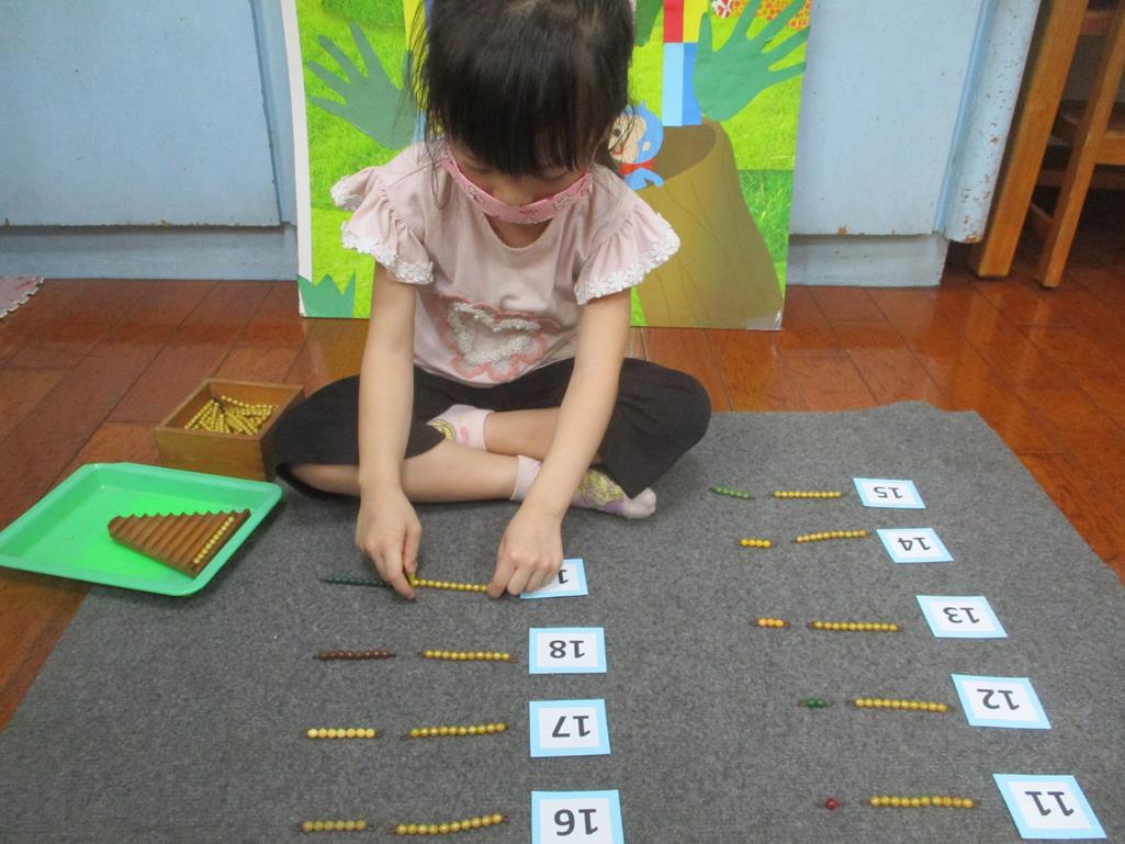 相簿名稱: 茉莉班-蒙特梭利教學(數學教育-彩色串珠11~19+字卡)
