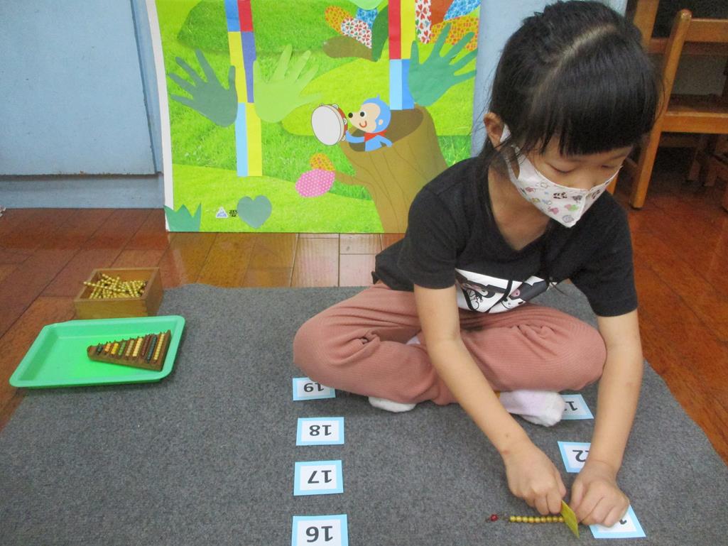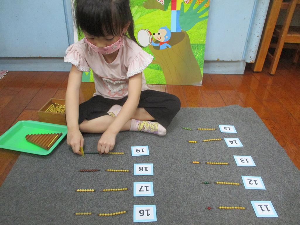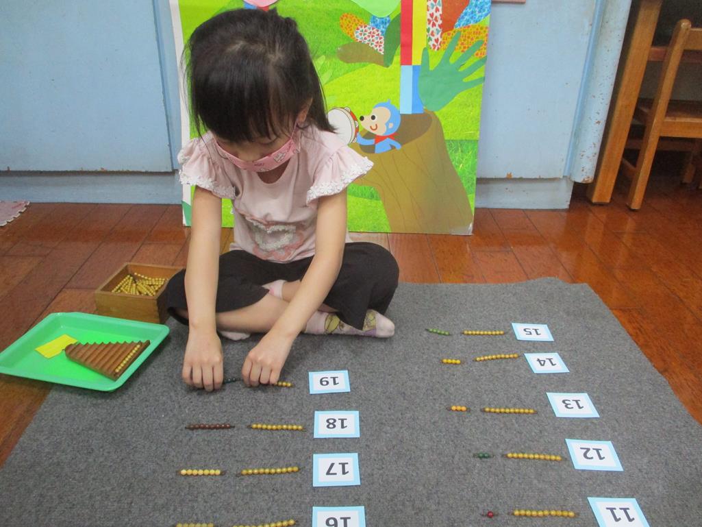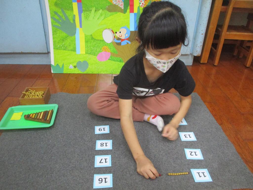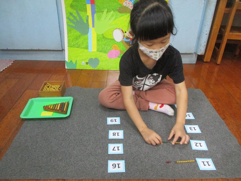 相簿名稱: 茉莉班-蒙特梭利教學(數學教育-彩色串珠11~19+字卡)