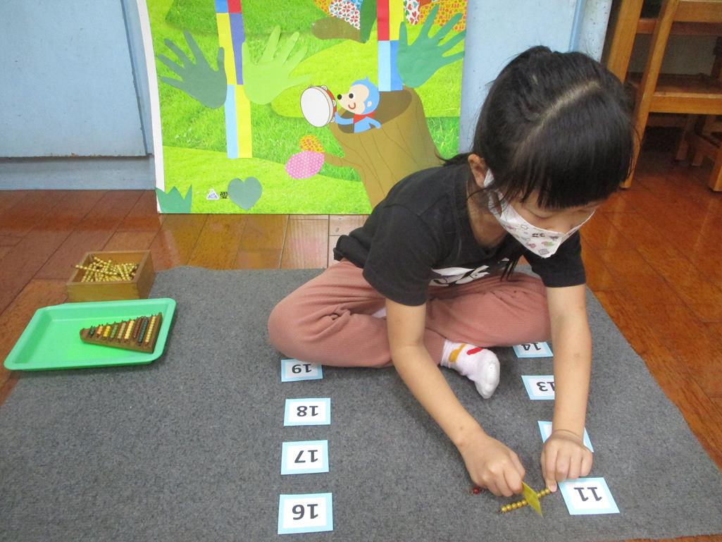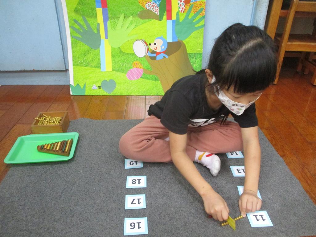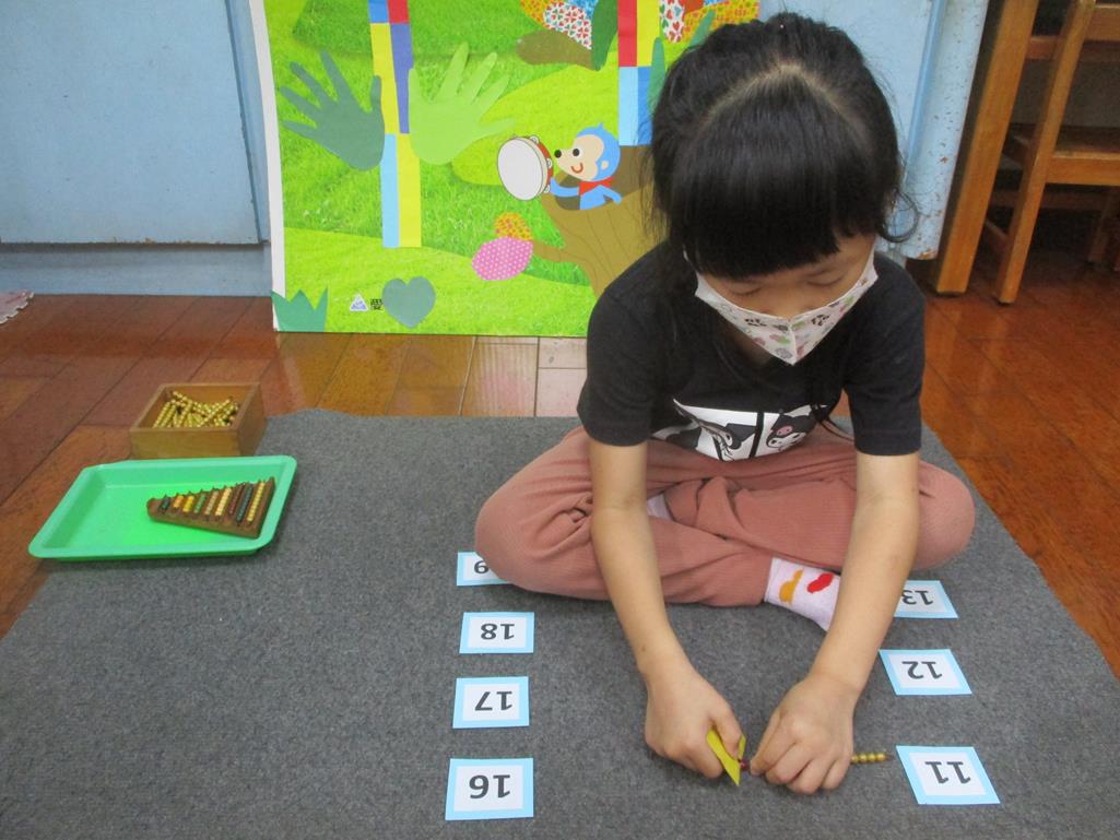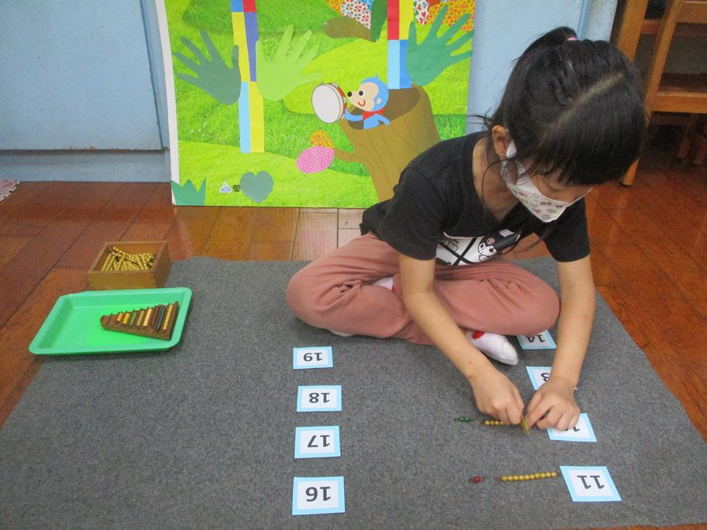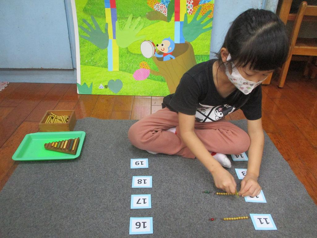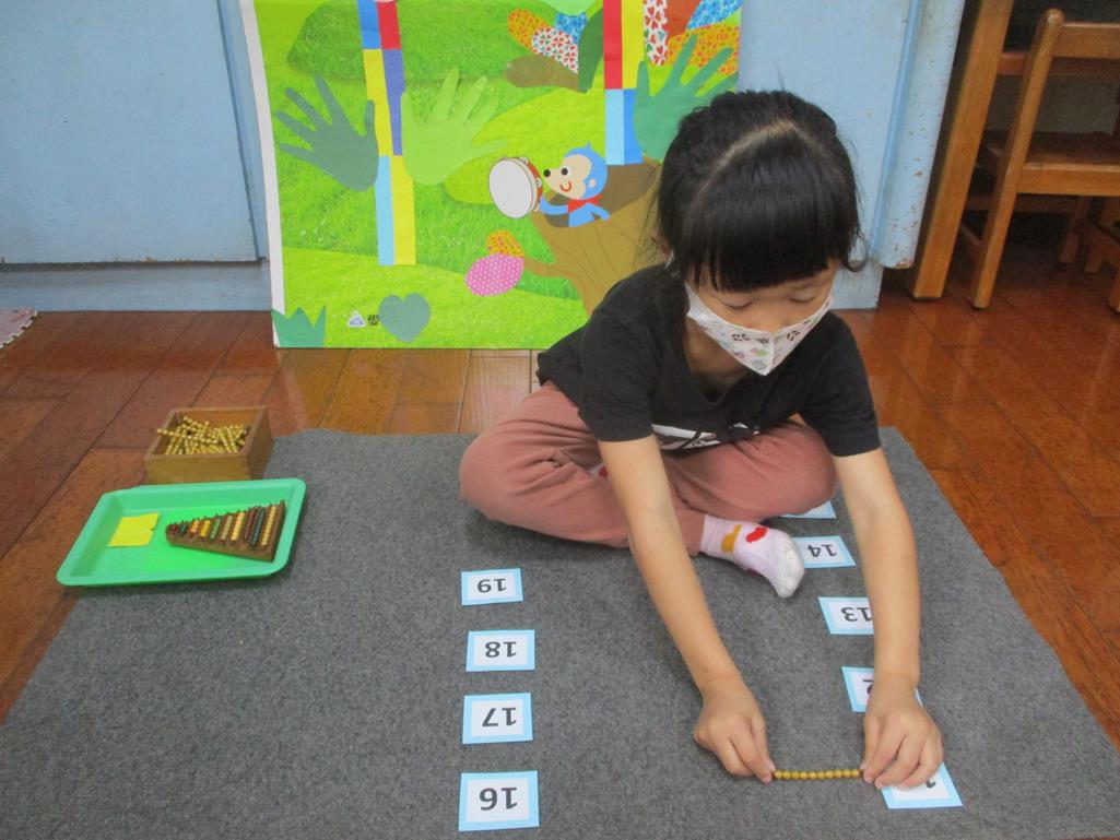 相簿名稱: 茉莉班-蒙特梭利教學(數學教育-彩色串珠11~19+字卡)