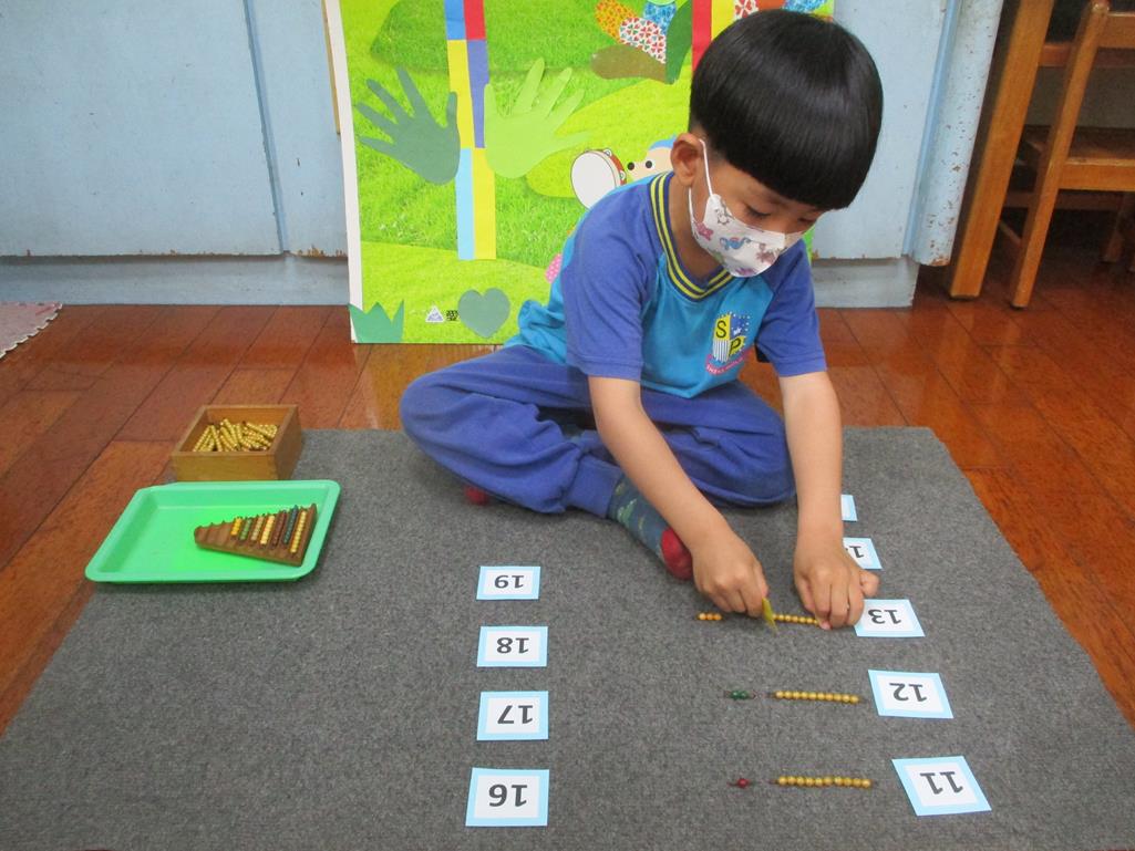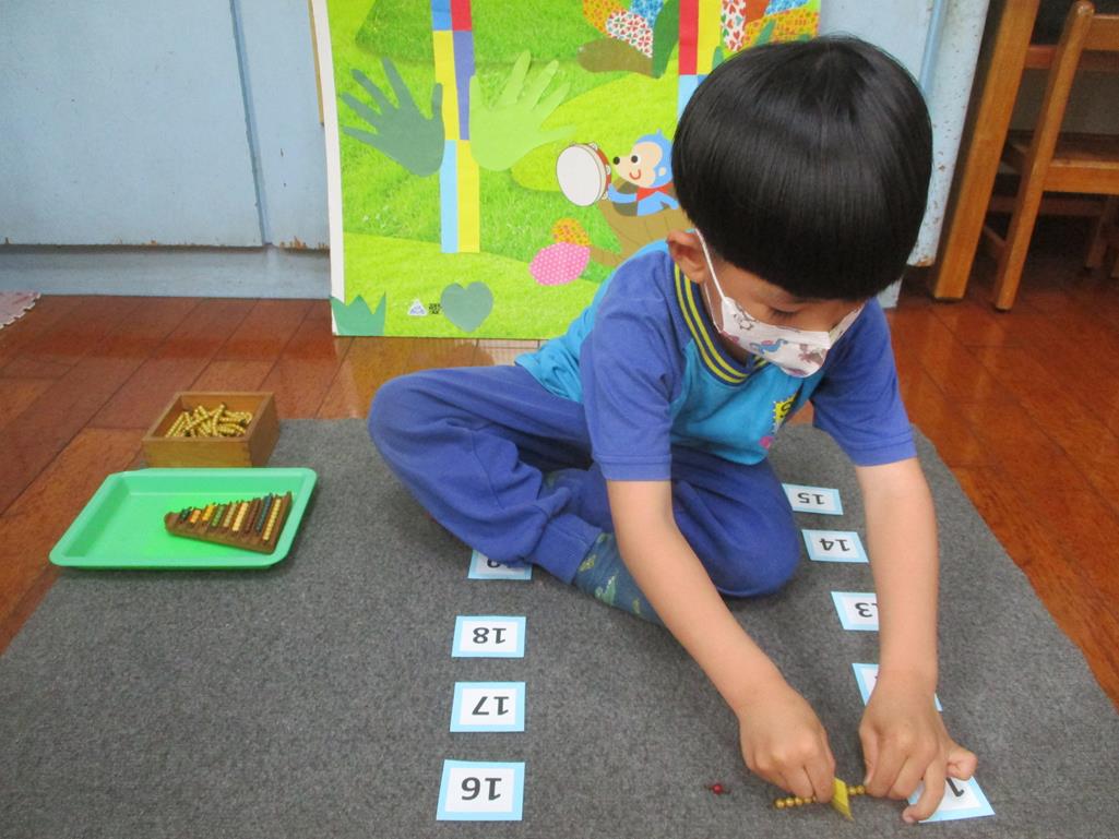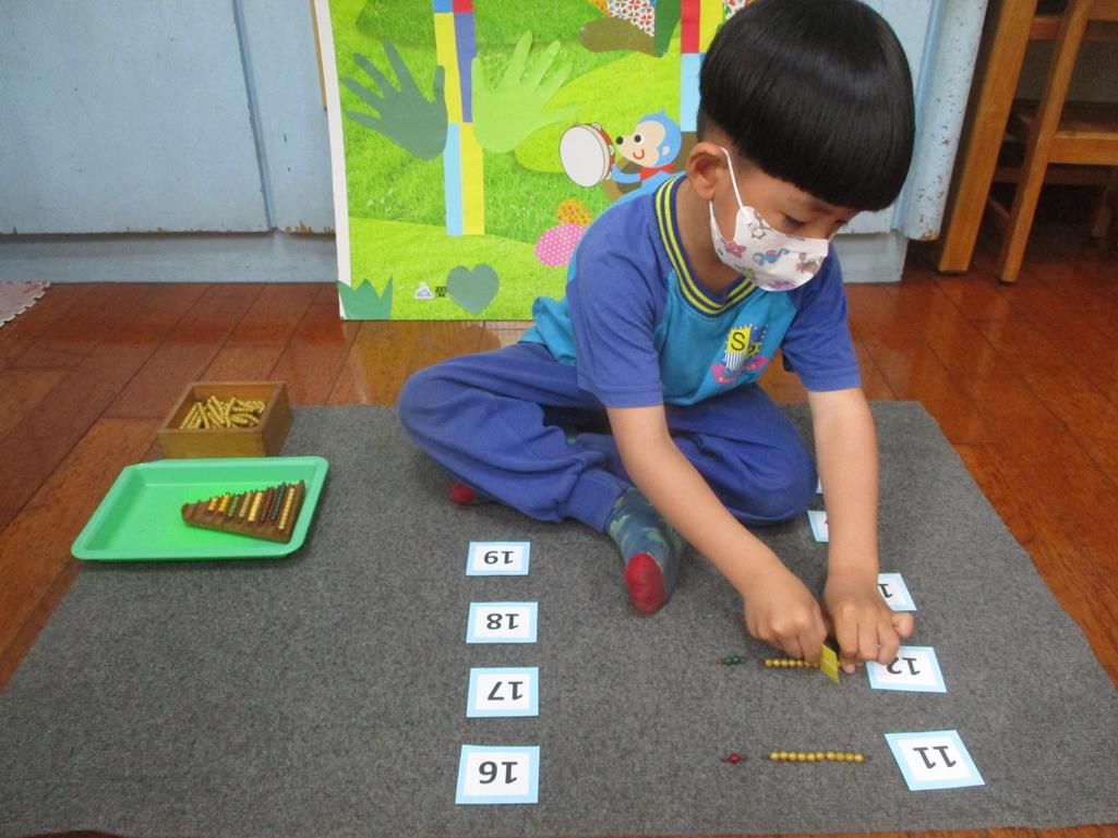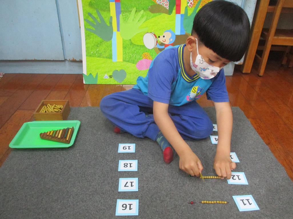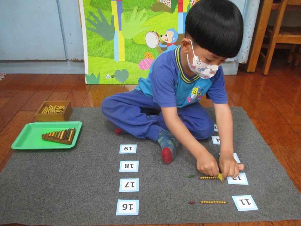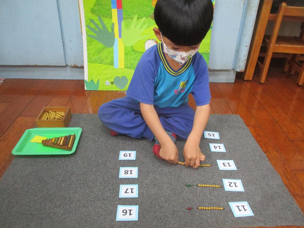 相簿名稱: 茉莉班-蒙特梭利教學(數學教育-彩色串珠11~19+字卡)