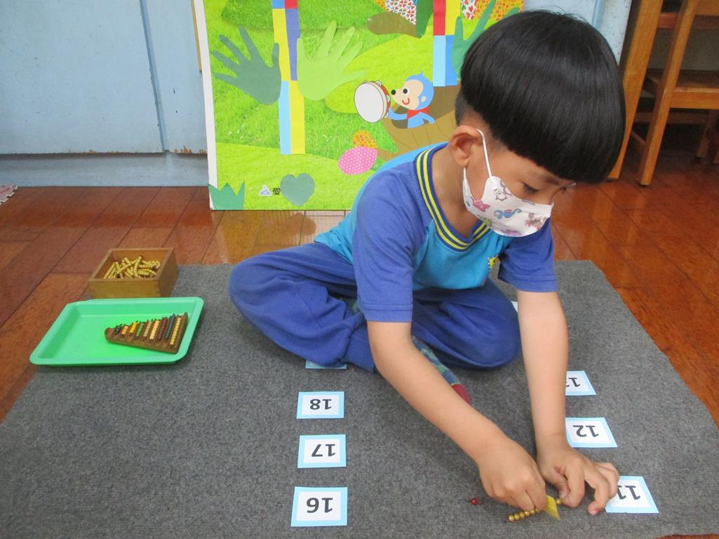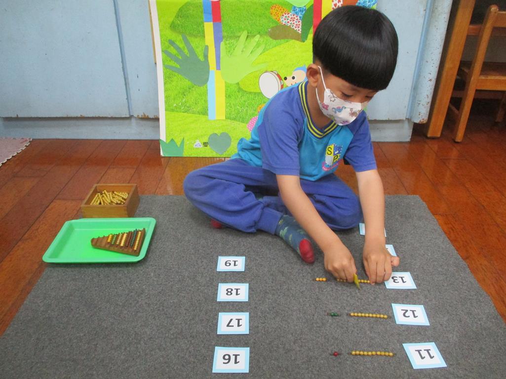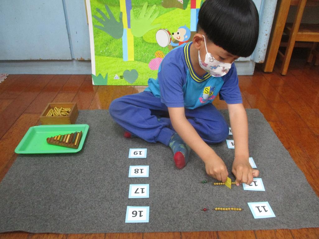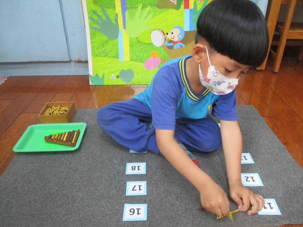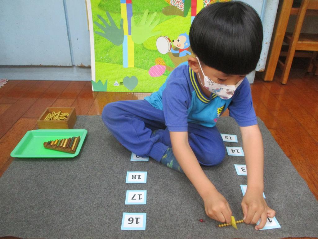 相簿名稱: 茉莉班-蒙特梭利教學(數學教育-彩色串珠11~19+字卡)
