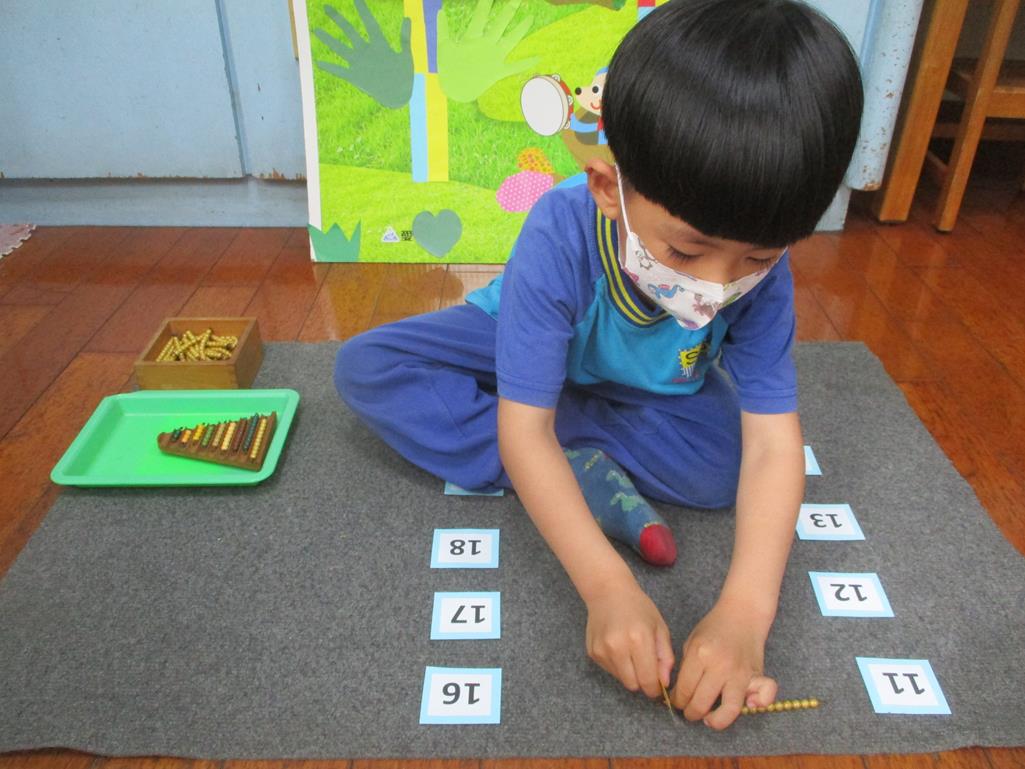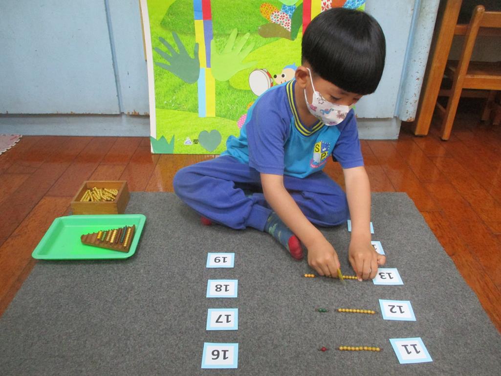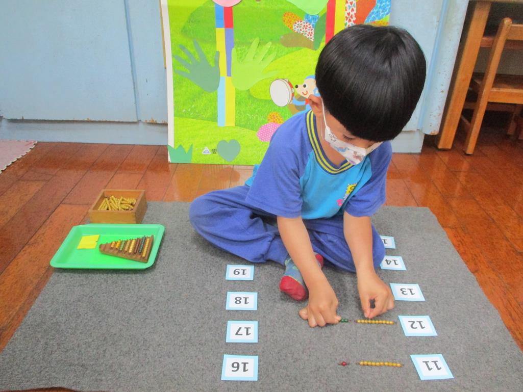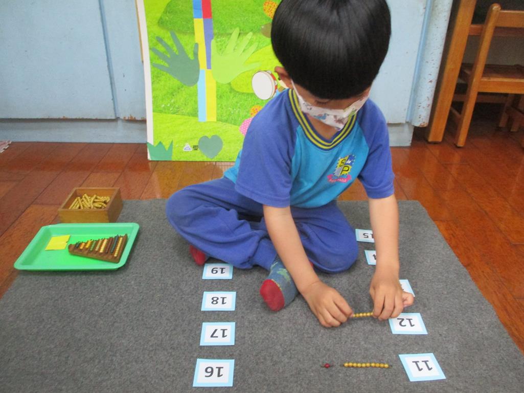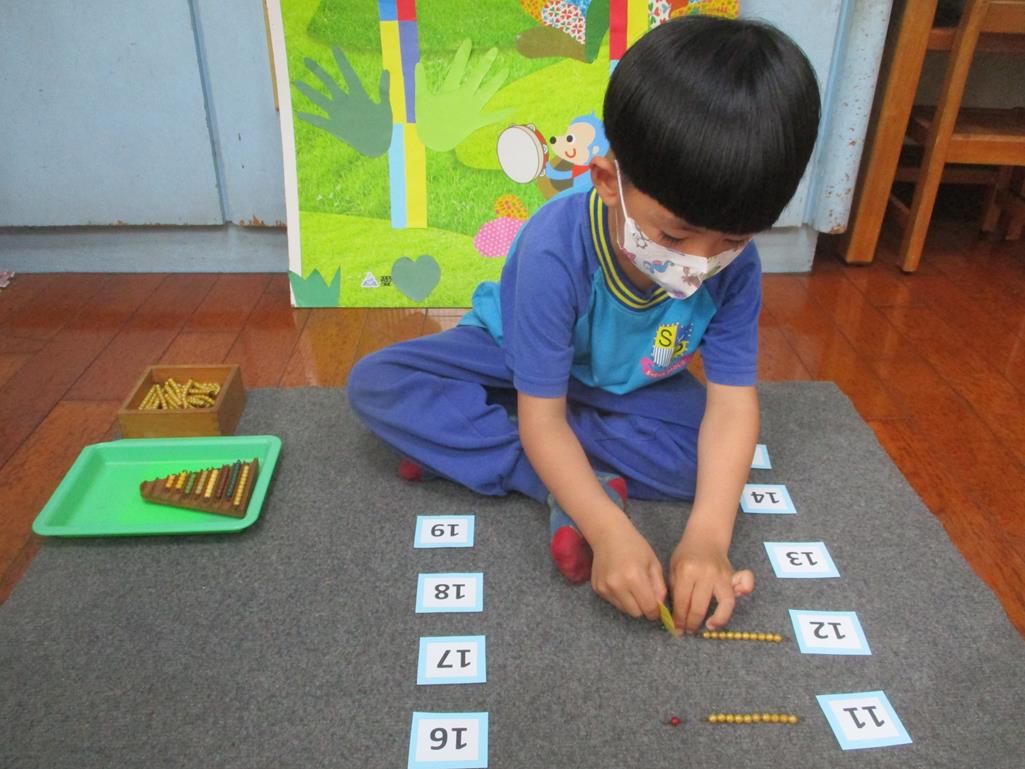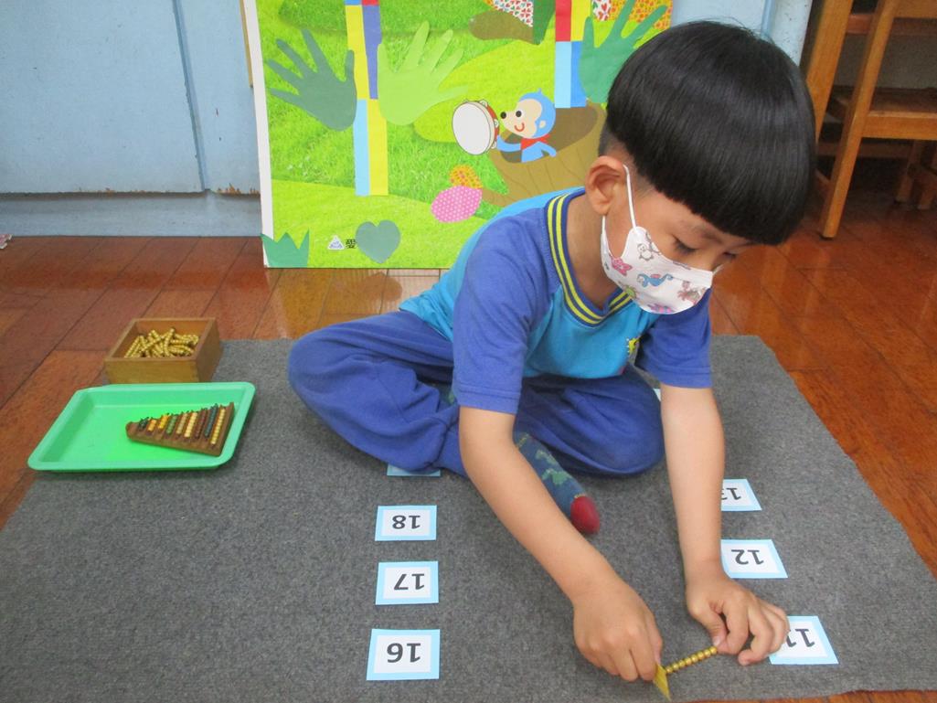 相簿名稱: 茉莉班-蒙特梭利教學(數學教育-彩色串珠11~19+字卡)