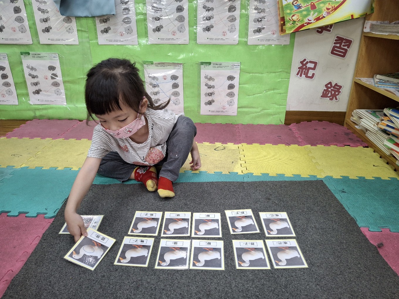 相簿名稱: 櫻花班-蒙特梭利教學【感官教育-鴨的部位圖卡配對】