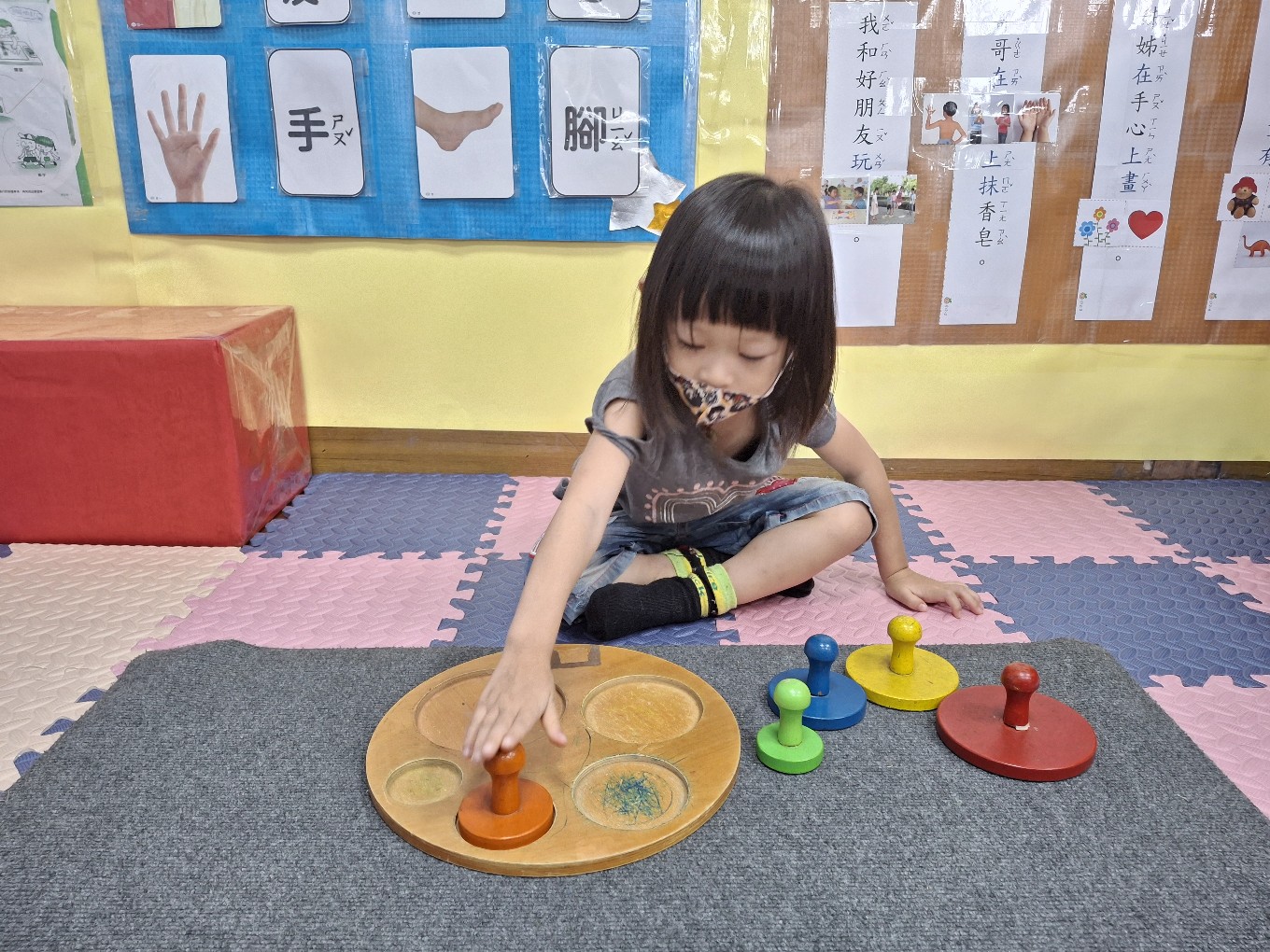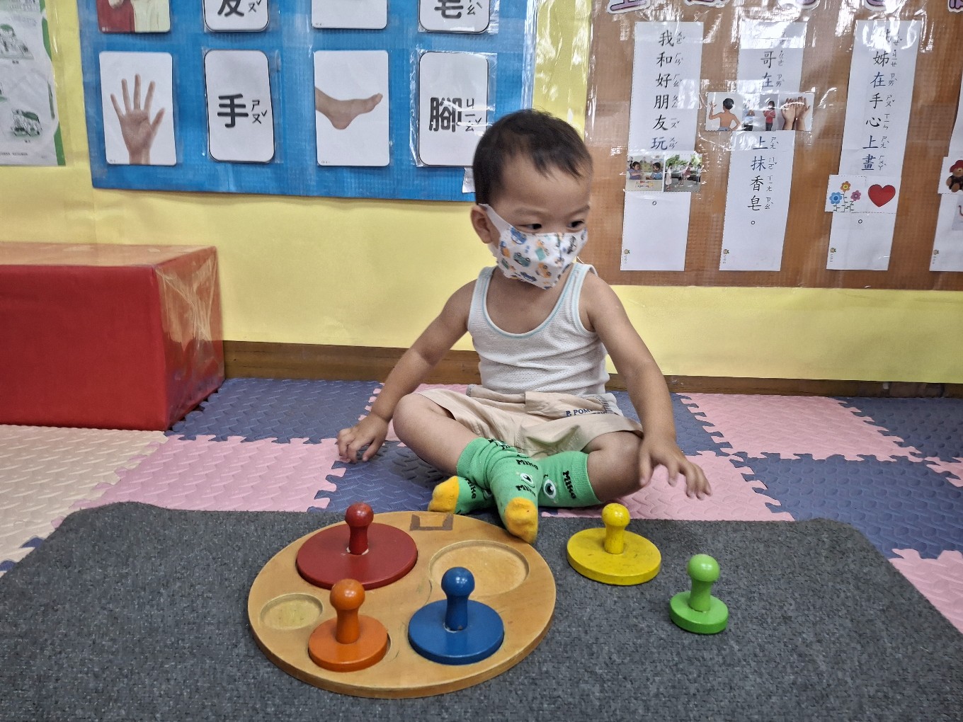 相簿名稱: 草莓班-蒙特梭利教學【感官教育-簡易有柄拼圖(圓形)】