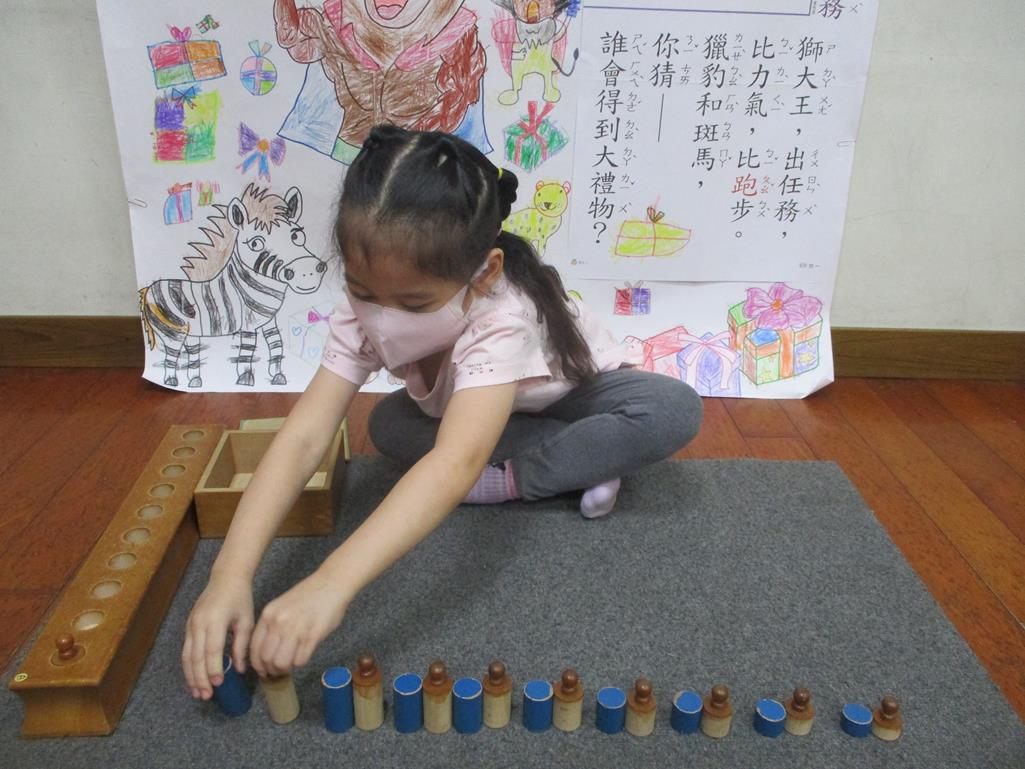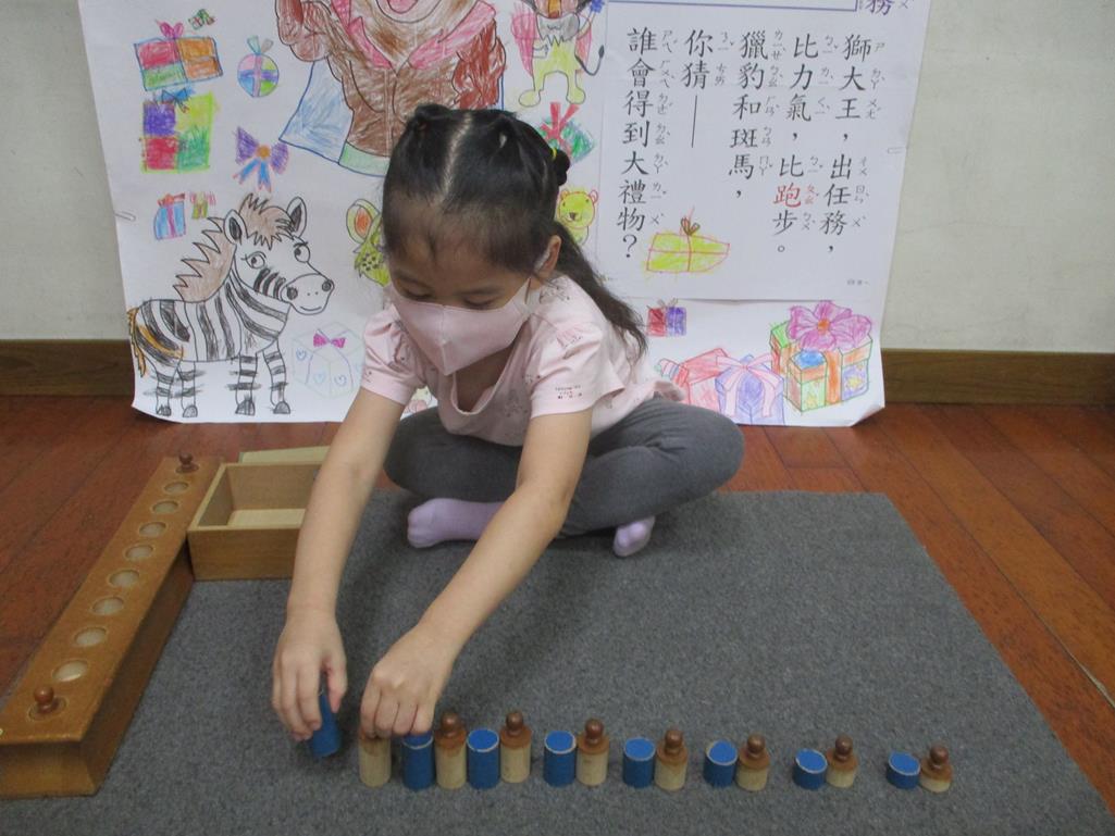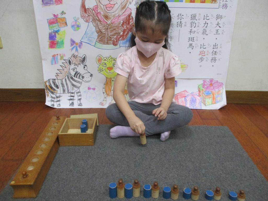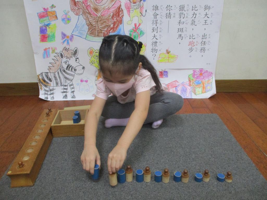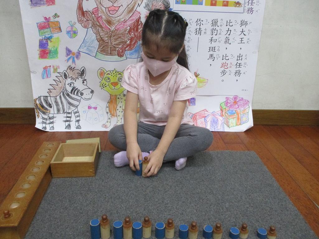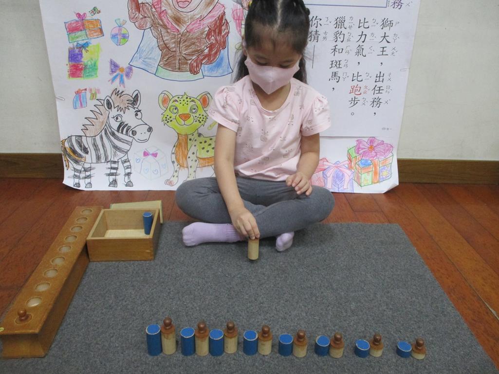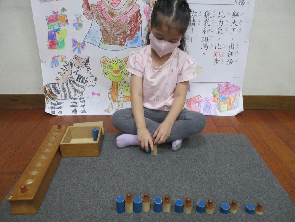 相簿名稱: 茉莉班-蒙特梭利教學(數學教育-藍色圖柱+有柄圓柱)