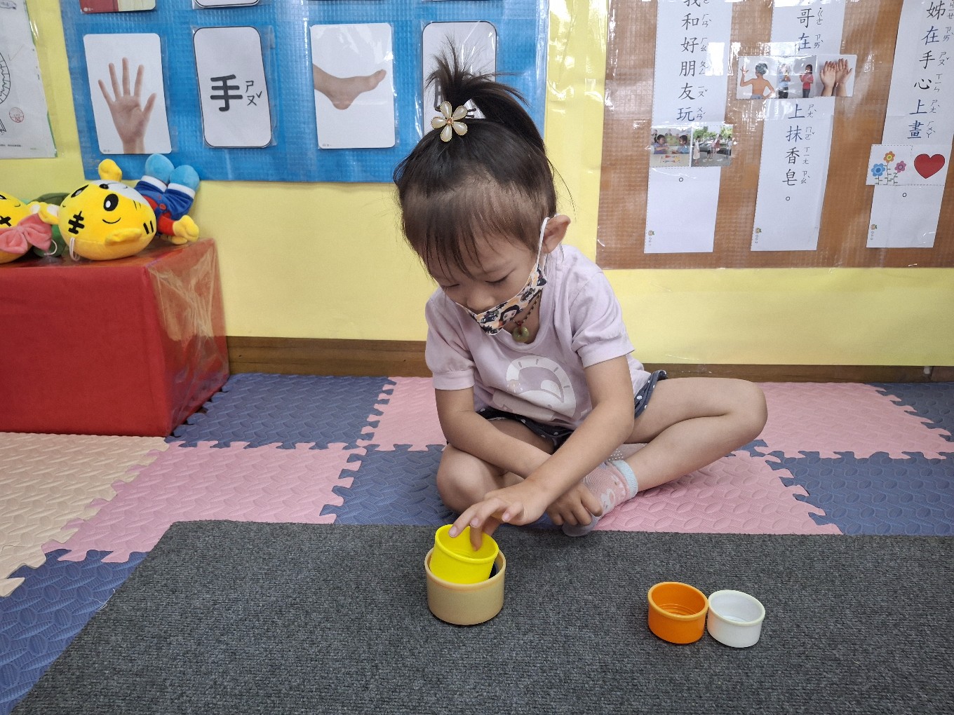 相簿名稱: 草莓班-蒙特梭利教育【感官教育-形狀套筒(圓形)】