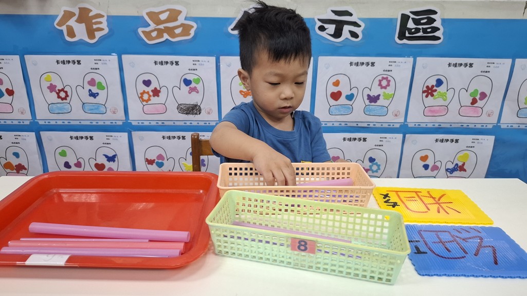 相簿名稱: 葡萄班-蒙特梭利教學(數學教育-粗細吸管分類)