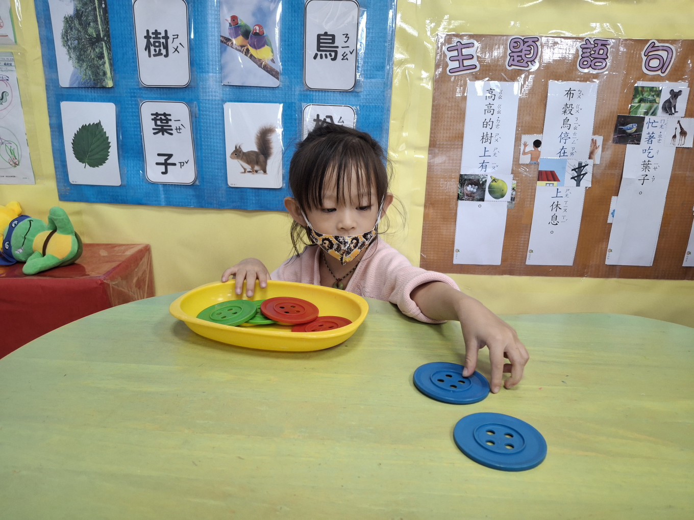 相簿名稱: 草莓班-蒙特梭利教育【感官教育(彩色鈕釦配對)】