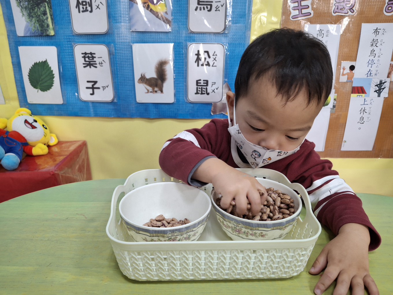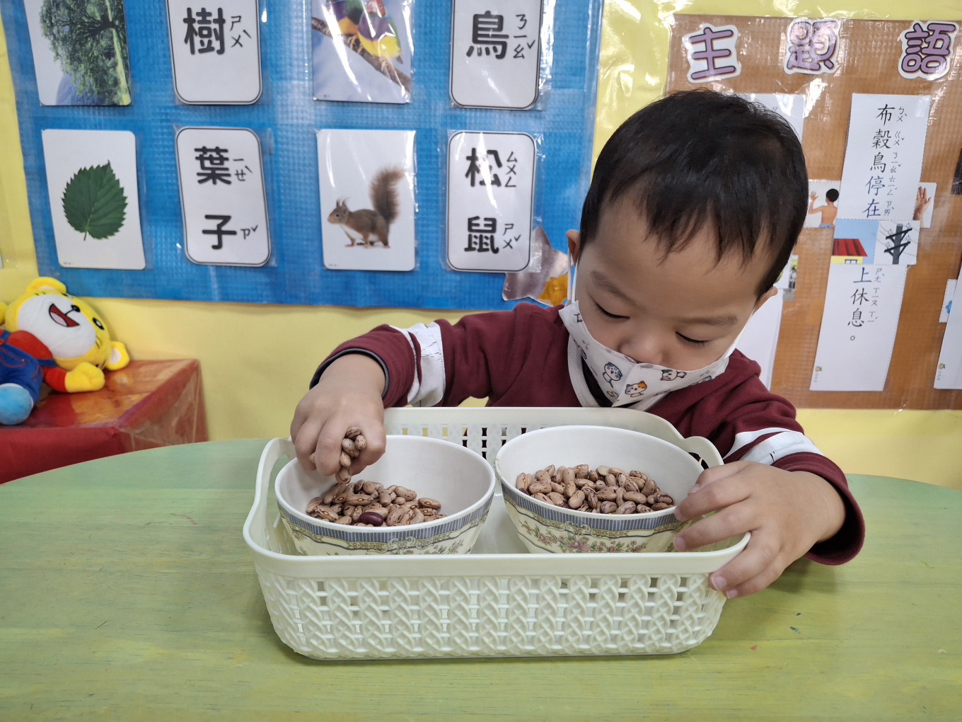 相簿名稱: 草莓班-蒙特梭利教學【日常生活教育-五指抓大豆(花豆)】