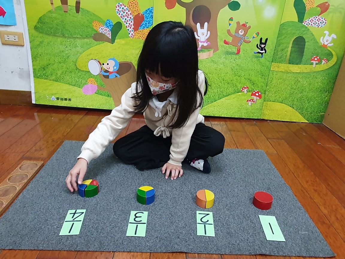 相簿名稱: 向日葵班-蒙特梭利教學(數學教育-分數板+分數卡)