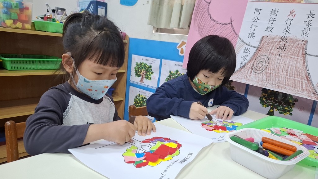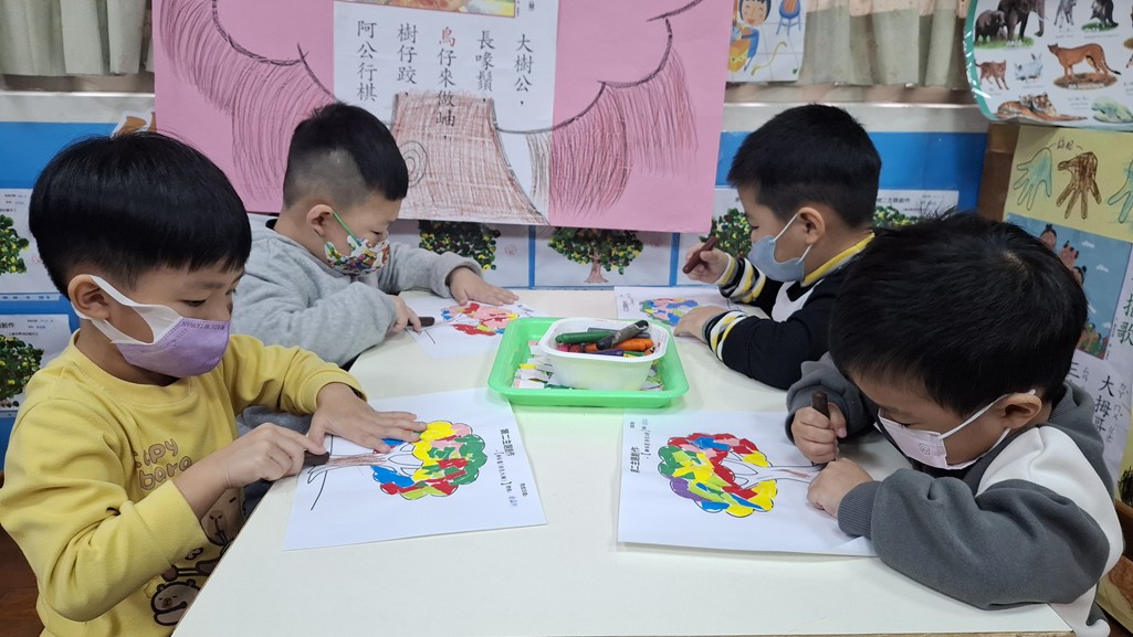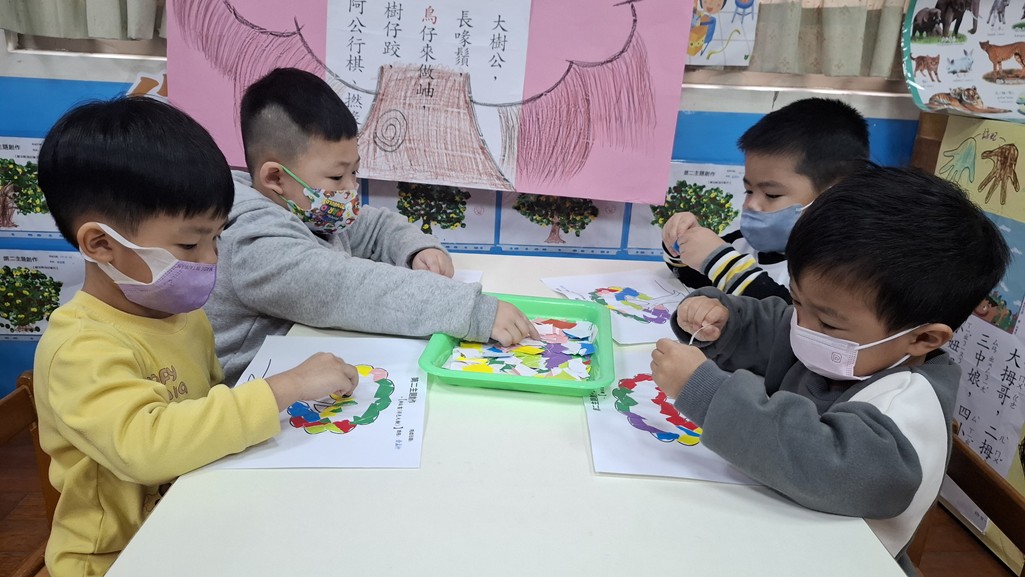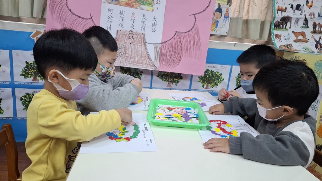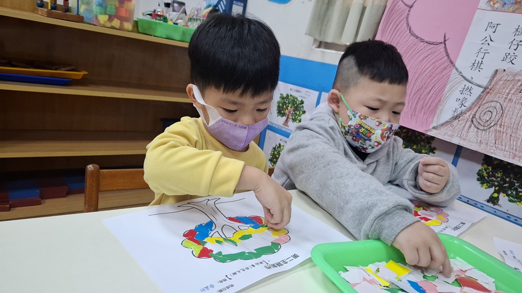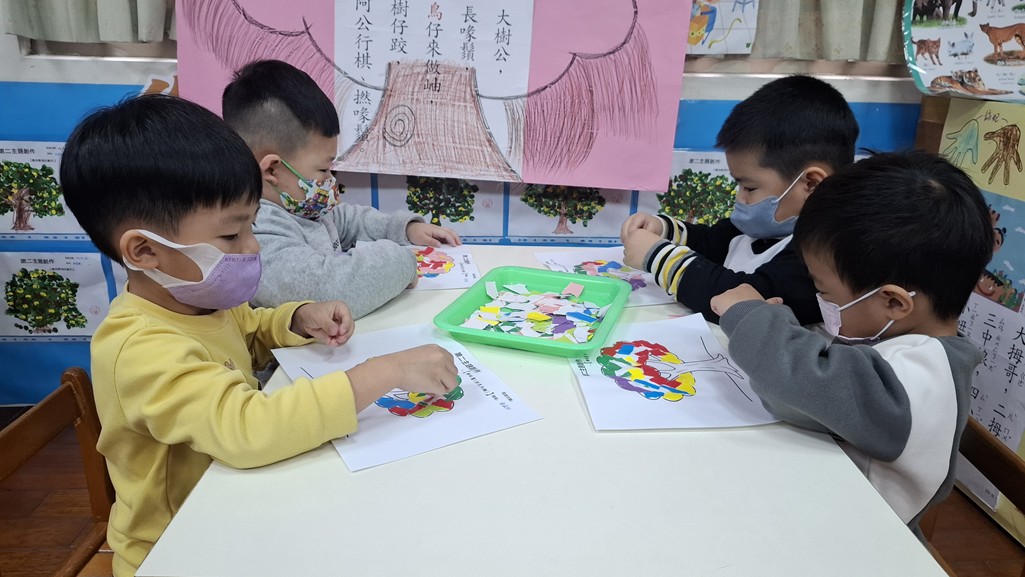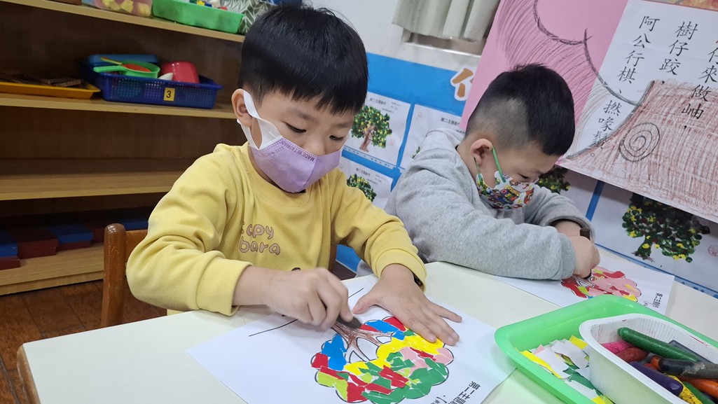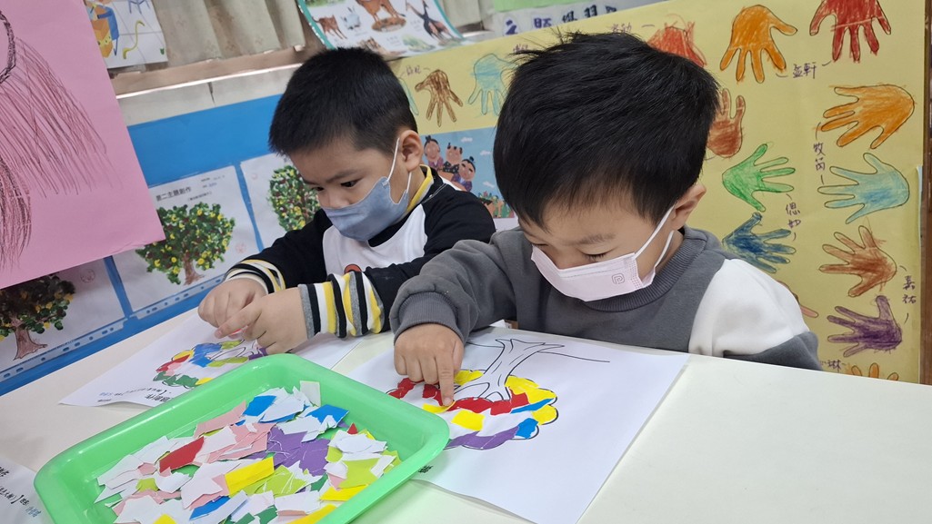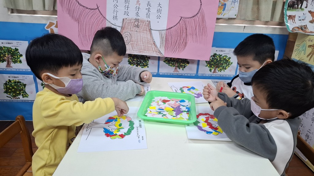 相簿名稱: 葡萄班-主題活動(藝術與人文創作-撕貼畫-彩色大樹)