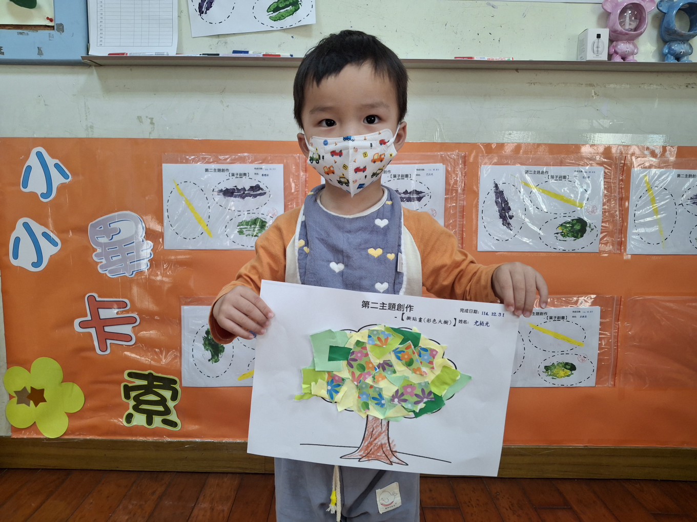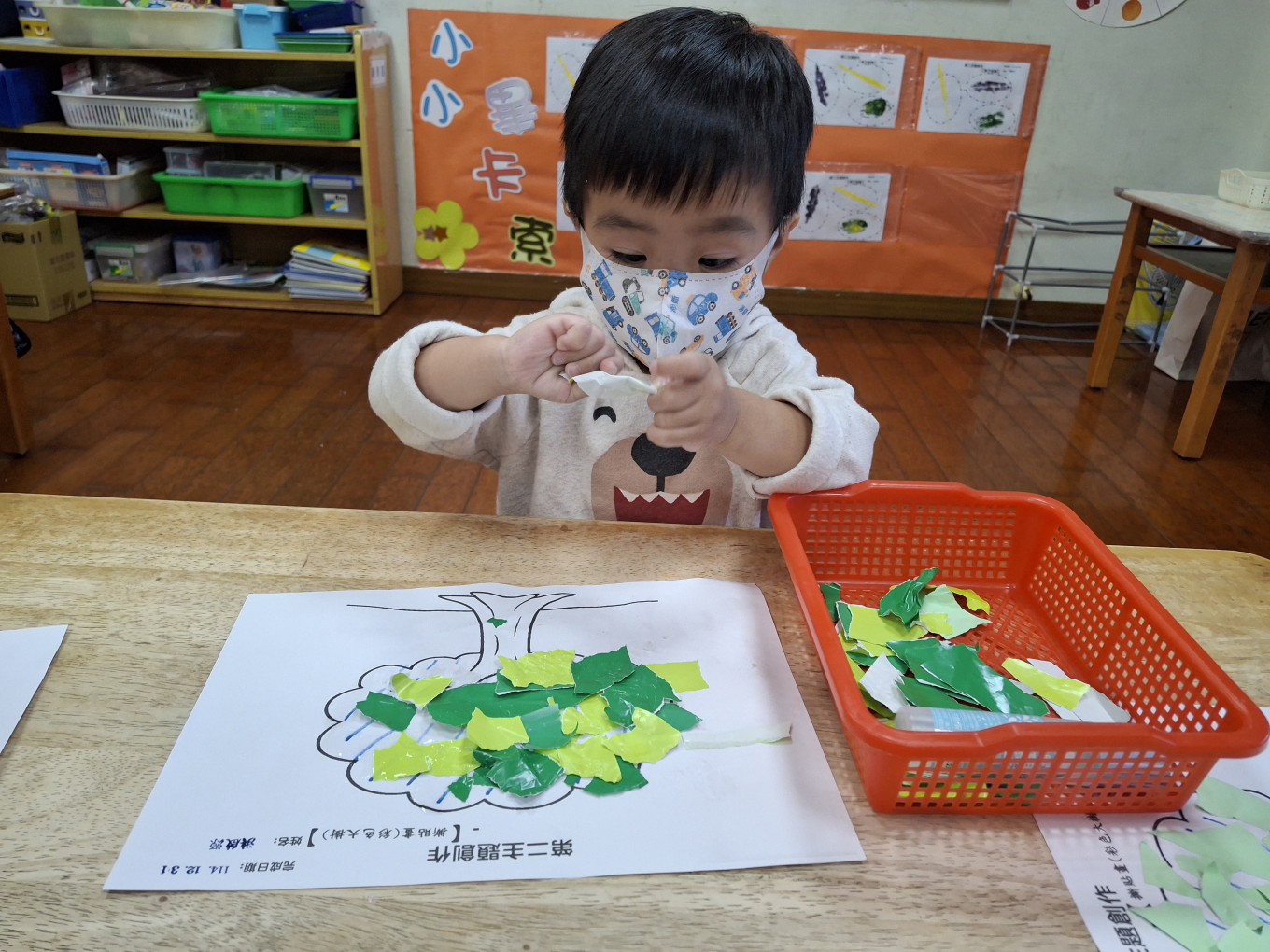 相簿名稱: 草莓班-主題美感創作【葉子撕貼畫(彩色大樹)】