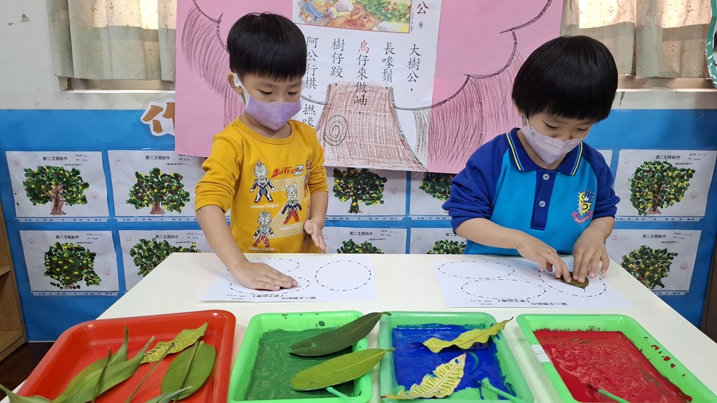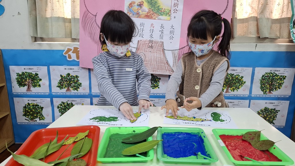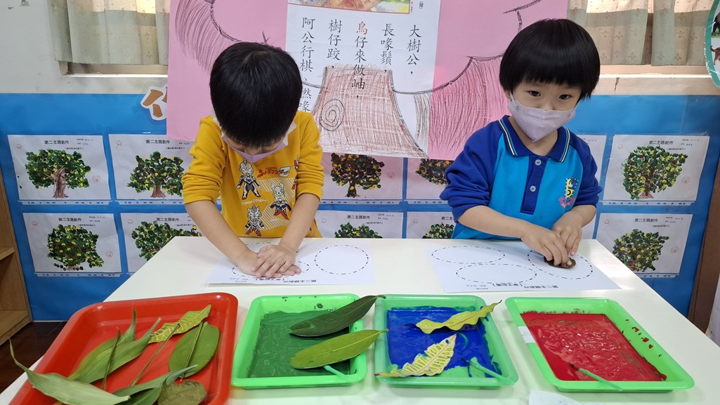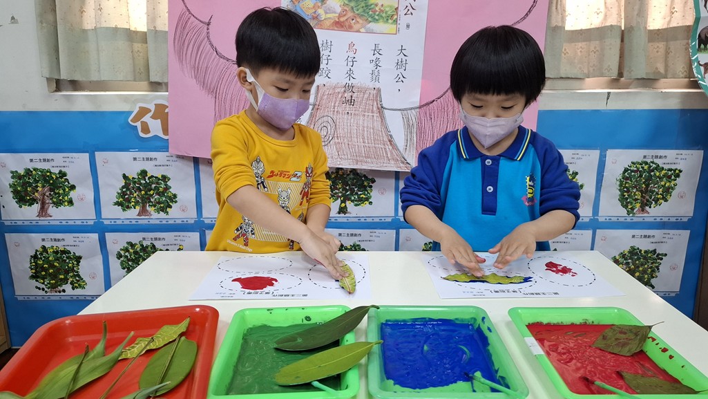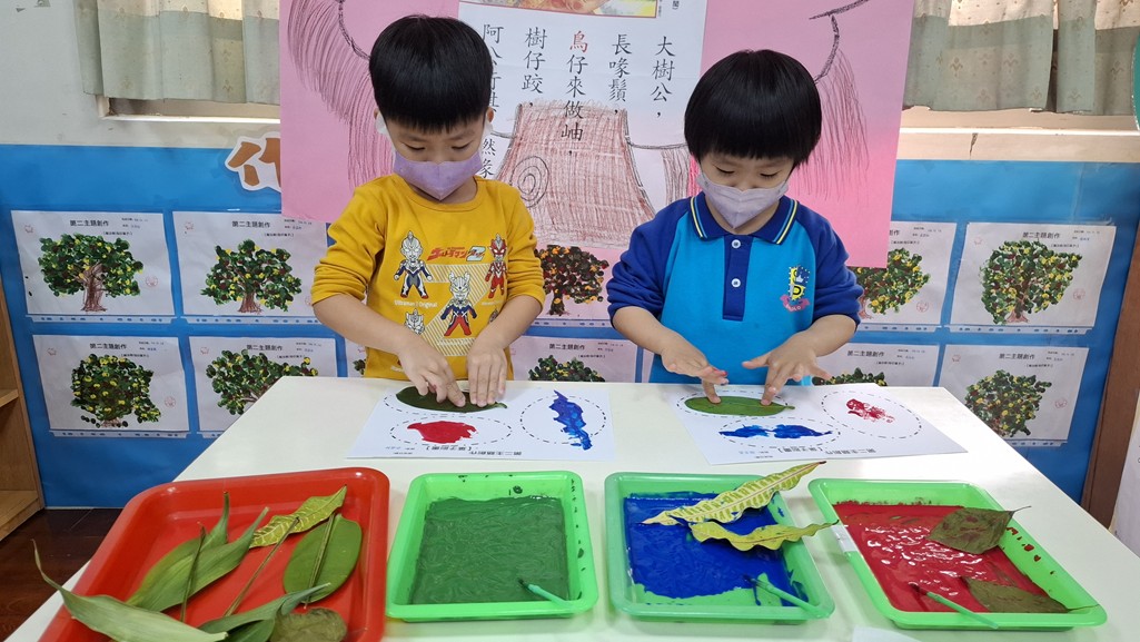 相簿名稱: 葡萄班-主題活動(藝術與人文創作-葉子刷畫)