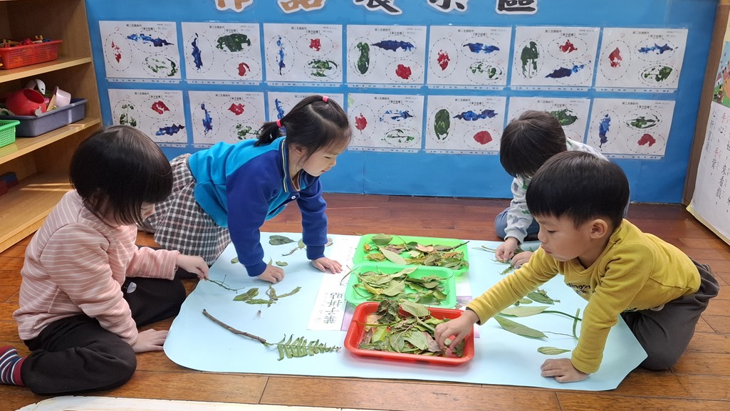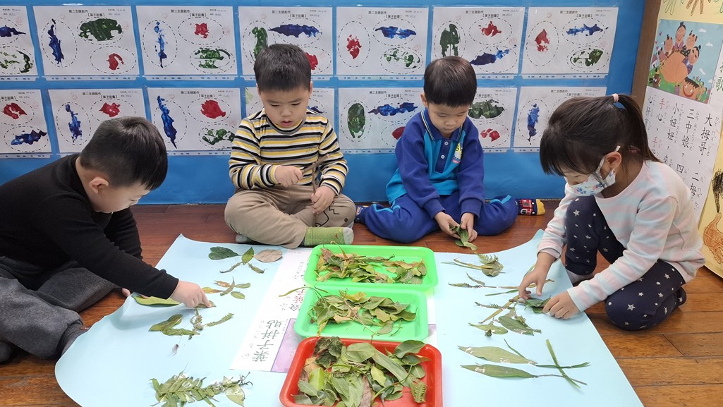 相簿名稱: 葡萄班-主題活動(主題兒歌海報創作-葉子拼貼)
