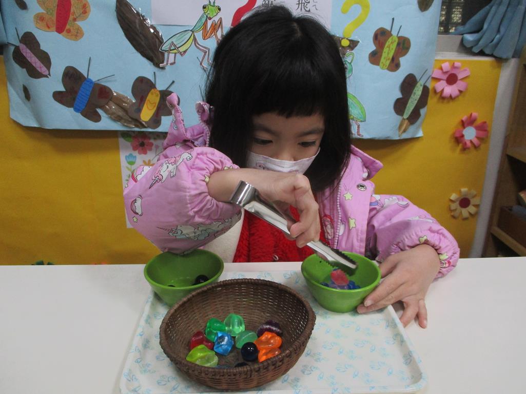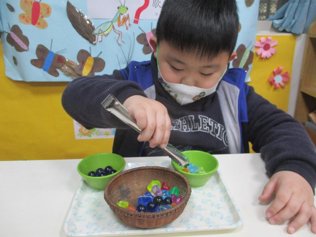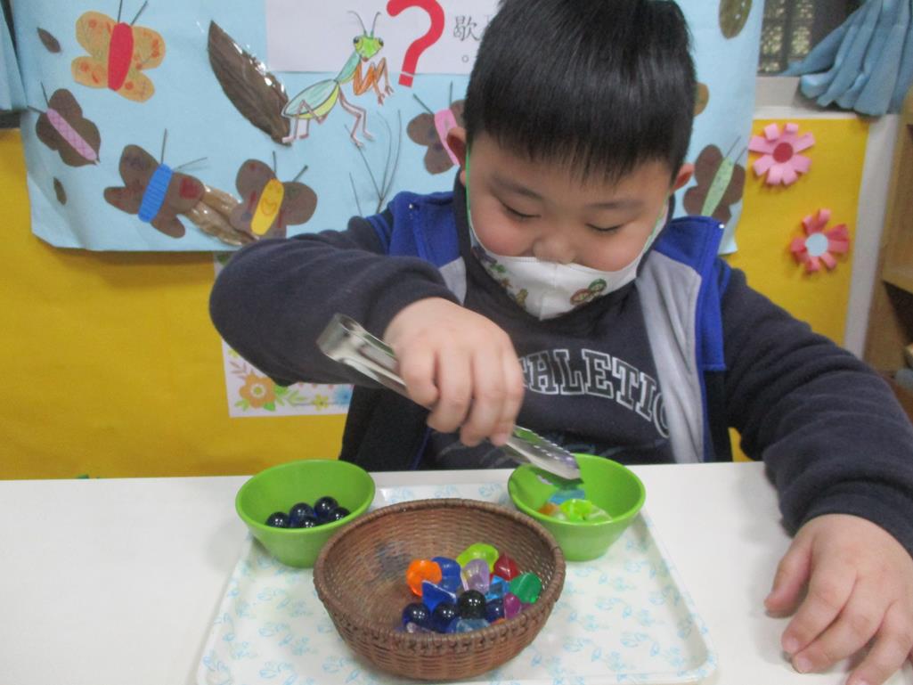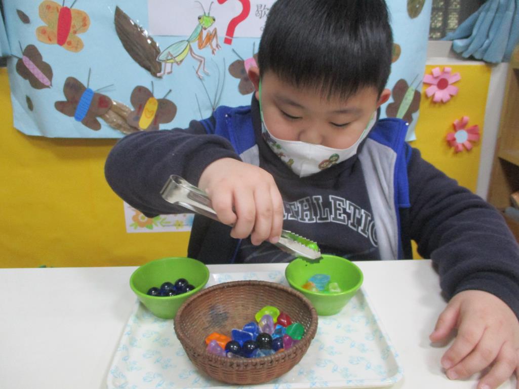相簿名稱: 茉莉班-蒙特梭利教學(日常生活教育-夾彈珠分類)