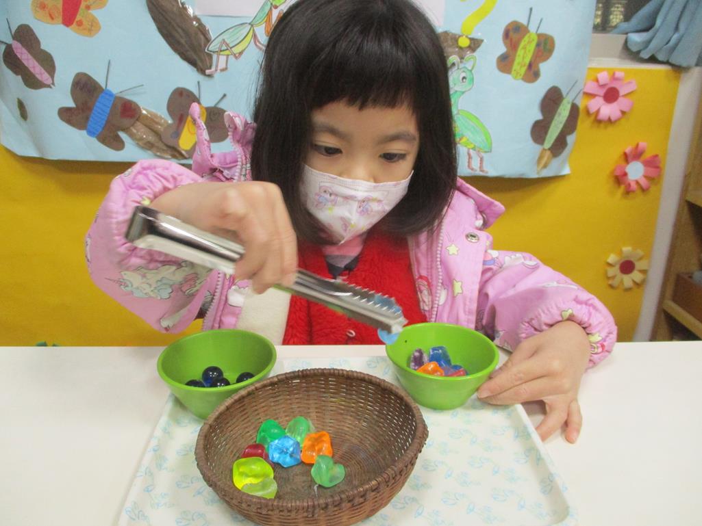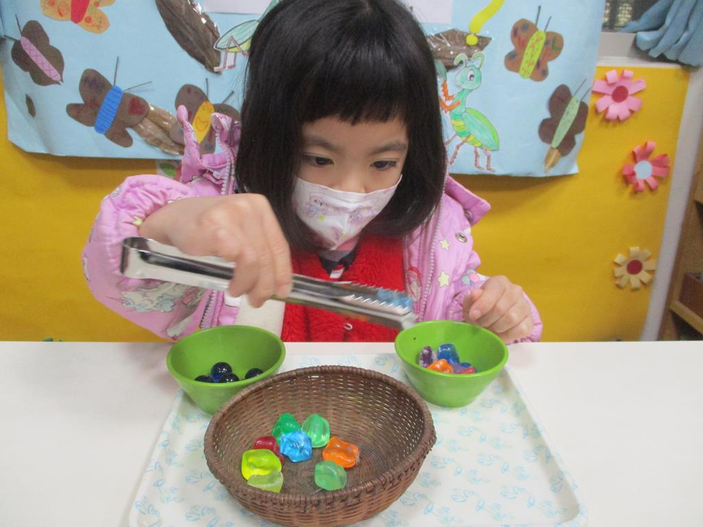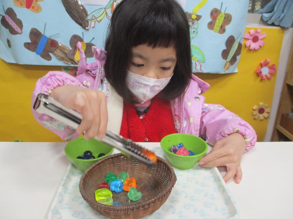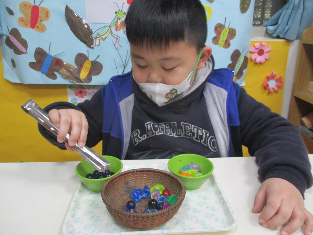 相簿名稱: 茉莉班-蒙特梭利教學(日常生活教育-夾彈珠分類)