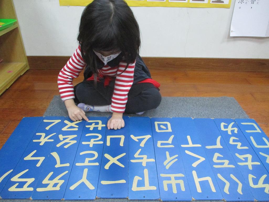 相簿名稱: 茉莉班-蒙特梭利教學(感官教育-注音符號描線板(長條))