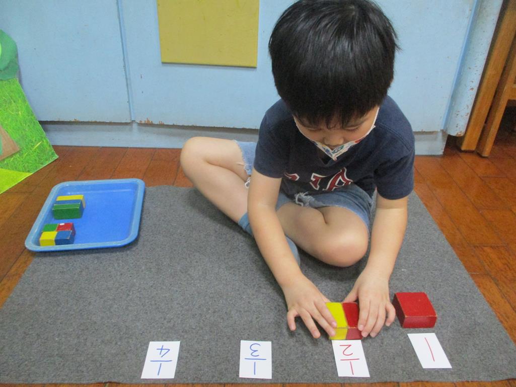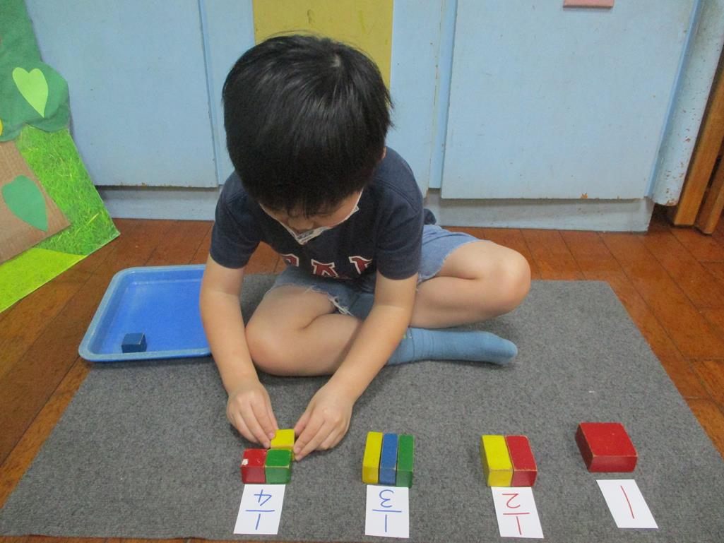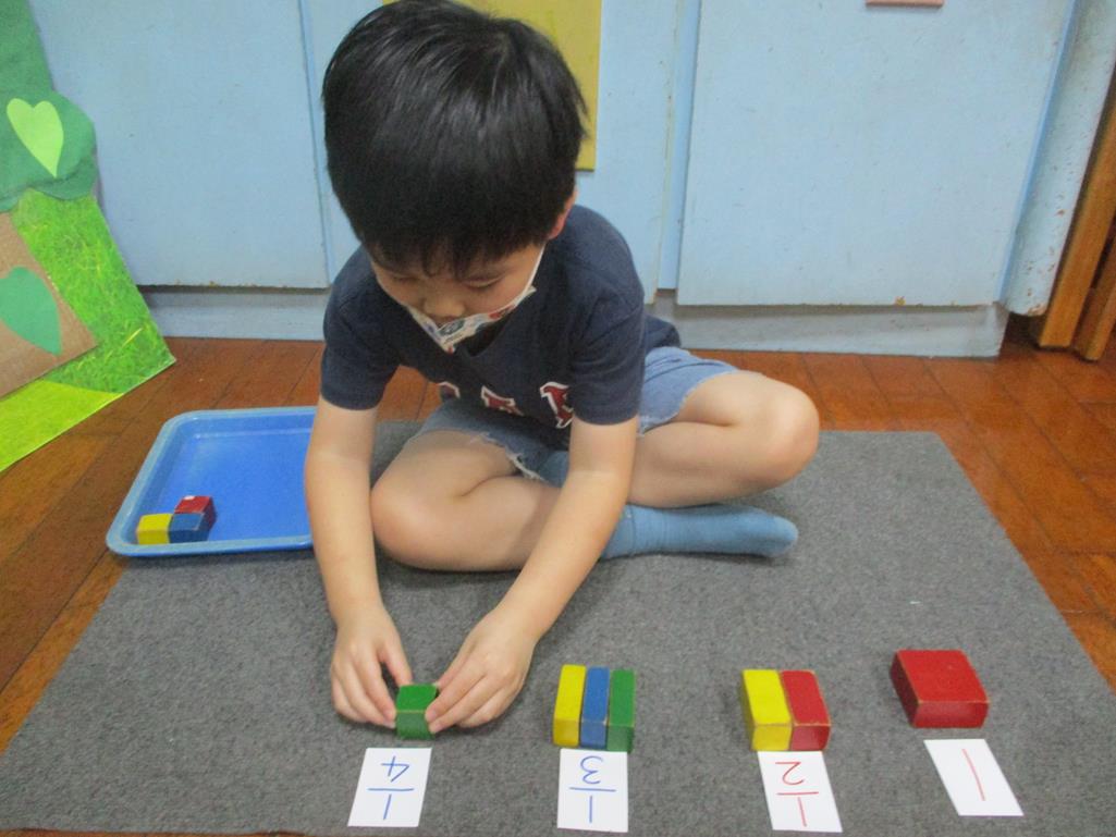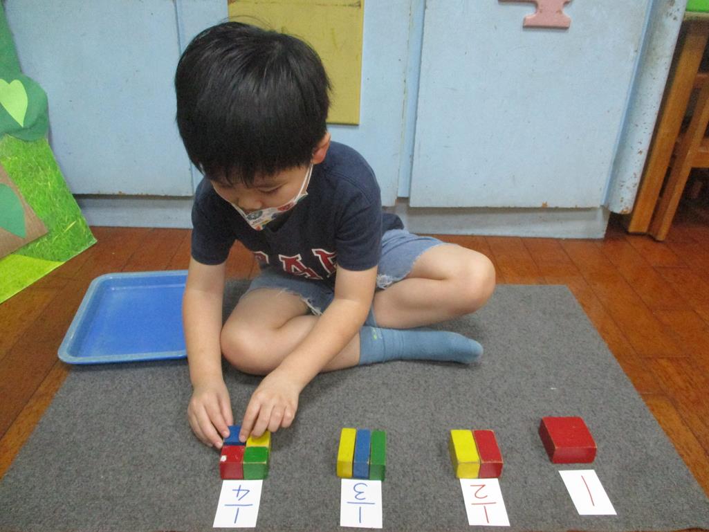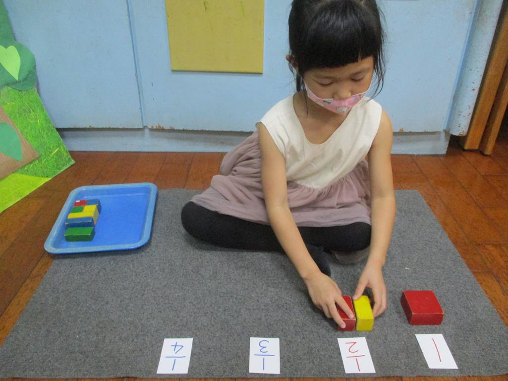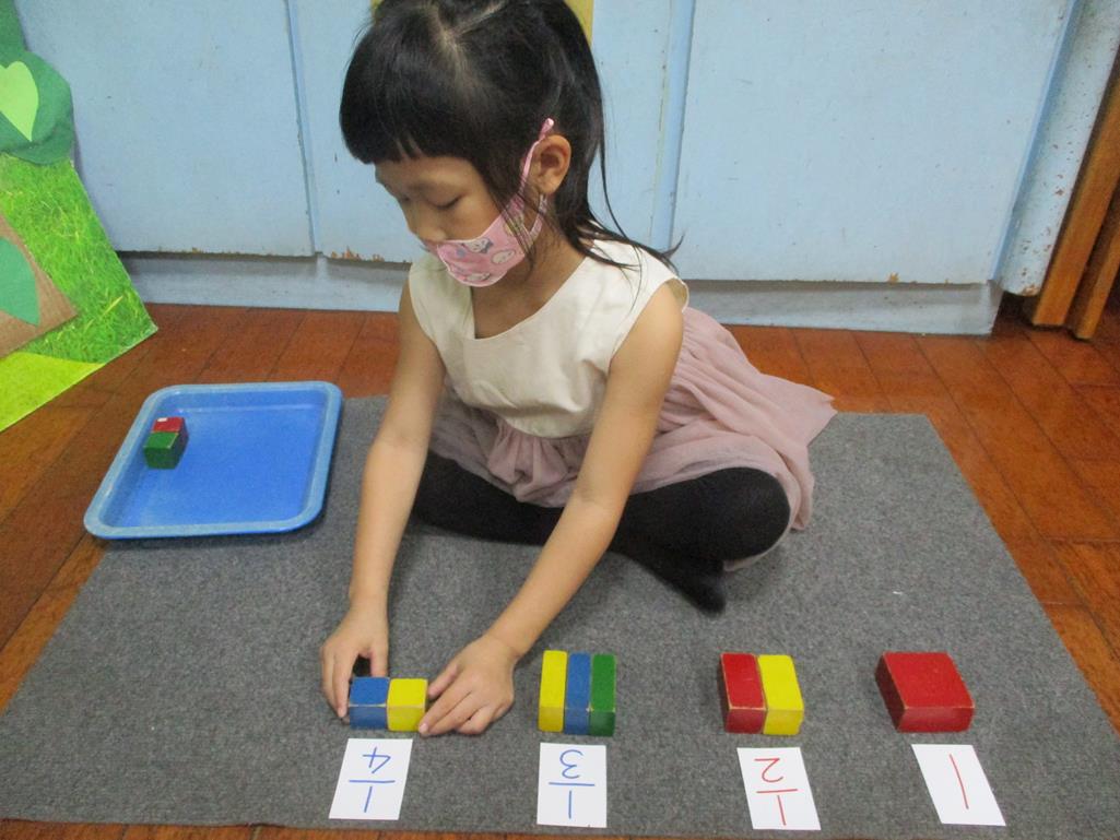 相簿名稱: 茉莉班-蒙特梭利教學(數學教育-幾何分數套(正方形))