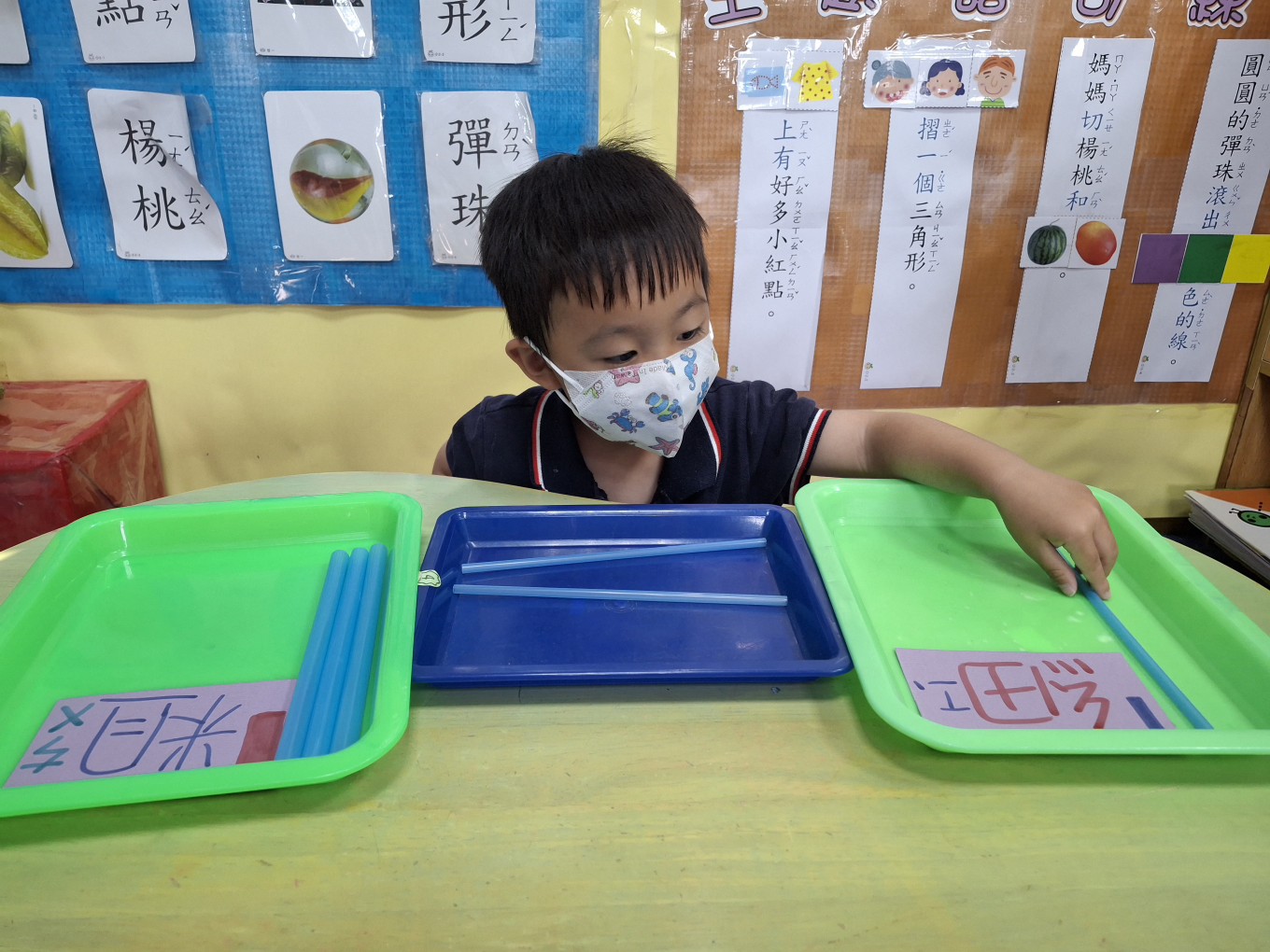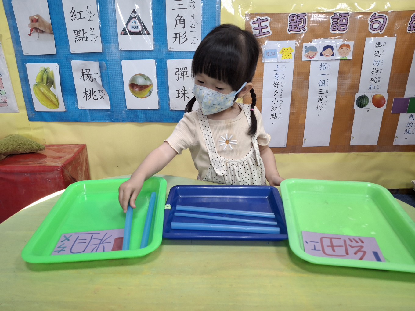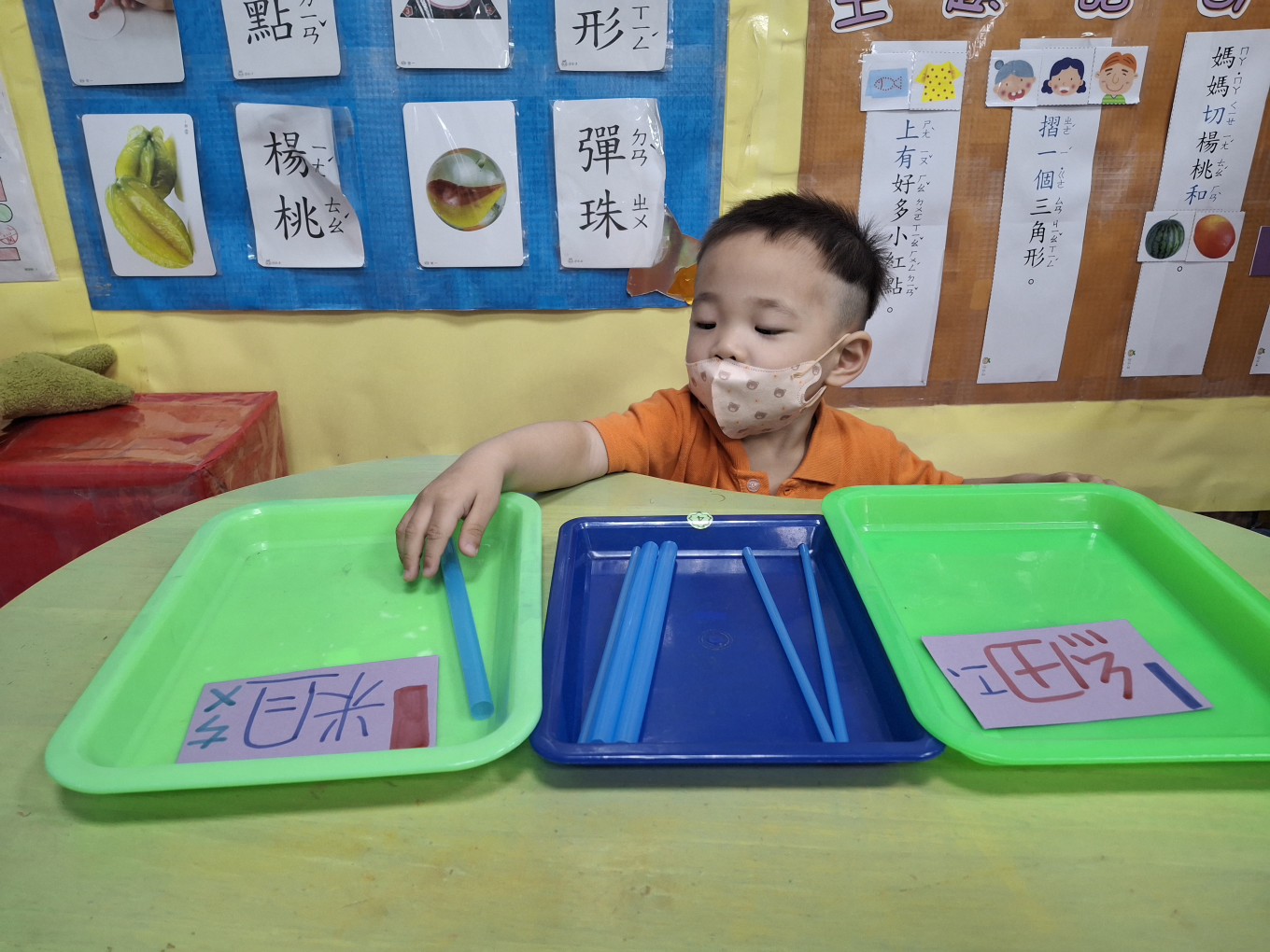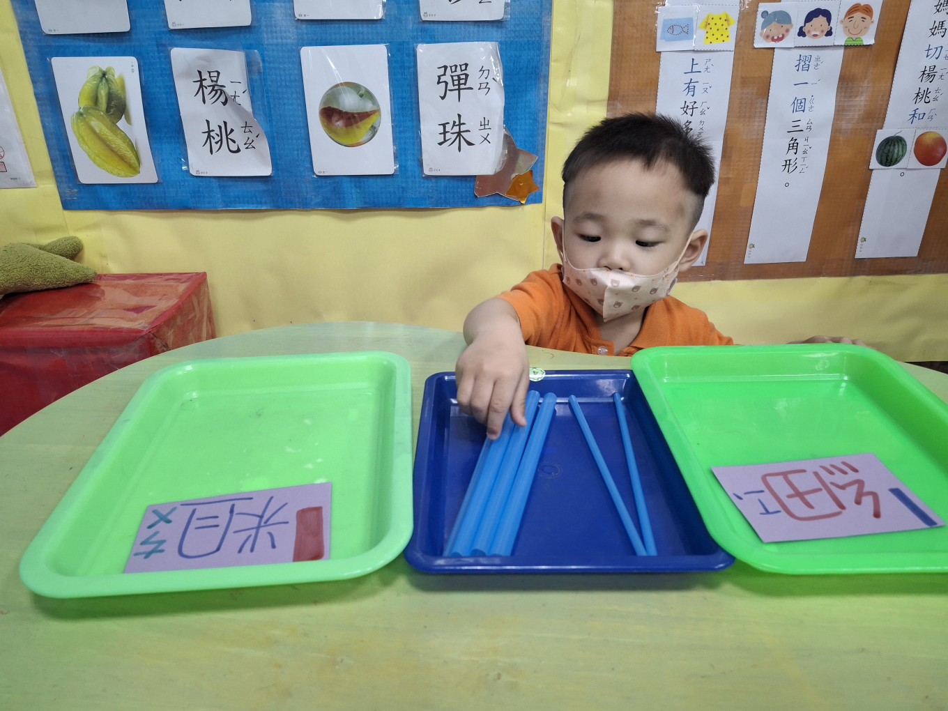 相簿名稱: 草莓班-蒙特梭利教學【數學教育-吸管粗、細分類】