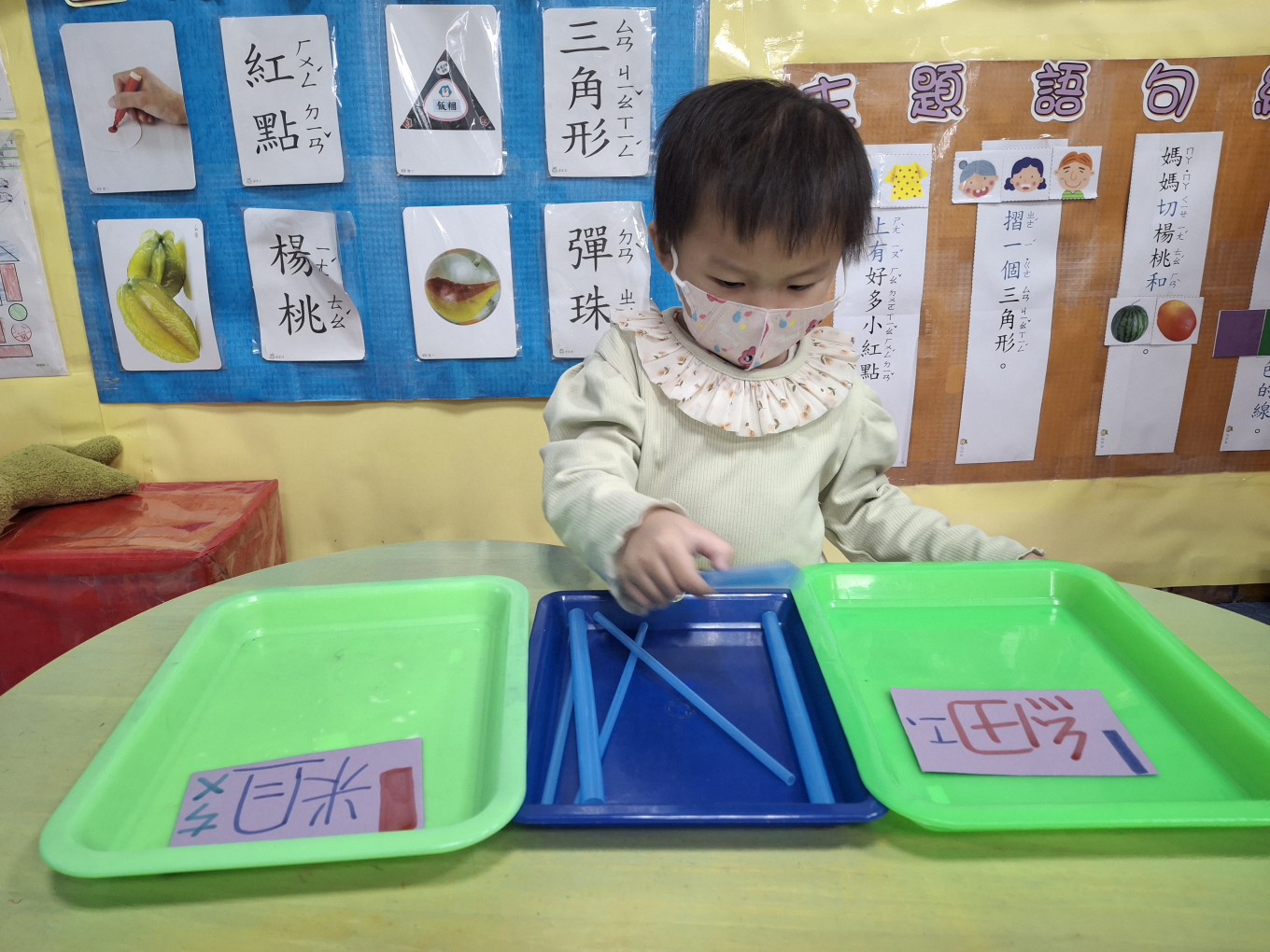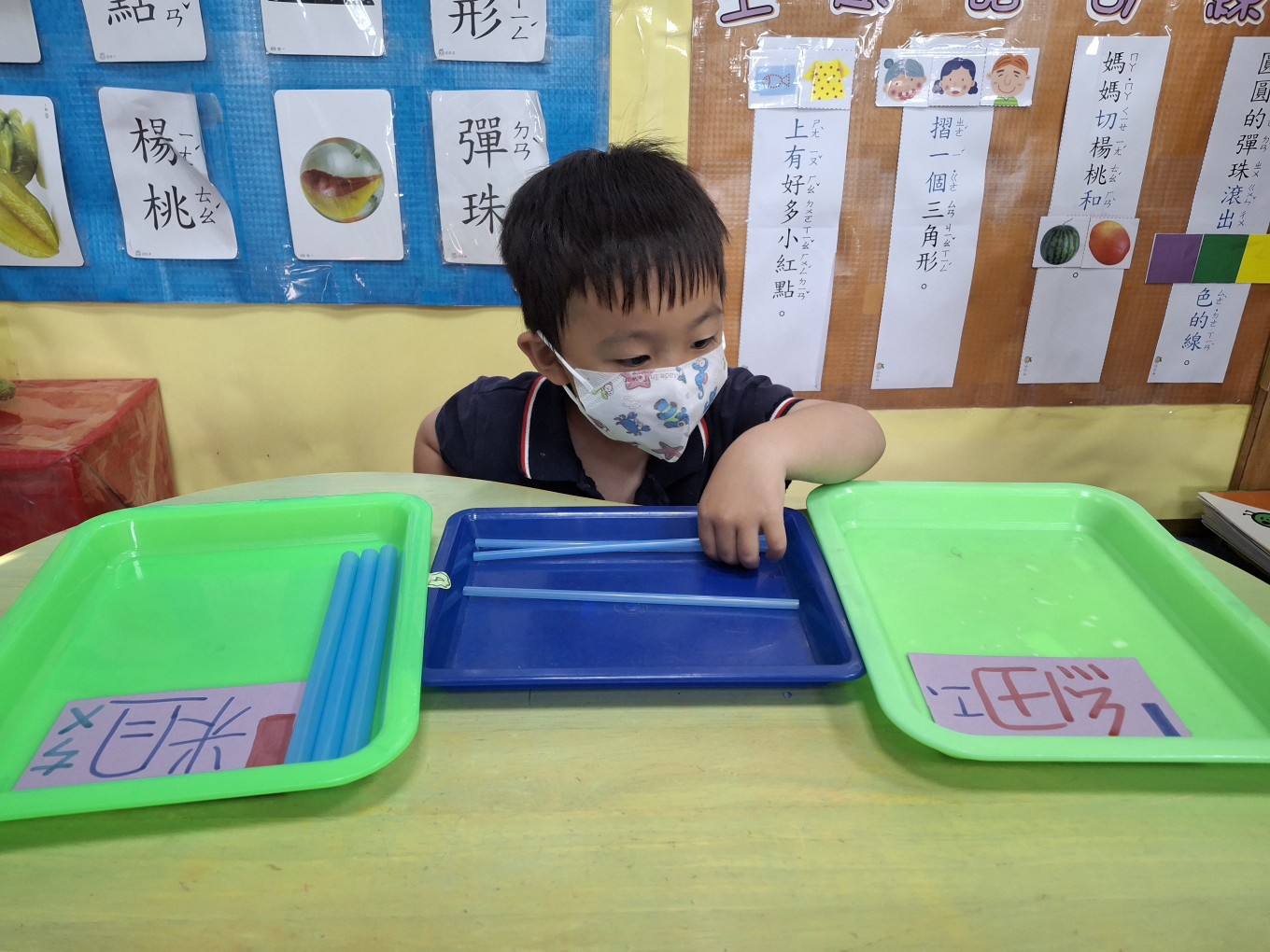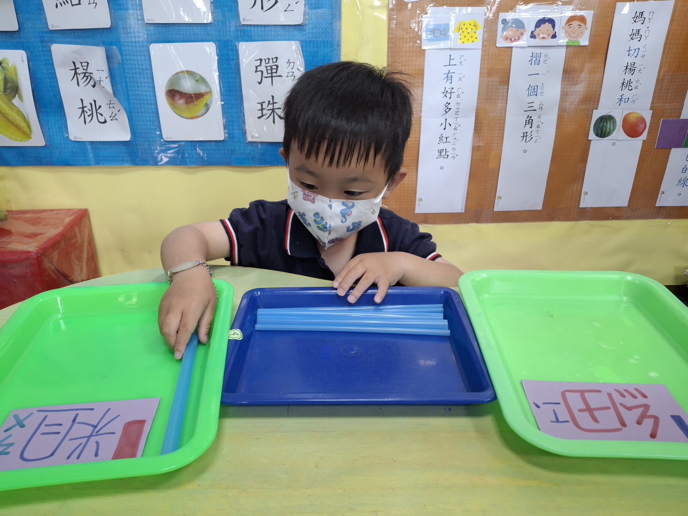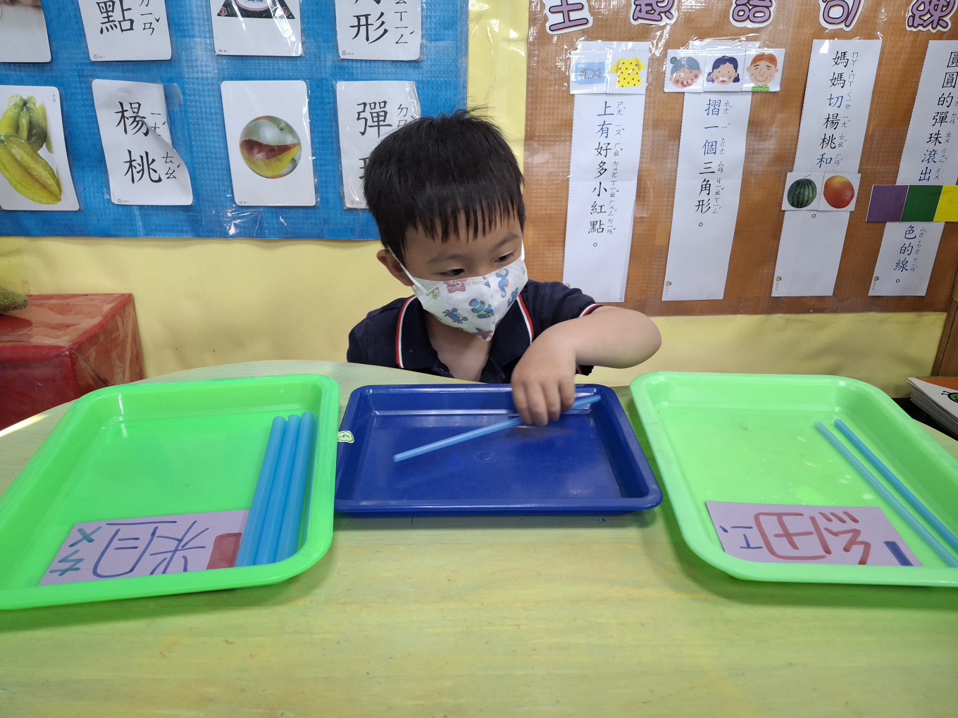 相簿名稱: 草莓班-蒙特梭利教學【數學教育-吸管粗、細分類】
