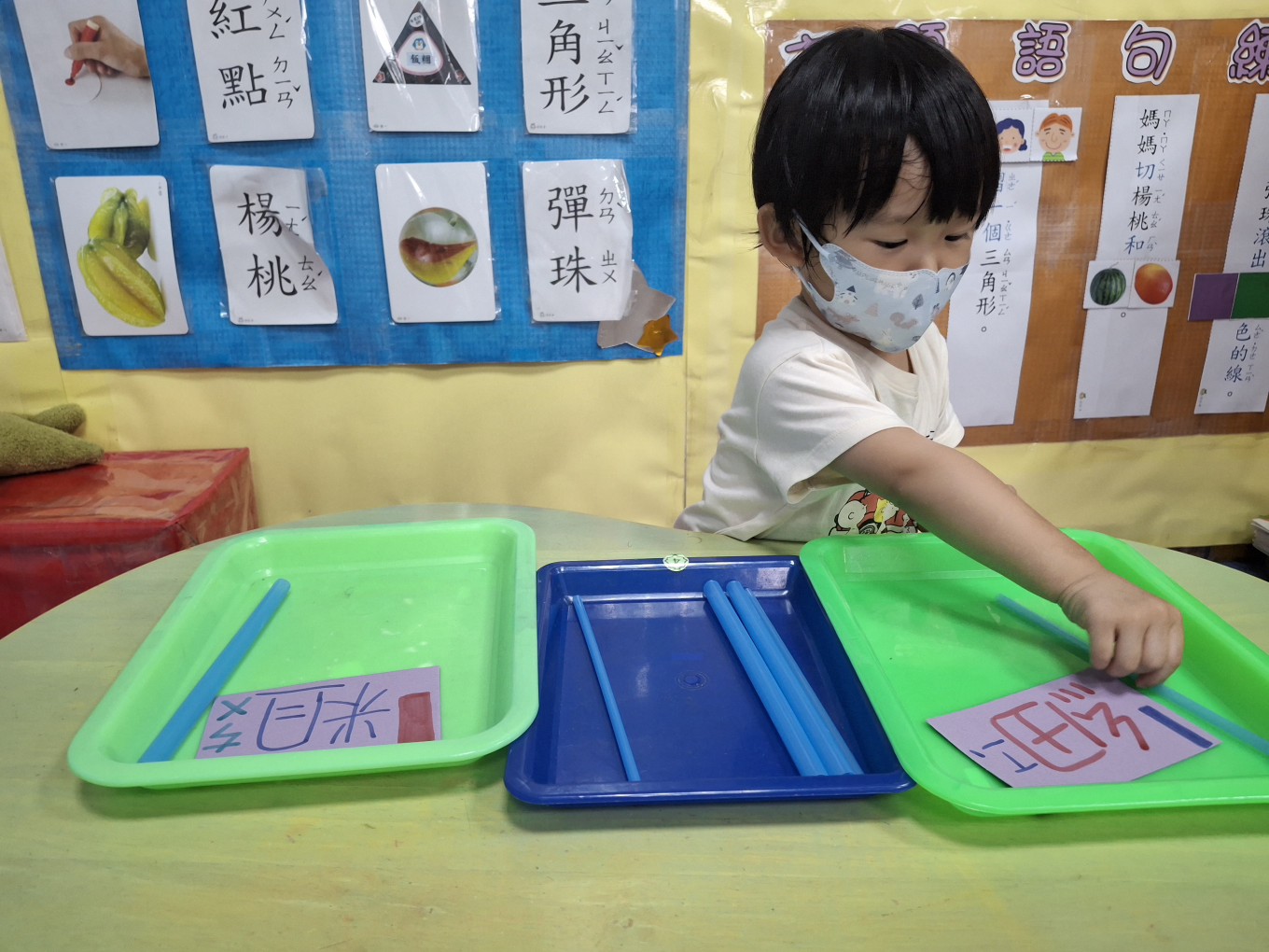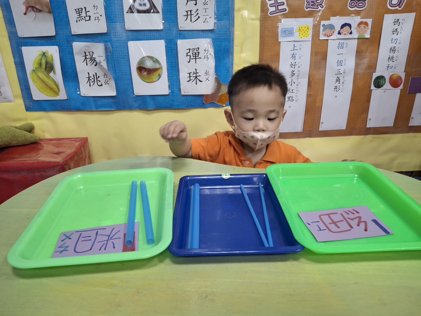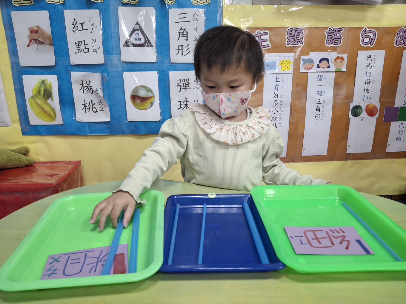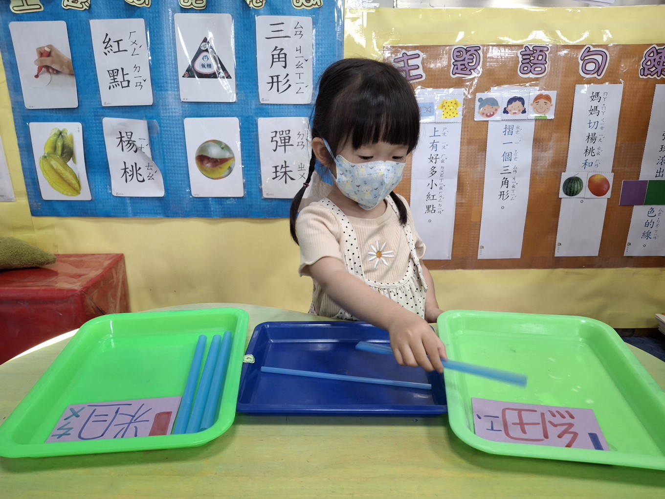 相簿名稱: 草莓班-蒙特梭利教學【數學教育-吸管粗、細分類】