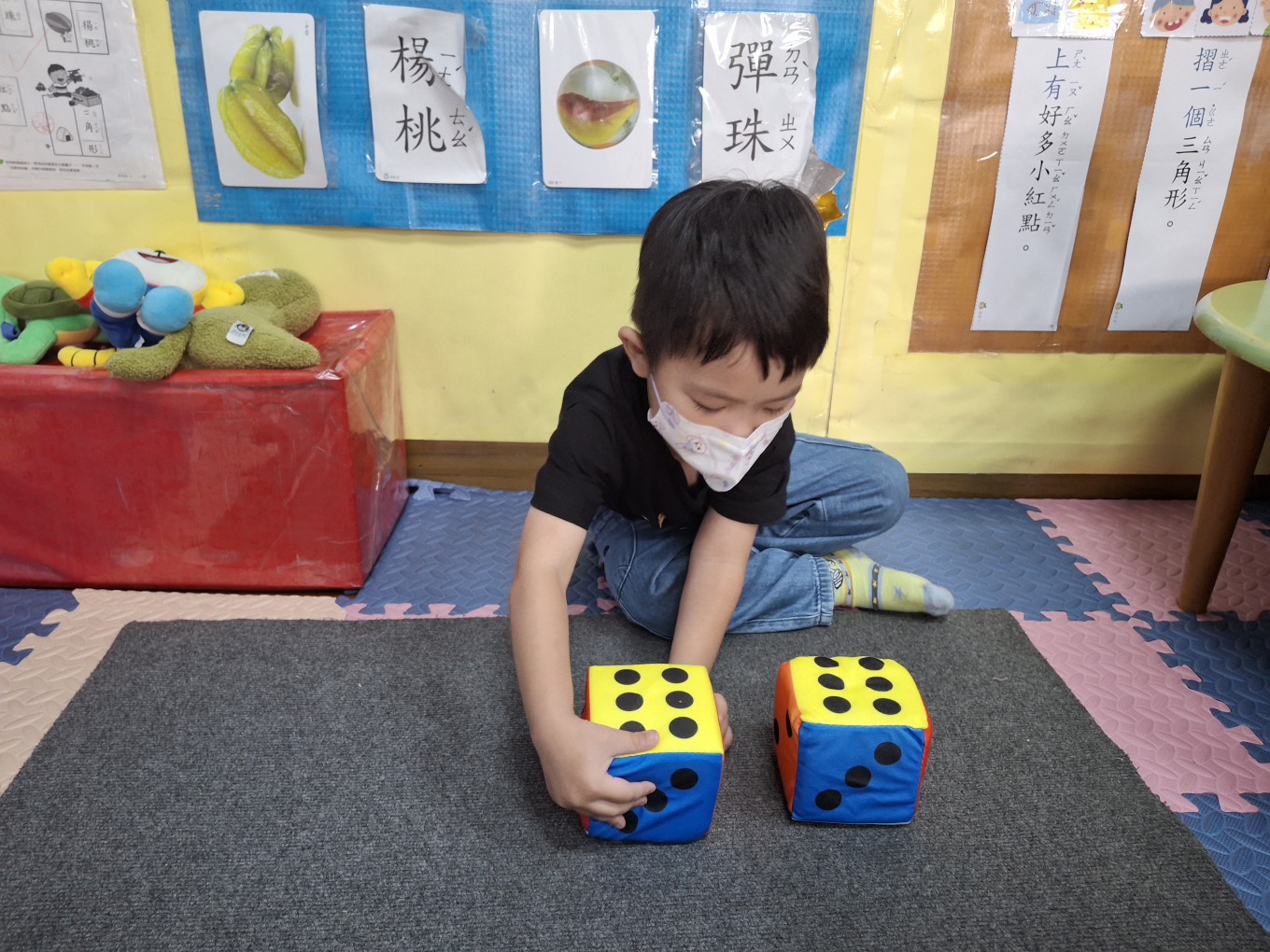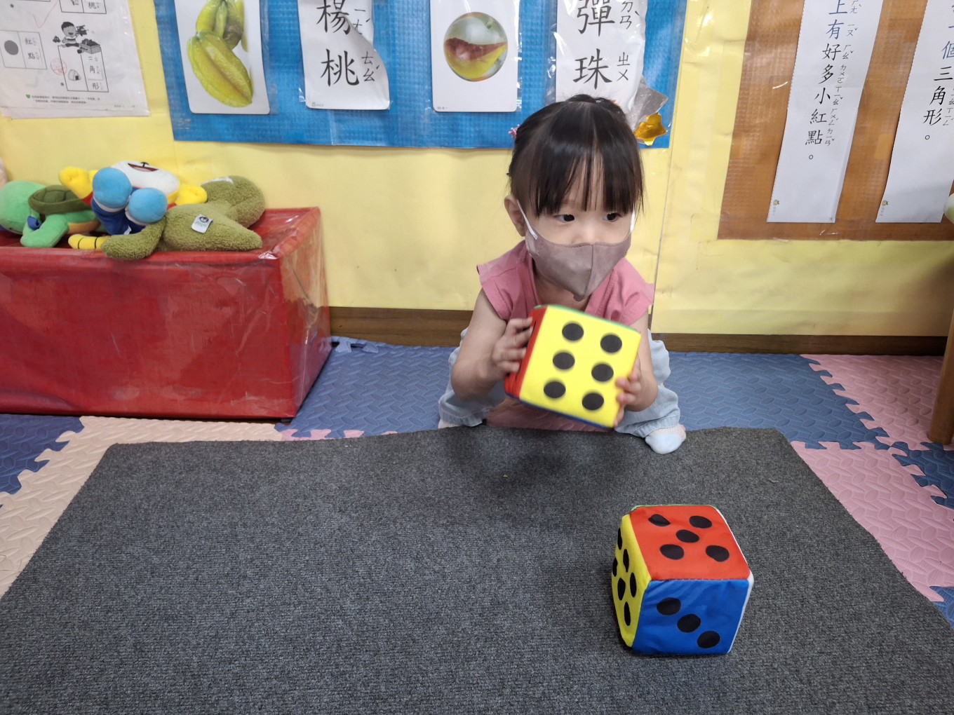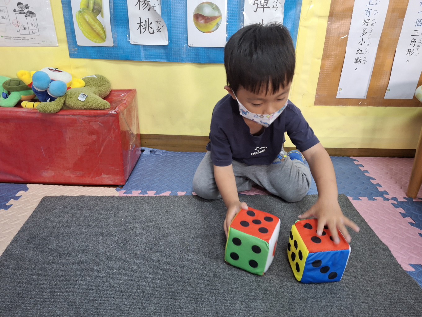 相簿名稱: 草莓班-蒙特梭利教學【數學教育-骰子球1組(點數面)配對】