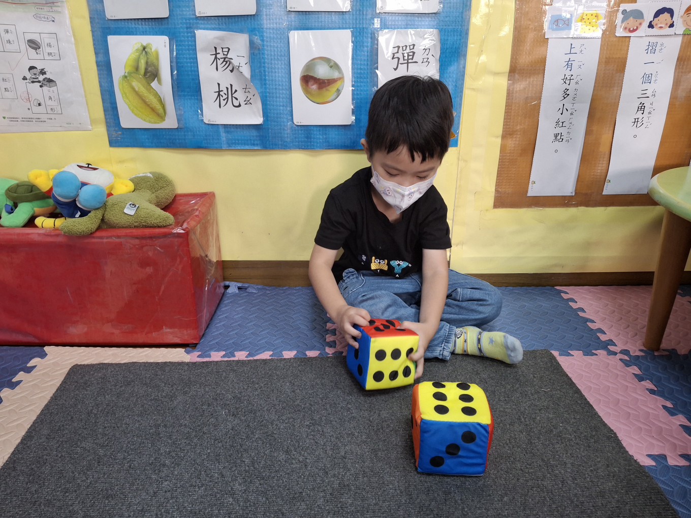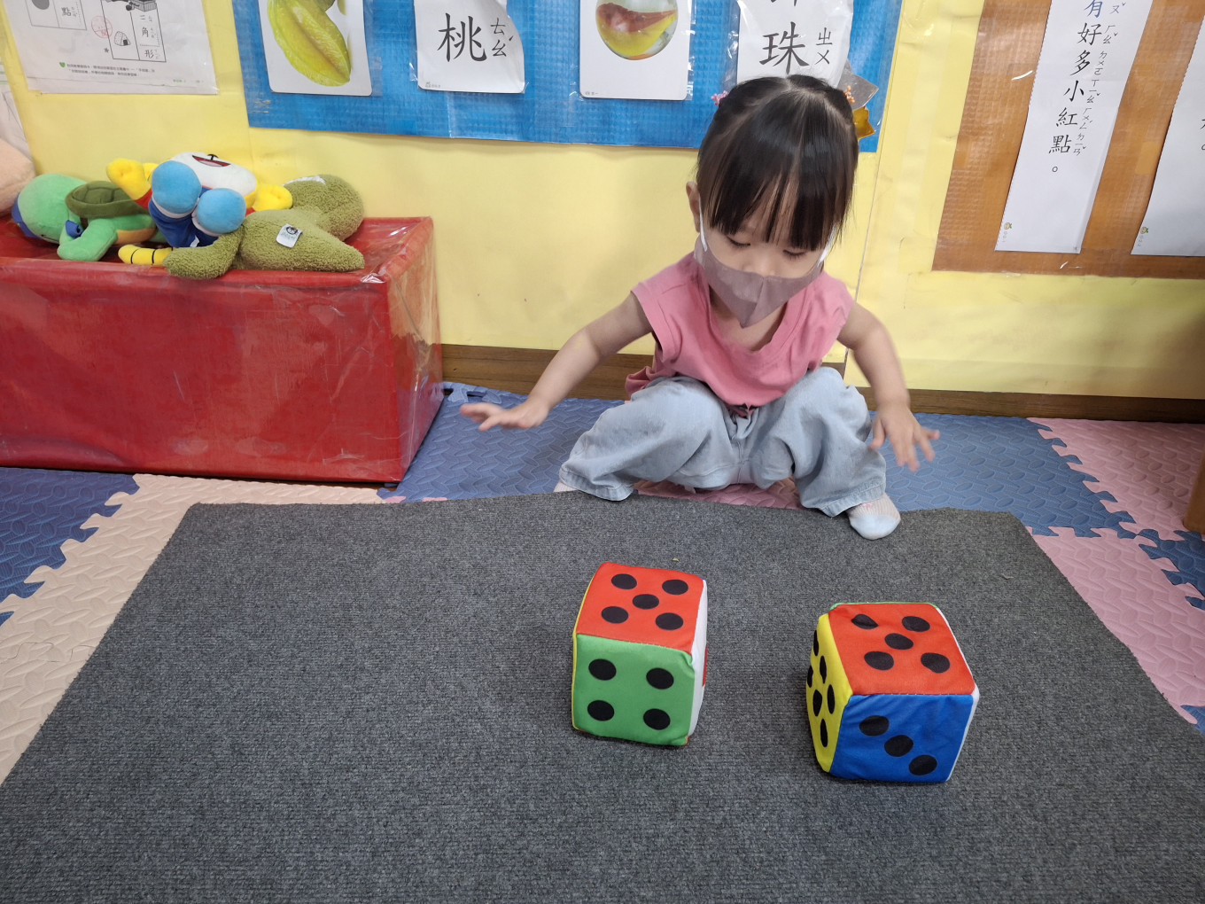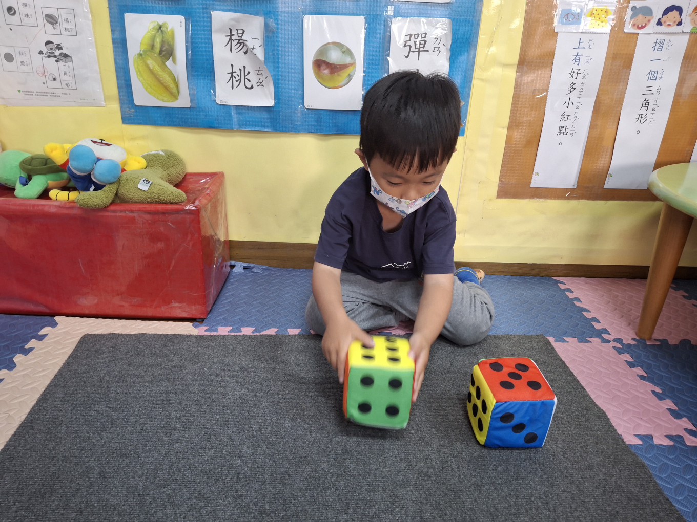 相簿名稱: 草莓班-蒙特梭利教學【數學教育-骰子球1組(點數面)配對】