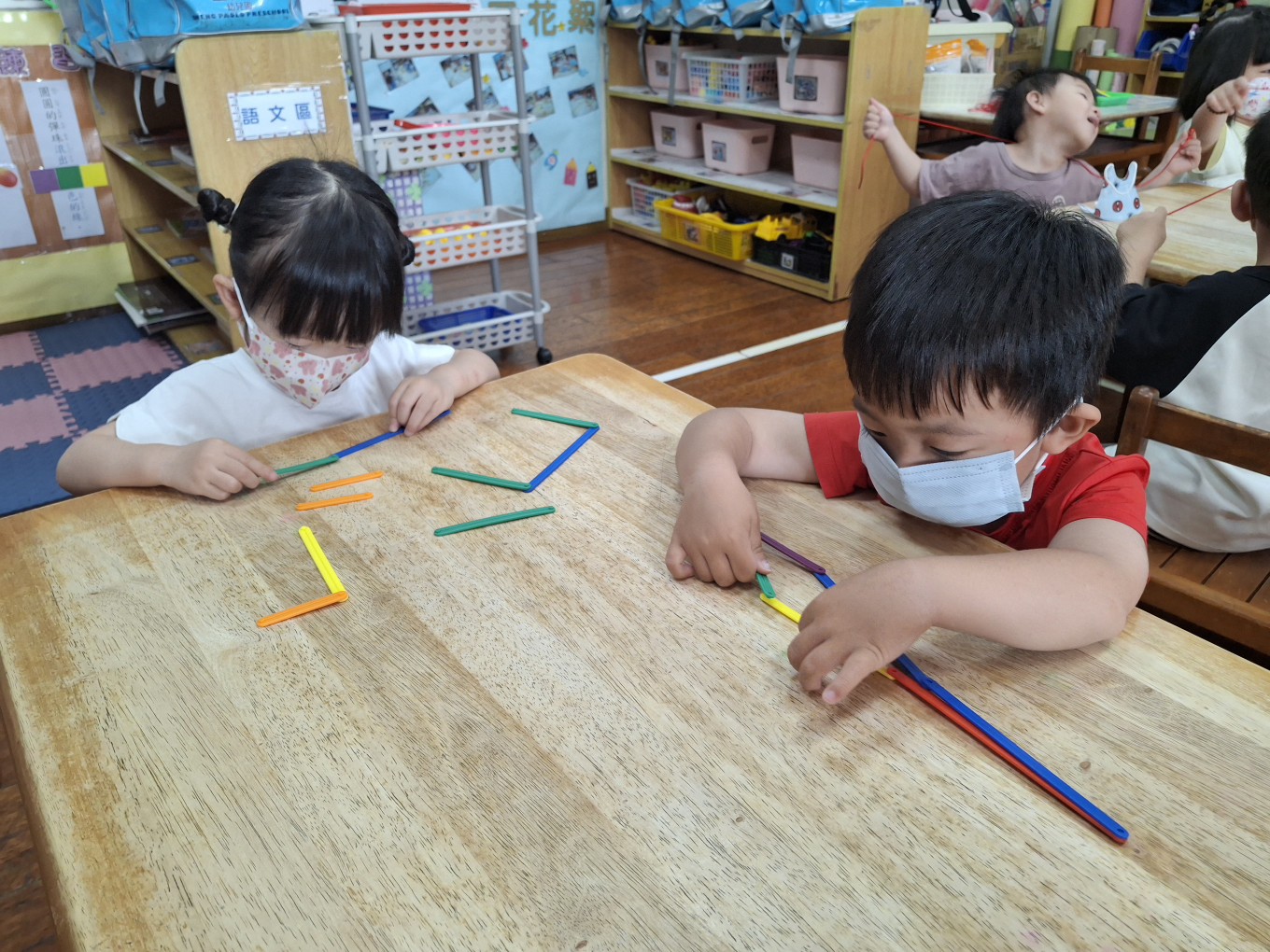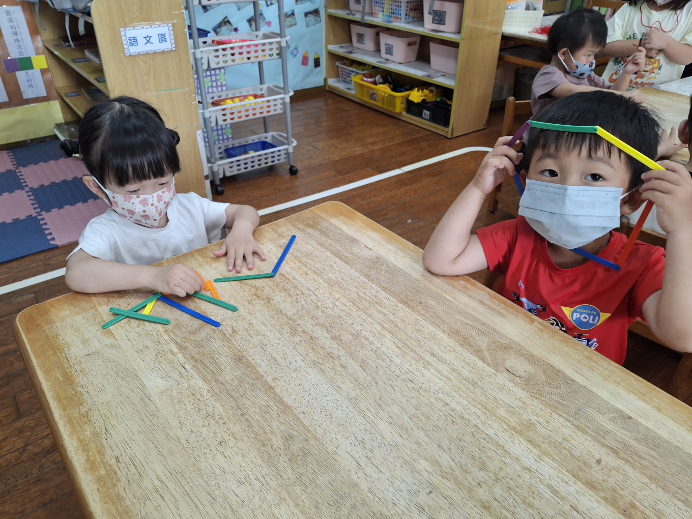 相簿名稱: 草莓班-主題延伸體驗【形狀變變變美感創作(線條卡扣條)】